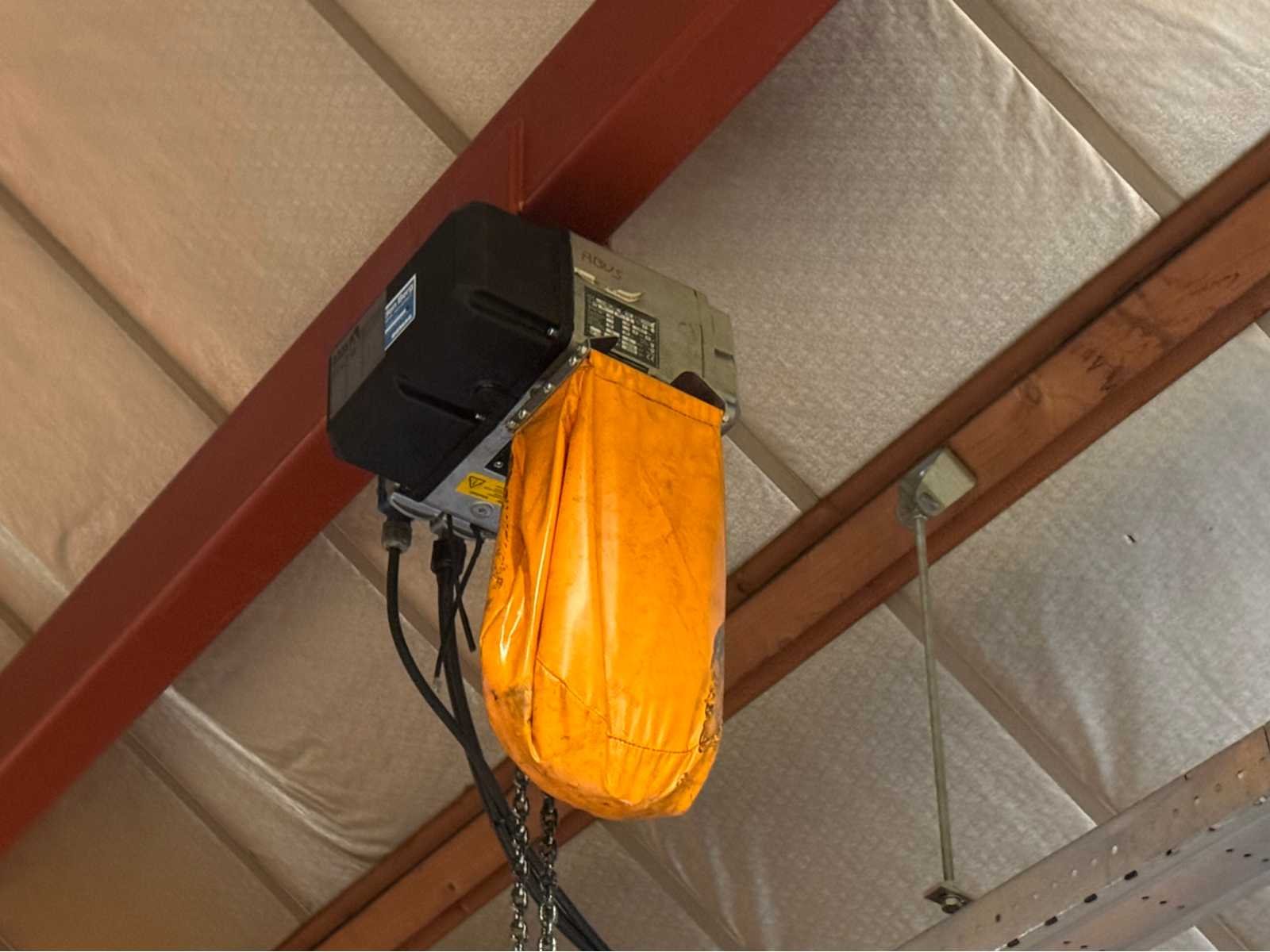 Elektrische kettingtakel; met afstandsbediening; wordt gedemonteerd en transport klaar gemaakt door verkoper; kijkdag en afhalen op afspraak; afhalen in overleg; maart; april 2026; kijkdag en afhalen is in Groot-Ammers Hijshoogte: 14000m