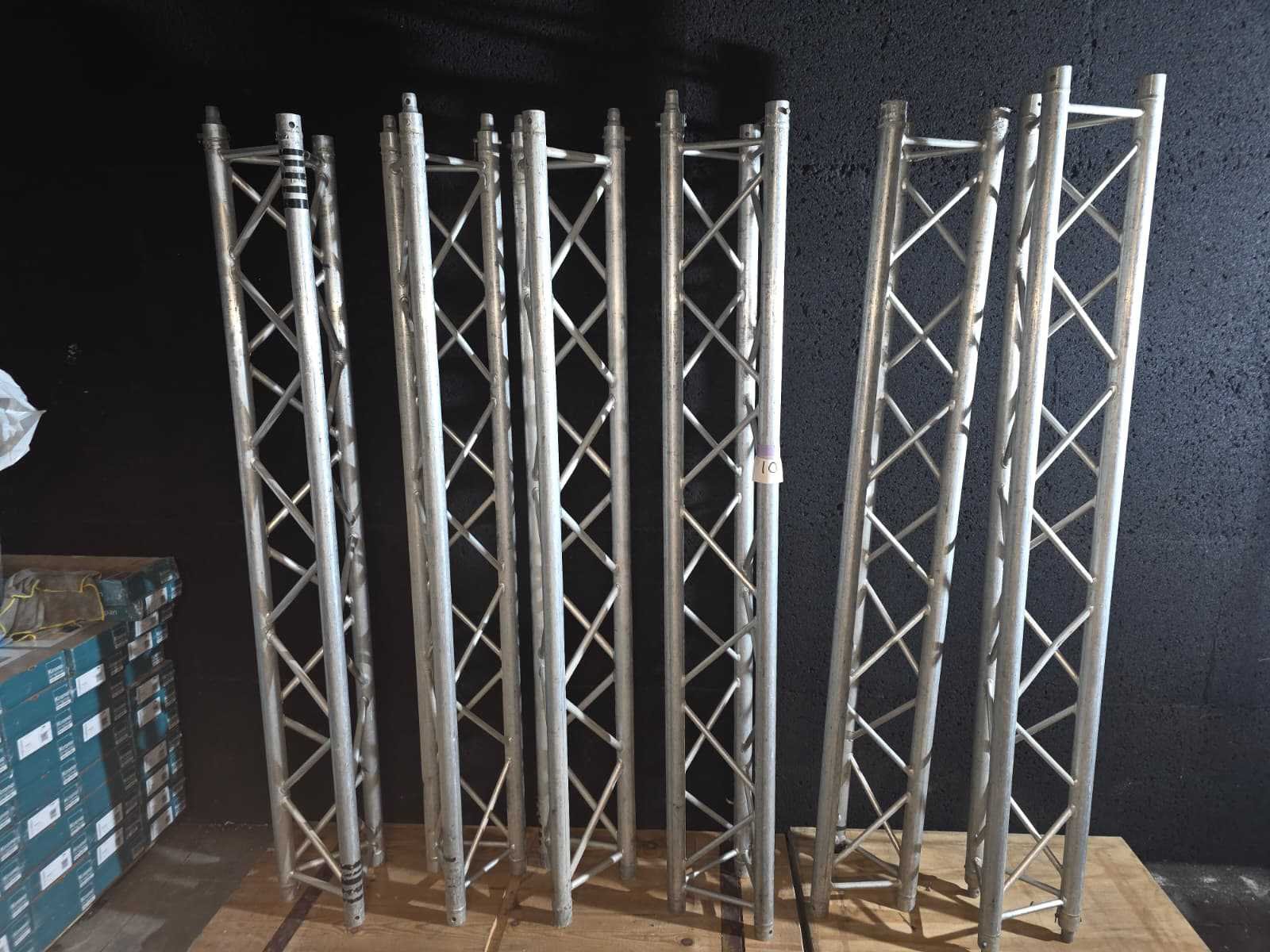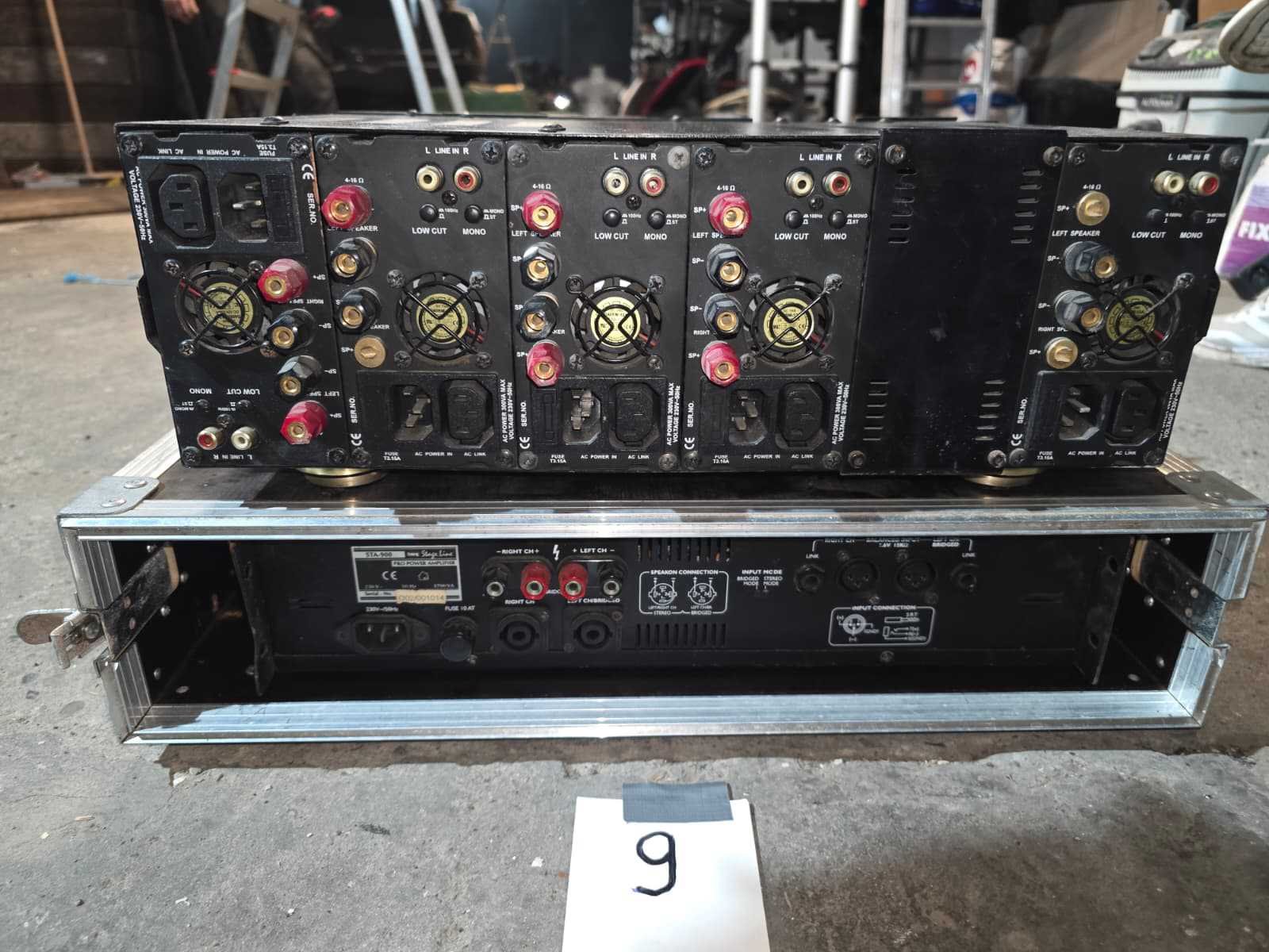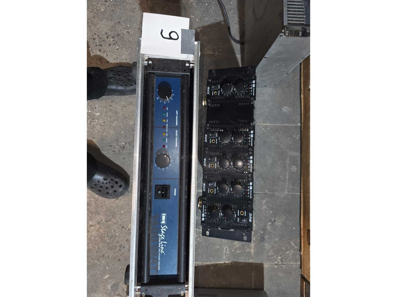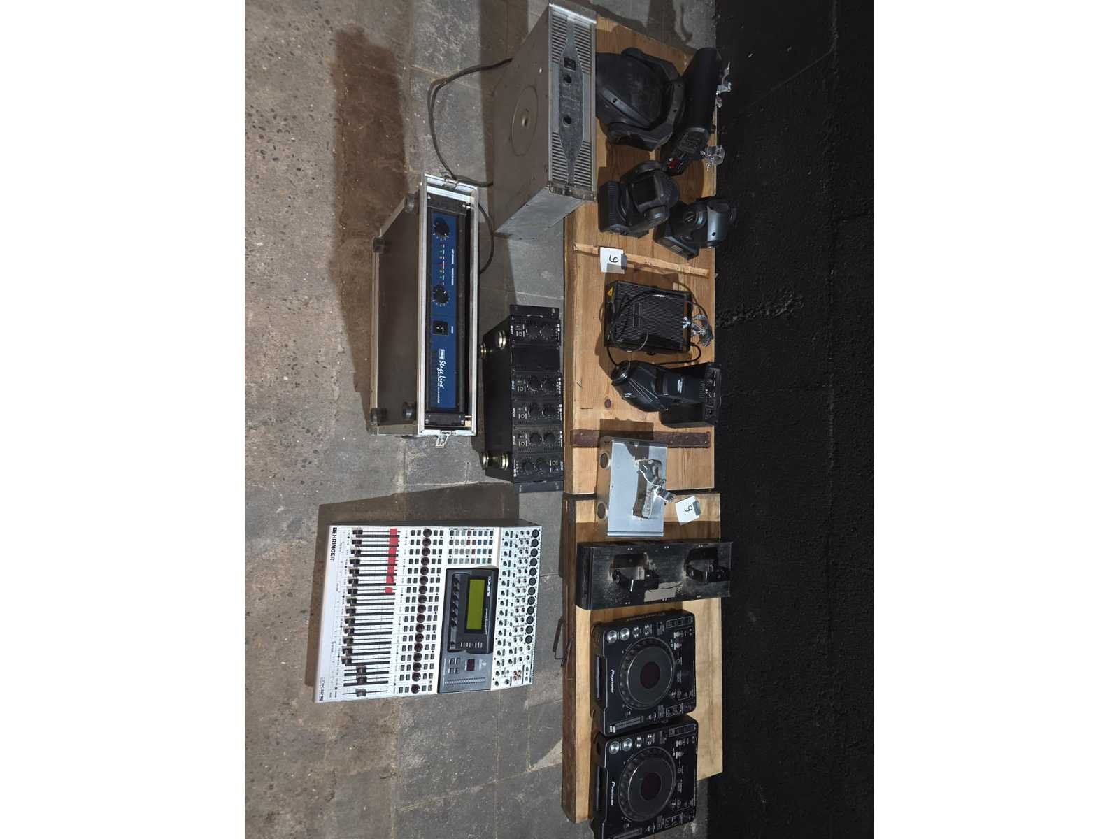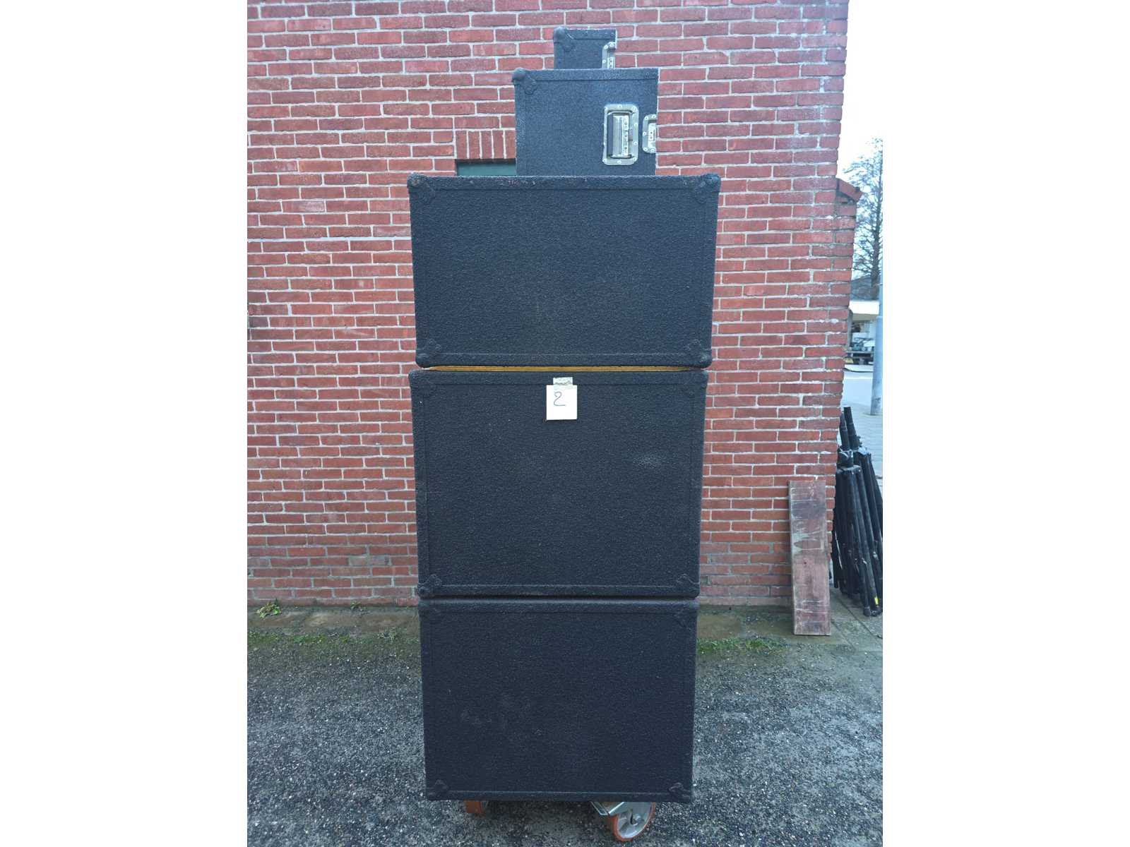 Volledige sound system; volledig gereviseerd speelt zeer zuiver; nummer 1 tot en met 5; Stage Accompany complete 4-weg PA set – 8 subs, 8 mids, 4 tops, 4 fills + 2 racks versterkers; klassiek Nederlands topmerk in professionele audio. Dit is een compleet 4-weg PA systeem, perfect voor clubs, festivals, soundsystems of verzamelaars; 8x SA subkasten (laag); 8x SA middenkasten (mid); 4x SA topkasten (high); 4x kleine boksen/frontfills; 2x amp racks met elk 3 eindversterkers (SA 500A, 900B, 900C etc. → totaal 6 versterkers); Inclusief flightcases & bekabeling; nummer 7, DAP AUDIO 4X 350W gecontroleerd en functioneerd met 4X statief voor de boksen; nummer 8, zware degelijke boksen met 2X statief; nummer 9, verschillend audio en licht materiaal. Draaitafels, lasers, moving heads, versterkers, een BEHRINGER DDX3216 en 4 dozen vol met kabels voor audio en licht apparatuur; nummer 10, set aluminium truss staanders/towers (zie foto); Geschikt voor lichtbrug, DJ setup, podium, evenementen, beurs of decorbouw; Materiaal: aluminium; Kleur: zilver; Aantal: 6 stuks met montage onderdelen; Staat: Goed werkend, netjes onderhouden. Drivers, hoorns en versterkers functioneren naar behoren; kijkdag op afspraak; afhalen op afspraak;