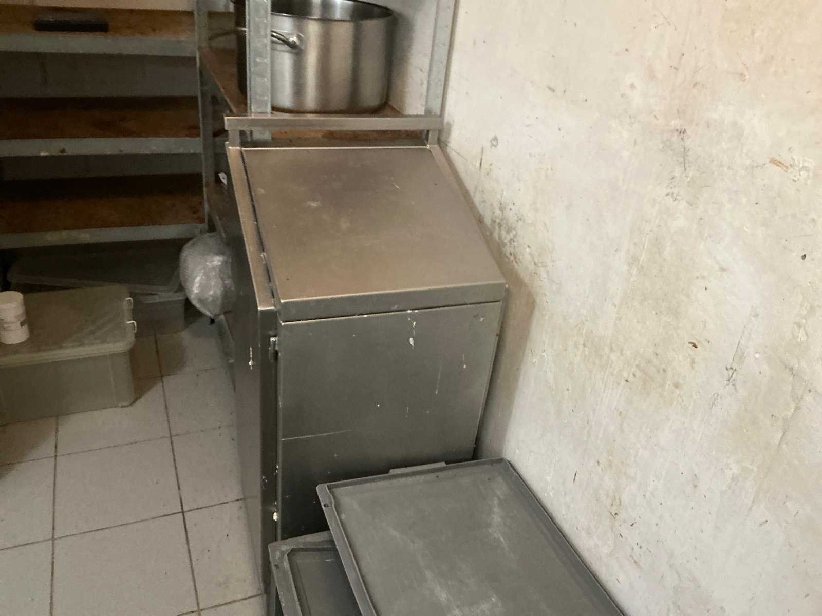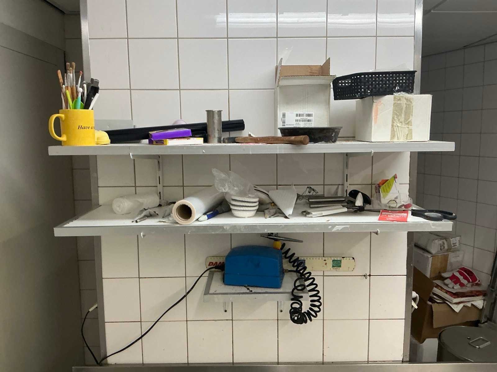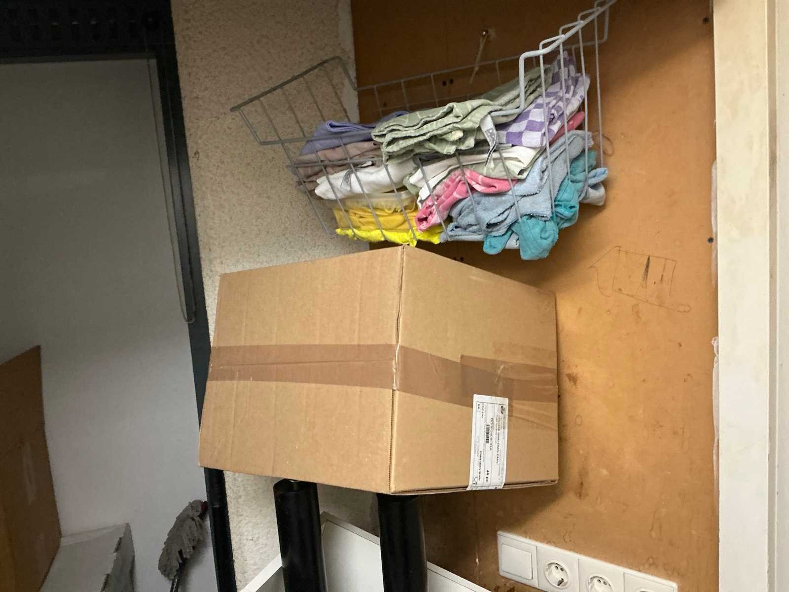 Inhoud magazijn van 3 ruimtes, 2 printers, verpakkingsmateriaal, 5 stellingkasten, vriezer, rvs werktafel, deze ruimtes dienen leeg opgeleverd te worden.