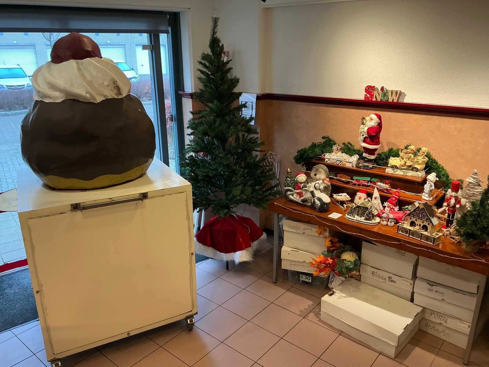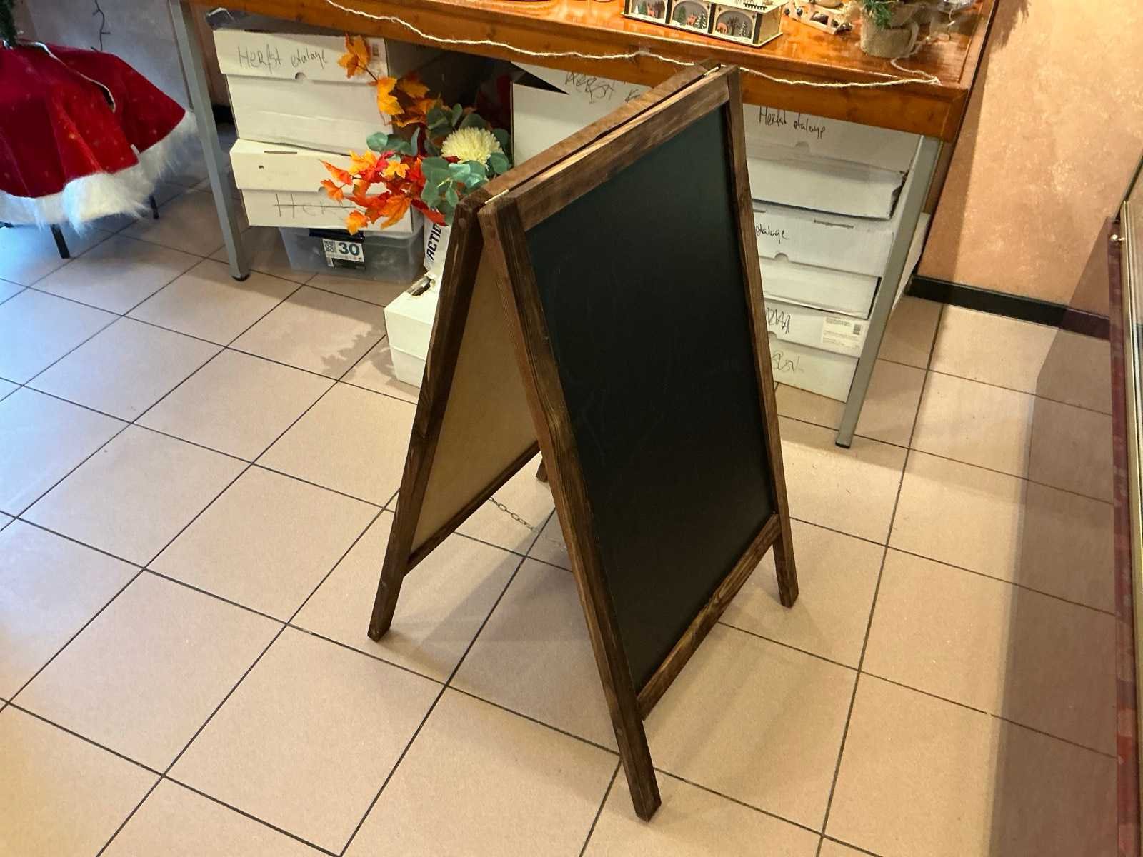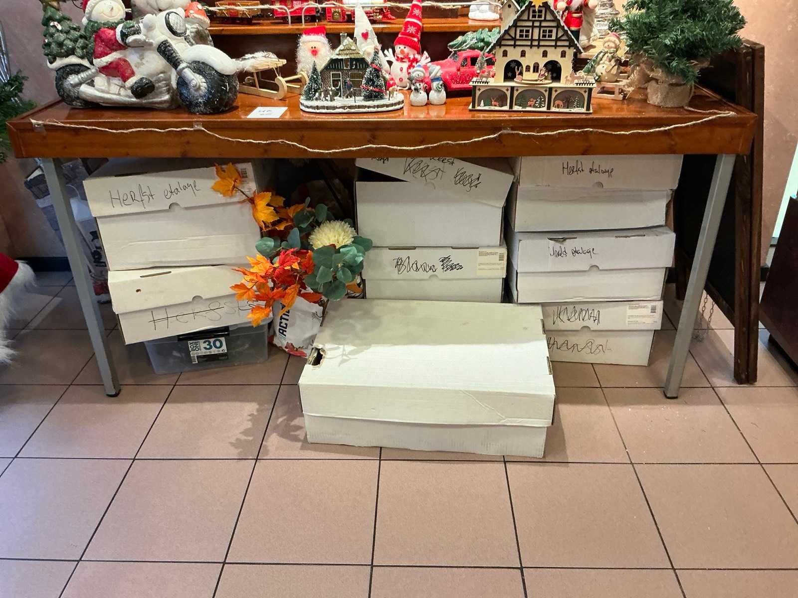 Verrijdbare reclamezuil, kerstboom, uitklapbaar stoepbord, dozen met seizoens gebonden deco materiaal, inclusief tafel LxBxH 80x162x82cm