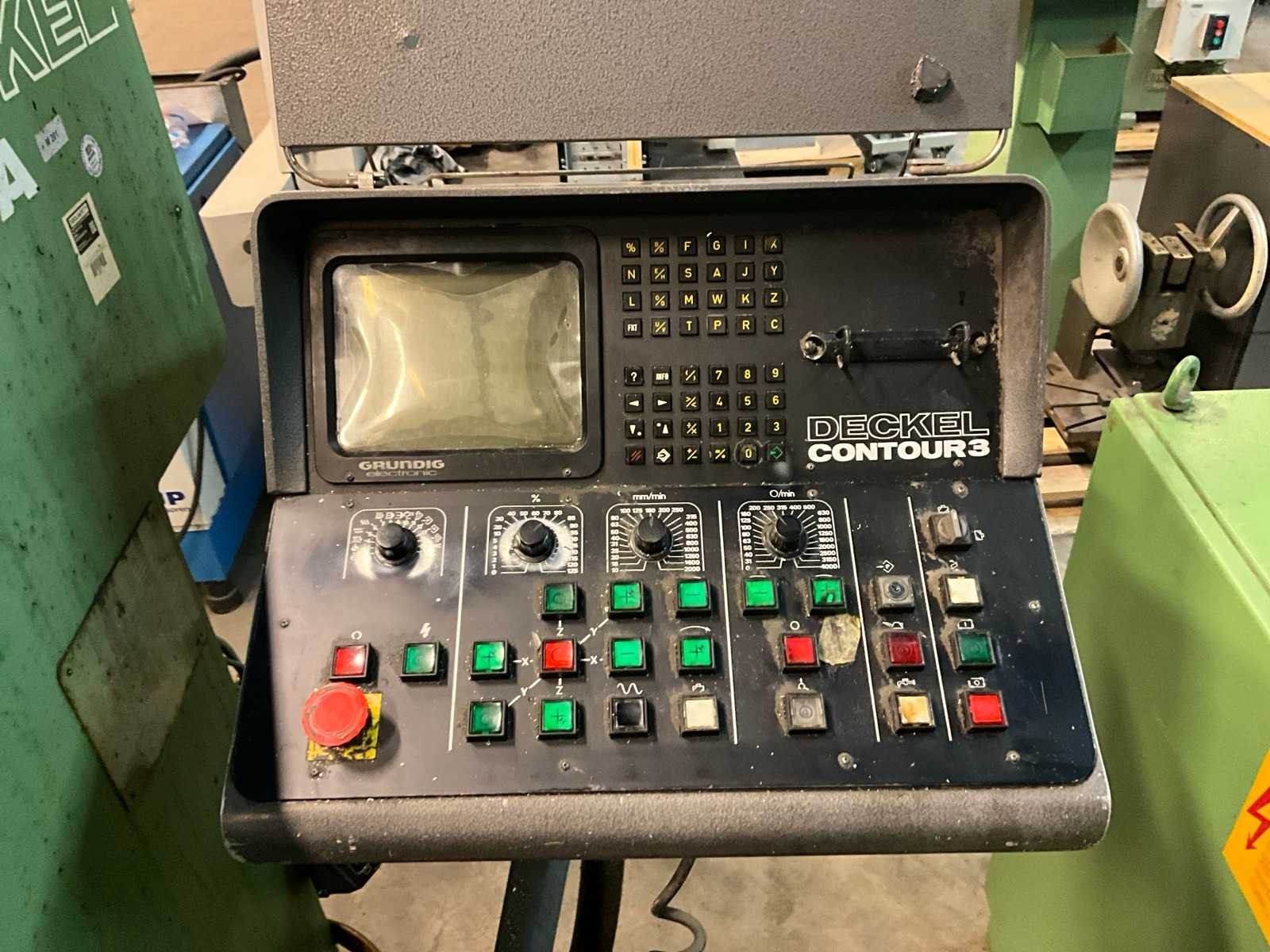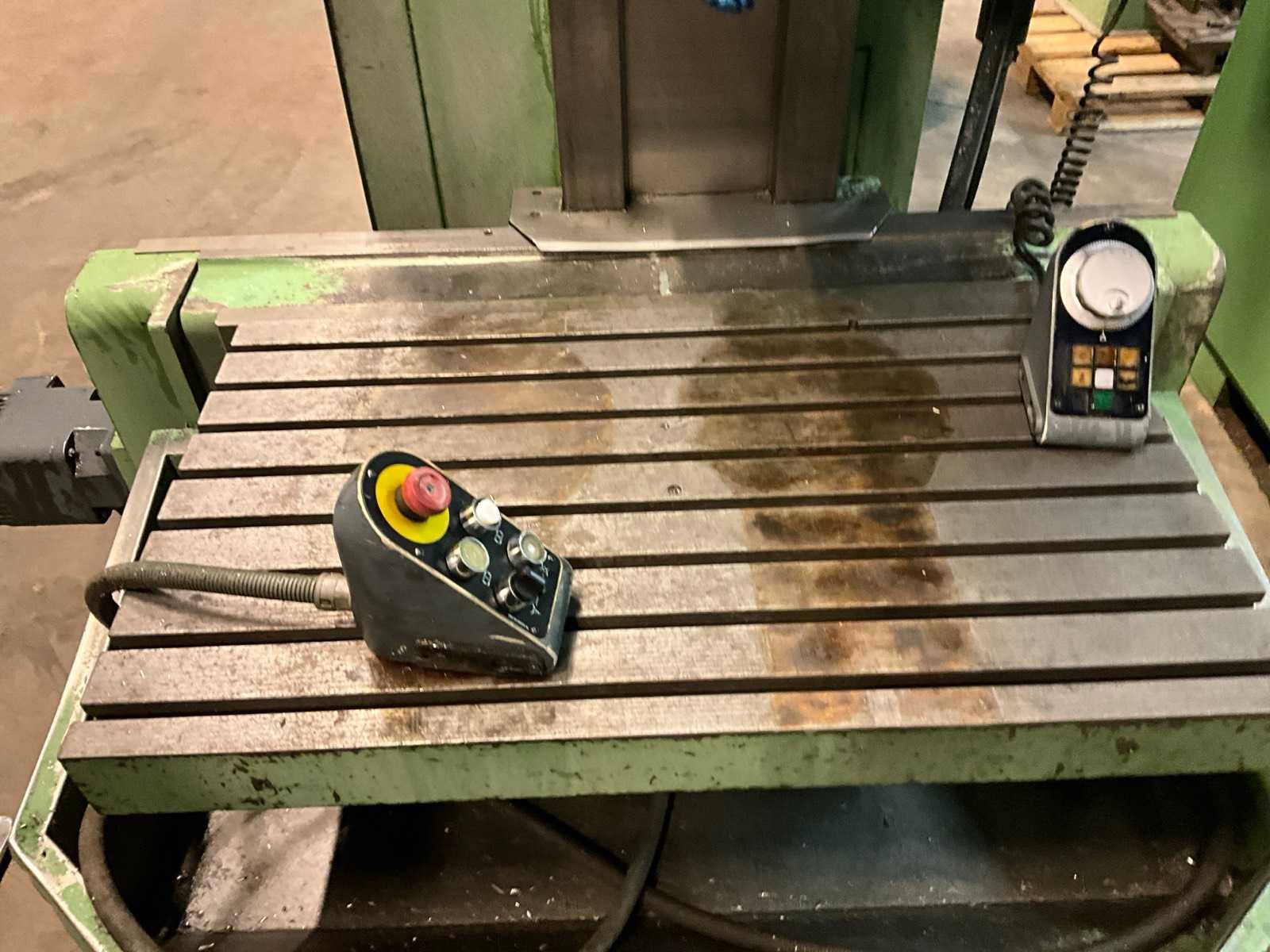 Opspantafel 530x900mm, 3-assig, waterkoeling, snelheid instelbaar 10-2000mm/min, friedrich deckel stroom omvormer met 6x multipin aansluiting Merk: Deckel Type: FP4A Serienummer: 2821-0481 Verplaatsing x-as: 485mm Verplaatsing y-as: 385mm Verplaatsing z-as: 380mm Snelheid van n =: 0rpm Snelheid tot n =: 4000rpm T-gleuf opspantafelafmeting L: 900mm T-gleuf opspantafelafmeting B: 15mm Besturing, merk, type: Deckel contour3 Aansluiting: 380V Afmeting l: 2300mm Afmeting b: 2750mm Afmeting h: 2100mm