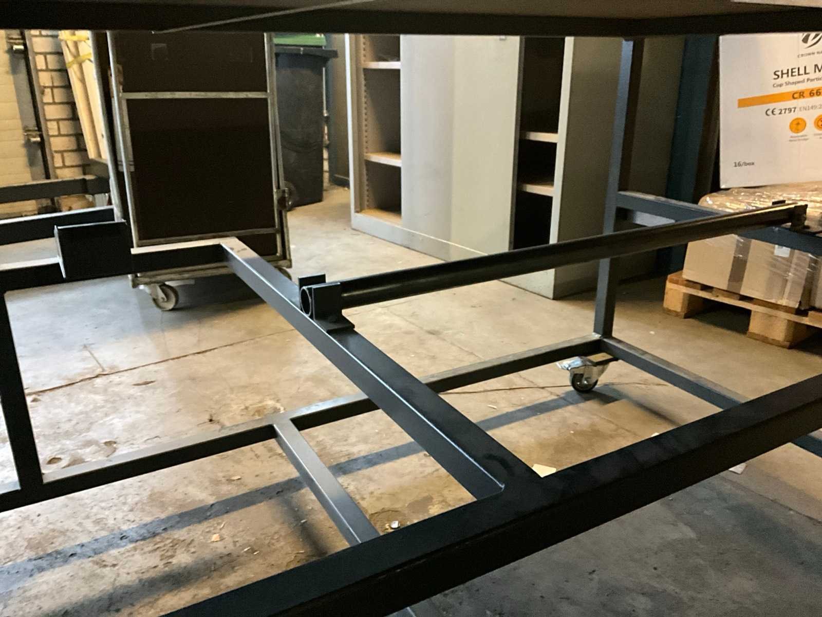 Verrijdbaar, metalen frame, houten blad Breedte: 3000mm Lengte: 1000mm Hoogte: 1150mm