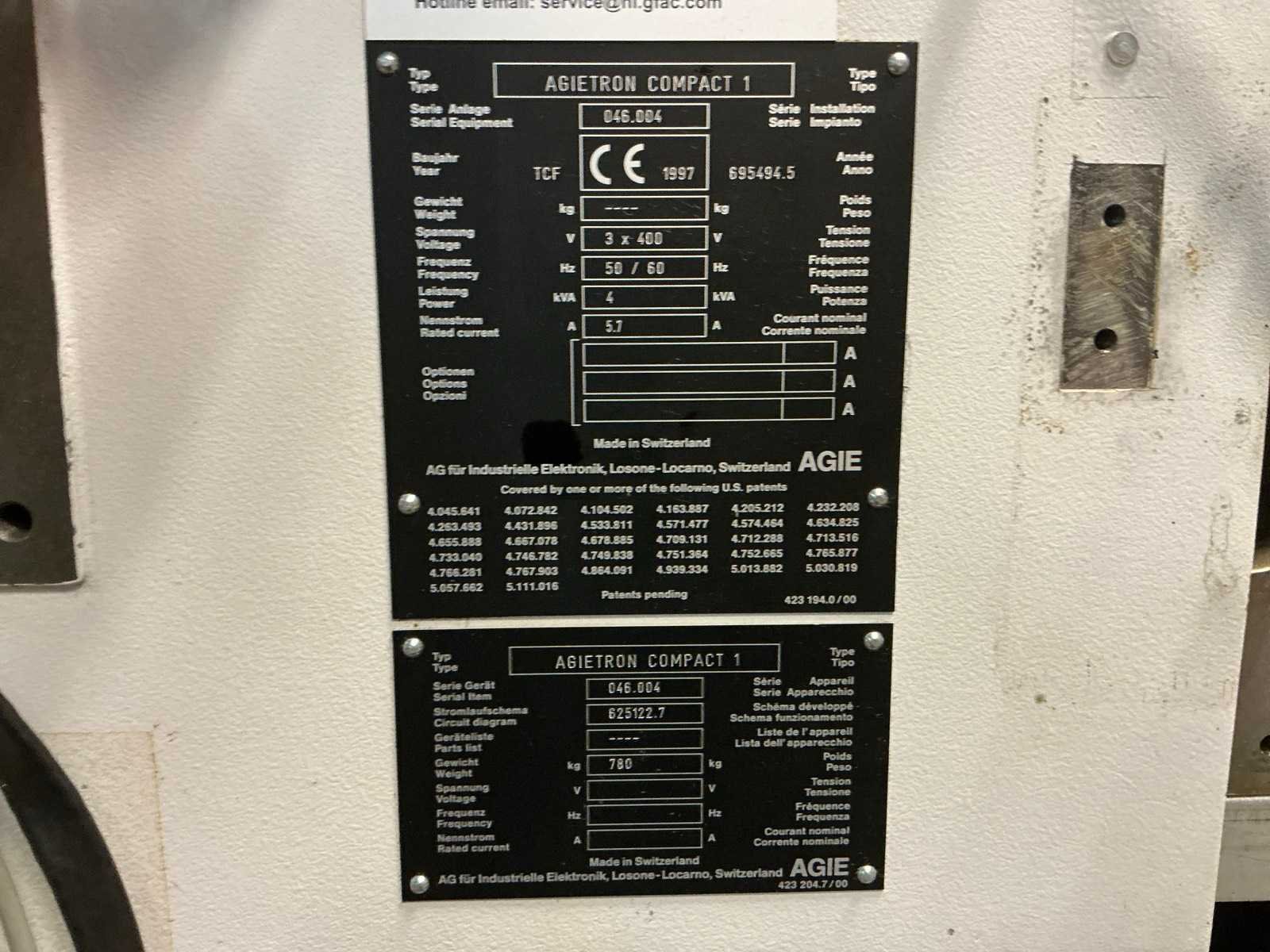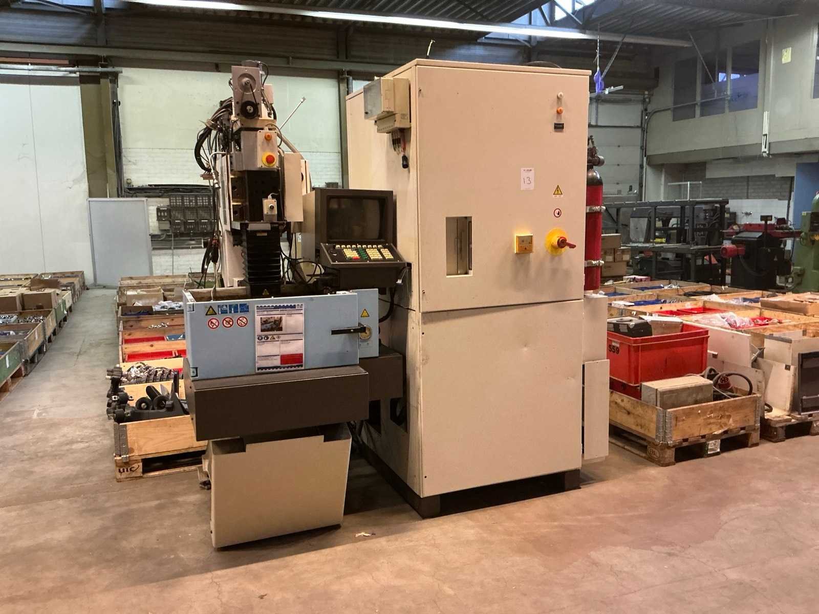 Urenstand 11036; vermogen 4 kVA; T-gleuf tafel 490x300; magnetische tafel 350x150 mm; met elektrische besturingskast 1150x1050x2200 mm; alsook 2x pallet met diverse toebehoren Merk: Agietron Type: Compact 1 Bouwjaar: 1997 Serienummer: 046.004 Vonk type: true Verplaatsing x-as: 250mm Verplaatsing y-as: 160mm Verplaatsing z-as: 250mm Aansluiting: 400V Machinegewicht: 780kg Afmeting l: 1050mm Afmeting b: 1100mm Afmeting h: 2300mm
