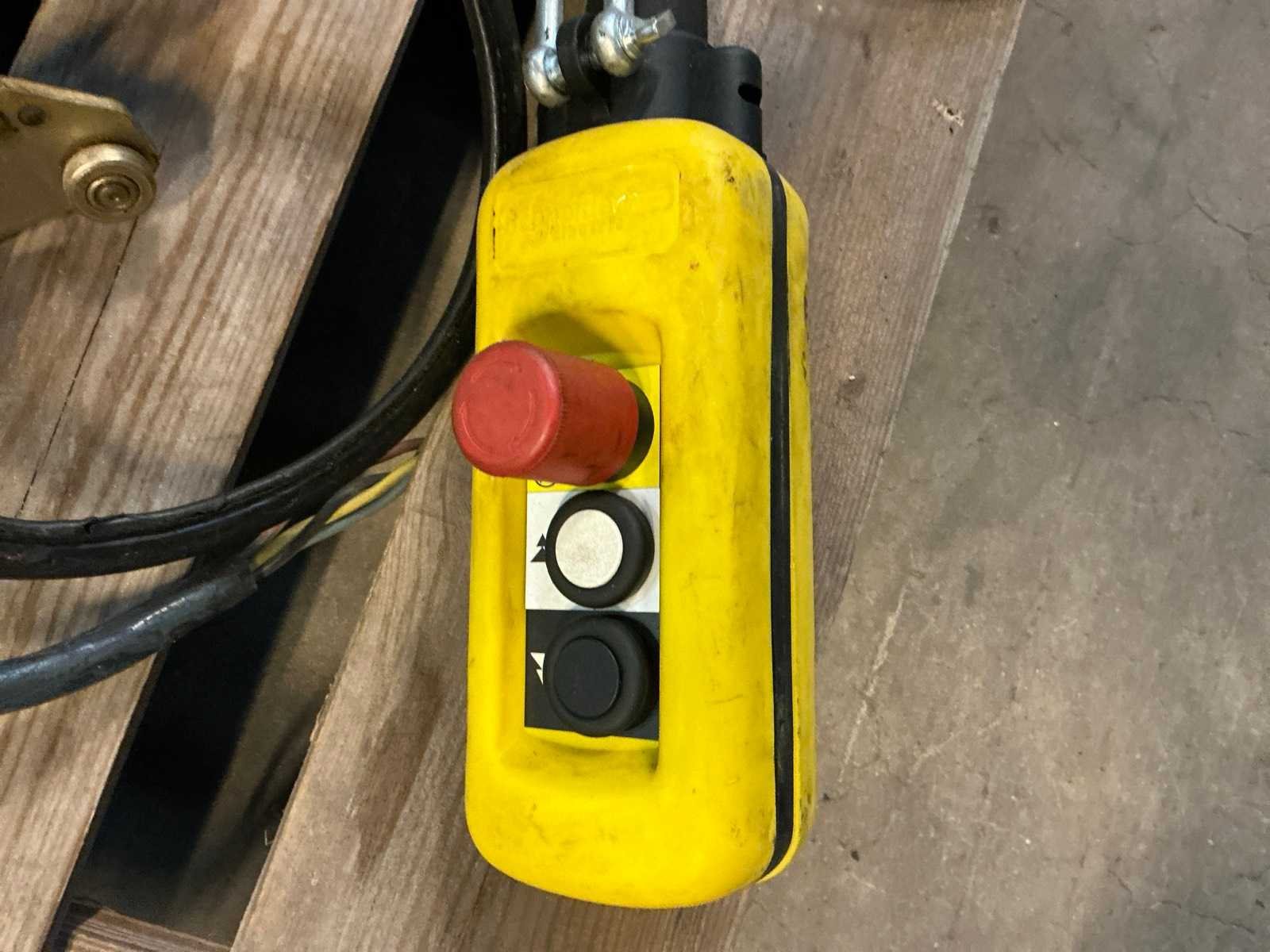 Bedrade afstandsbediening; voorzien van loopkat, zonder pallet en palletranden Merk: Hitachi Type: 2SNH Bouwjaar: 1989 Capaciteit.: 2000kg Hijshoogte: 6m