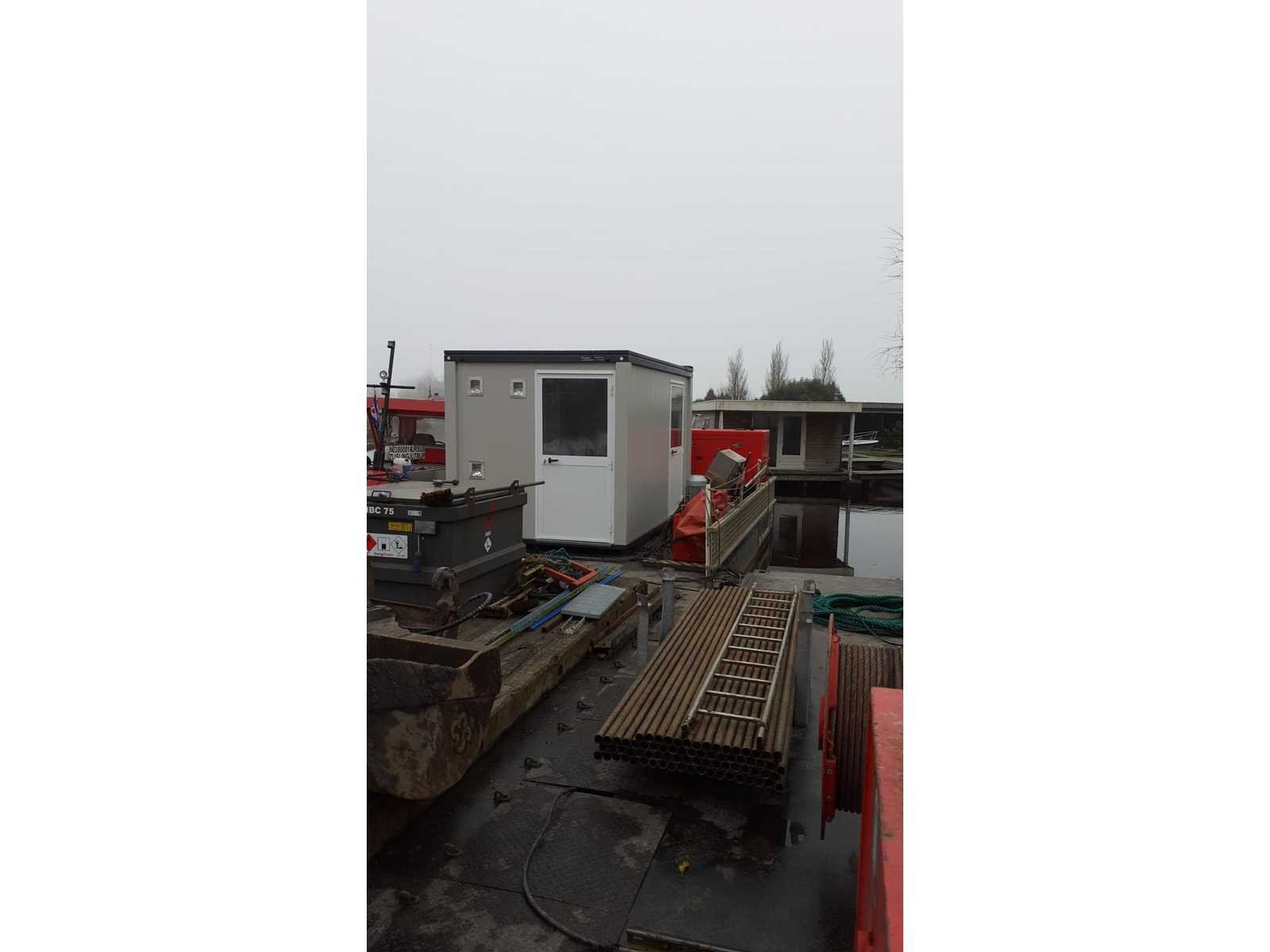 Scheepstype drijvend werktuig met wooneenheid; 1000 gebruiksuren; Werk (bagger / maai); NBKB EU goedkeuring; kan per vrachtwagen worden vervoerd; ankerpalen 9 meter; laadvermogen 50 ton; diesel generator; hydraulische pouwerpack; volledige documentatie aanwezig; Merk: Baars Pile Bouwjaar: 2017 Scheepswerf: Friesland Lengte over alles: 2438m Breedte formaat: 1040m
