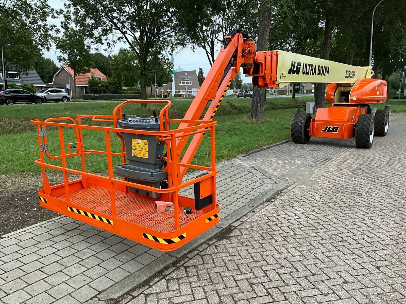 Merk: JLG Type: 1350SJP Bouwjaar: 2011 Diesel: true Telescoop hoogwerker: true Werkhoogte: 43150mm Horizontale rijkwijdte: 24380mm Platform capaciteit: 230kg Afgelezen urenstand: 6136 Eigen gewicht: 19980kg Totale afmeting L: 11860mm Totale afmeting Breedte: 2440mm Totale afmeting Hoogte: 3050mm