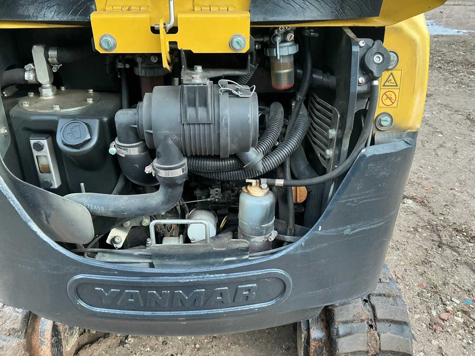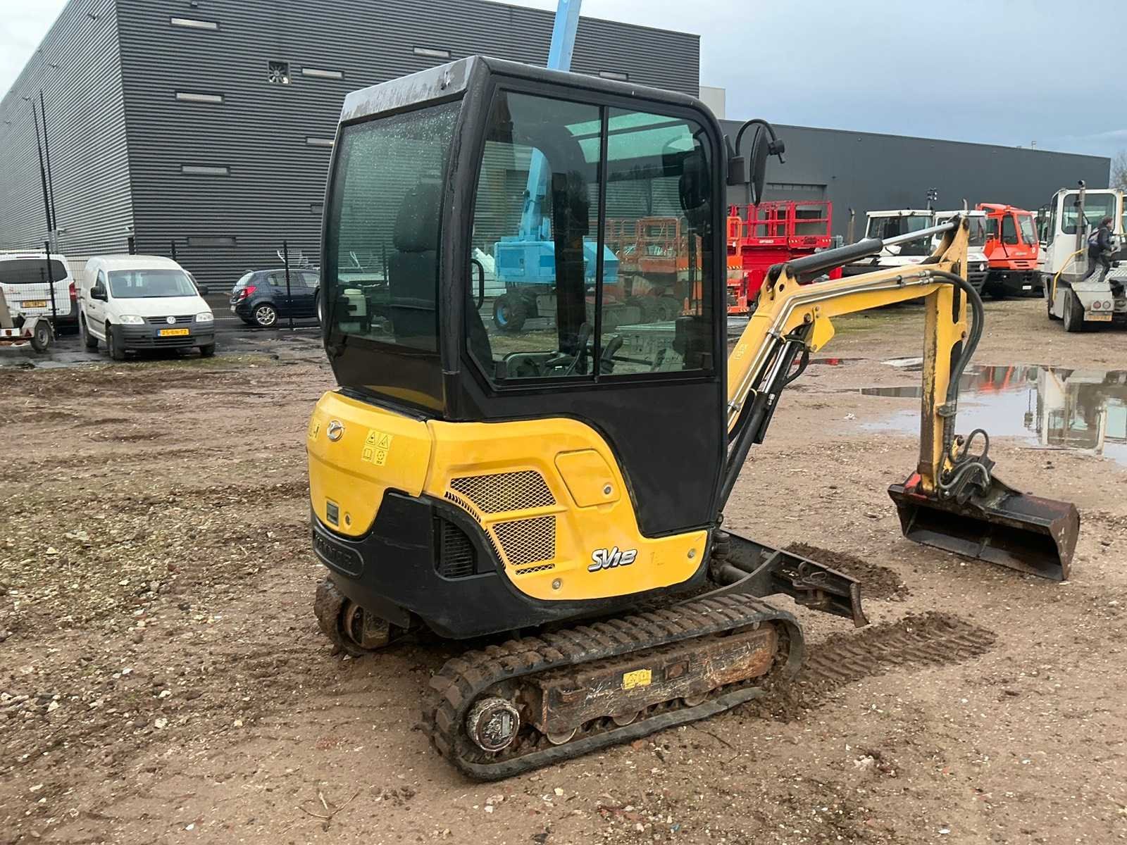 Verstelbare spoorbreedte; kantelbak; Optie: 1 proportionele functie op de joystick Merk: Yanmar Type: SV18 Bouwjaar: 2016 Serienummer: YCE0SV18LFBV10672 Merk motor: Yanmar Motorvermogen (kW): 9.5kW Aantal cilinders: 3 Brandstof: Diesel Met graafbak: true Graafbak afm. b: 990mm Rups breedte: 230mm Cabine: true Afgelezen urenstand: 2110 Eigen gewicht: 1925kg Totale afmeting Hoogte: 2300mm