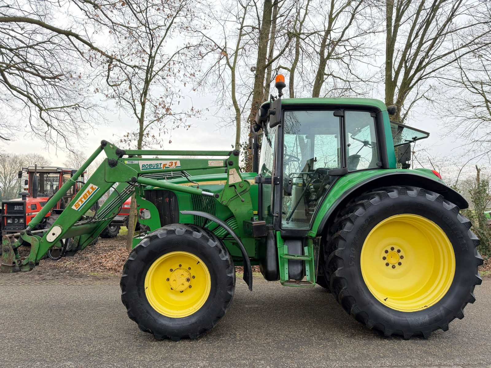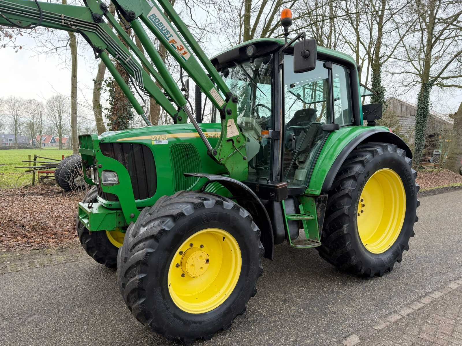 80 PK; 540/540E/1000 aftakas; stoll robust front lader met 3 functies; elektrische ommekeer; nieuwe stoel; 2dw ventielen; remventielen; snelverstel trekhaak; zwaaihaak; Merk: John deere Type: 6120 Bouwjaar: 2002 Kenteken: TNT-60-N Afgelezen urenstand: 11426 Bandenmaat voor: 480/65R24 Bandenmaat achter: 540/65R38 Voorlader: true Cabine: true Luchtgeveerde stoel: true Datum eerste toelating: 2002-06-30