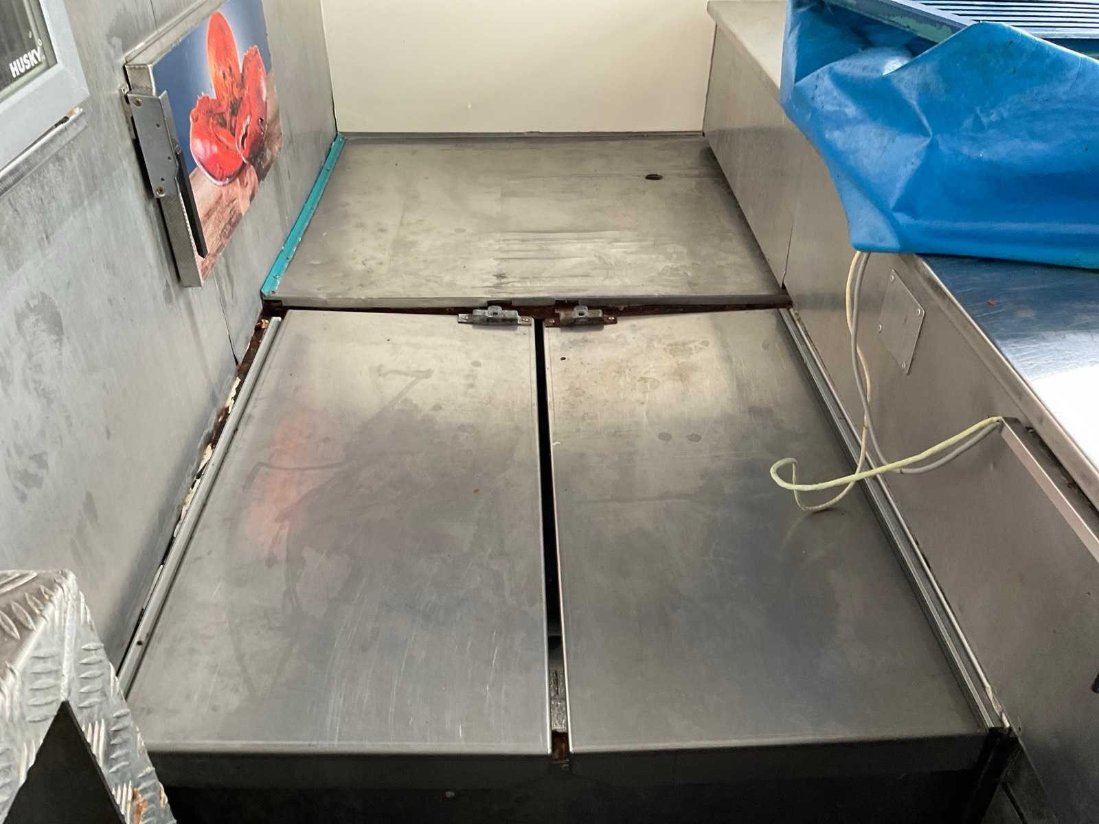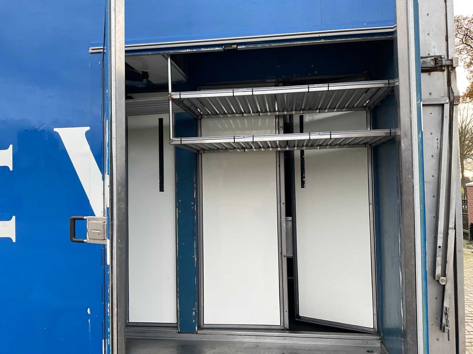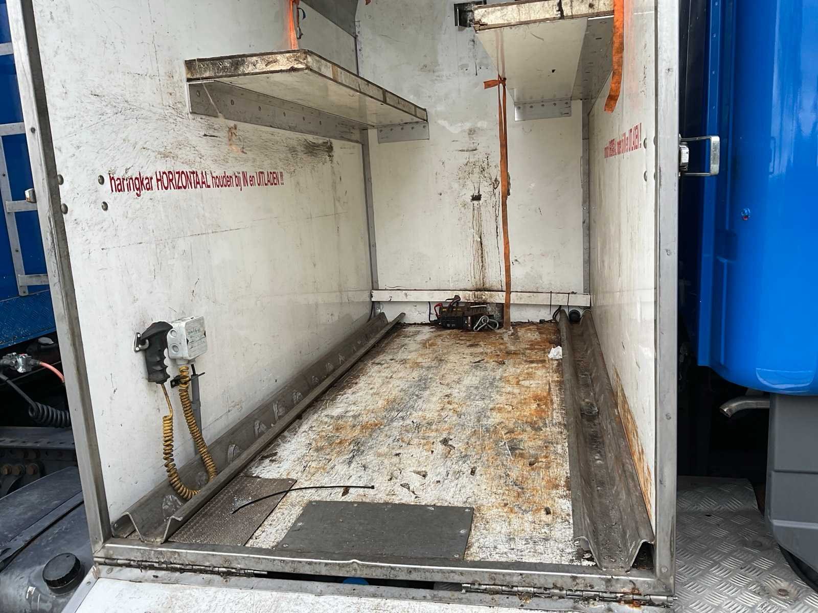 Gebruikt voor vis: Hydraulisch laten zakken tot op grond, hydraulisch verstelbare poten, hydraulische zijklep en toonbank verstelling, achterklep met gasveer, uitbreidbaar achterkant 260 cm tot totaal van 1460 cm, 2 koelcellen, bakpan op lpg, blikjes koelkast, 2 wasbakken, 440 V aansluitingen, koelinstallatie, lpg tank, wateraansluiting, luchtvering Inclusief 2012 Scania R400 trekker, chassisnummer XLER4X20005301916, kenteken 57-BBD-7, 18,6 ton maximum massa, combinatie 40 ton, afgelezen km stand 836610, digitale tachograaf (niet geschikt voor buitenland, climate control, slaapcabine met dubbel bed, luchtvering, schotelhoogte circa 100 cm, voorzien van extra opslagbak met laadklep en elektrische lier, afmetingen 230x114x238 cm, bandenmaat achter 295/60R22.5, bandenmaat voor 315/60R22.5, camera achter de cabine. Merk: Ruysschaert Type: SR16TP Bouwjaar: 1997 Chassisnummer VIN: 717 Kenteken: OP-12-KZ Datum eerste toelating (NL): 2016-09-29 Datum eerste toelating: 1997-04-07 APK vervaldatum: 2024-10-20 Aantal assen: 2 Laadvermogen: 1664kg Eigen gewicht: 13336kg Totale afmeting L: 1650mm Totale afmeting Breedte: 2550mm Totale afmeting Hoogte: 3750mm Zelf rijdend exporteren: Niet mogelijk No self drive export!: true