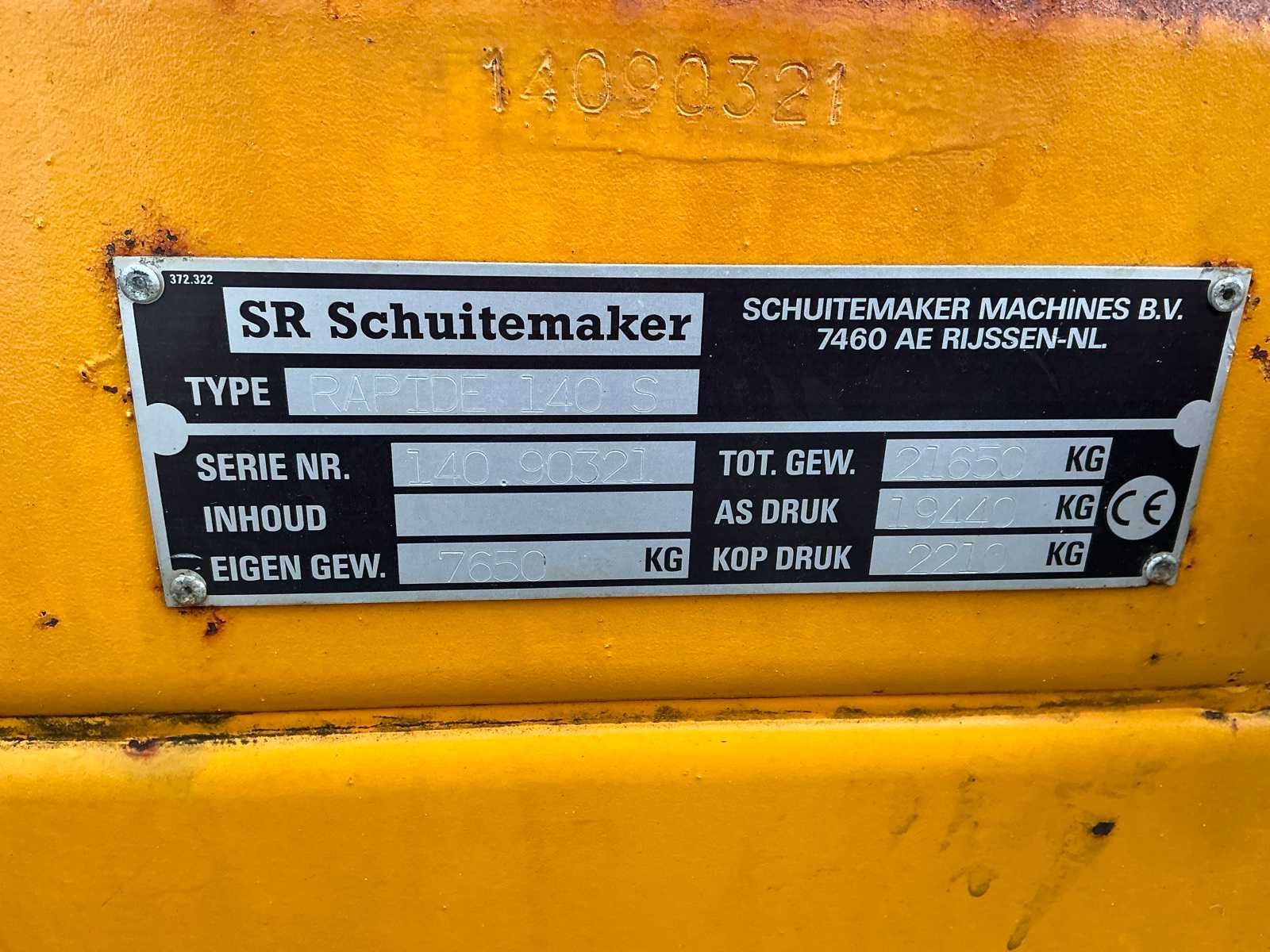 Voorzien van doseerwalsen, meelopende gestuurde pendeltandem, hydraulische remmen, hydraulische dissel(vering), bedieningskast, Vredestein Flotation Pro banden Merk: Schuitemaker Type: Rapide 140S Bouwjaar: 1999 Serienummer: 14090321 Kenteken: LHB-33-L Bandenmaat: 700/40-22.5