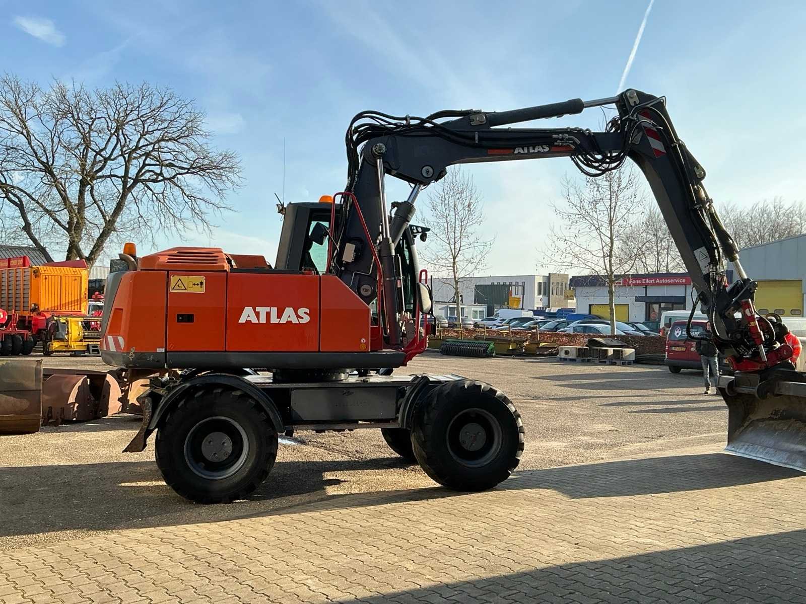Voorzien van Beco Indexator kantel/rotator, CW30 snelwisselsysteem, extra hydraulische functies., led verlichting, , centrale vetsmering bovenwagen en draaikantelstuk, hydraulisch verstekbare giek, dansonderdrukking op hefcilinders, extra hydraulische aansluitingen(proportioneel, sloop/rotatie) hamerfunctie, slangbreukbeveiliging op hef/knik en verstekcilider, werkverlichting(LED), zwaailampen, trekbek met sleuf in dozerblad, aanhangerverlichting stekkerdoos 7 polig, camera aan achterzijde, spatborden, let op! aircopomp ontbreekt Merk: Atlas Type: 150W Bouwjaar: 2013 Serienummer: 150W302147 Kenteken: TGZ-77-K Merk motor: Deutz TCD4.1L4 Motorvermogen (kW): 95kW Aantal cilinders: 4 Brandstof: diesel Graafbak afm. b: 1800mm Bandenmaat: Alliance Flotation 331 600/50R22.5 Afgelezen urenstand: 20200 Totale afmeting Breedte: 2650mm