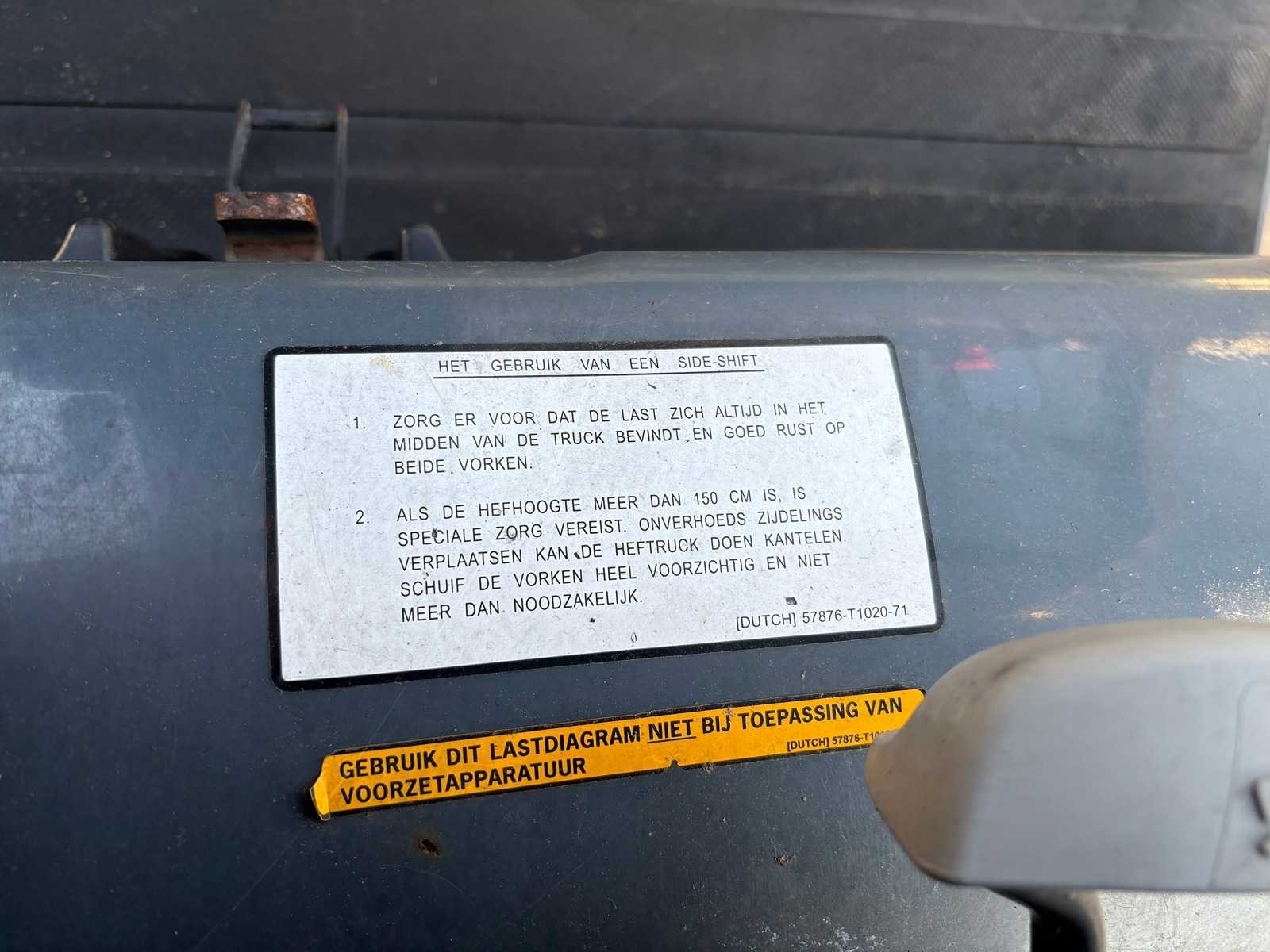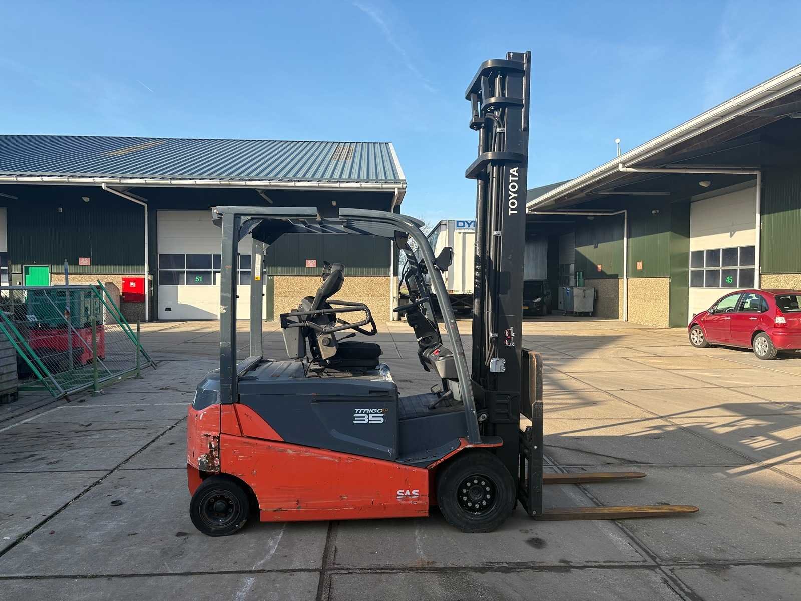 Let op; accu is leeg/mogelijk defect; werking onbekend; zonder oplader; urenstand onbekend; Merk: Toyota Type: 8FBMT35 Bouwjaar: 2015 Serienummer: 8FBMT35-16077 Brandstof: Elektrisch Aantal wielen: 4 Triple mast: true Hefvermogen: 3500kg Max. hefhoogte: 5000mm Hefhoogte: 5000mm Totale afmeting L: 3700mm Totale afmeting Breedte: 1170mm Totale afmeting Hoogte: 3300mm