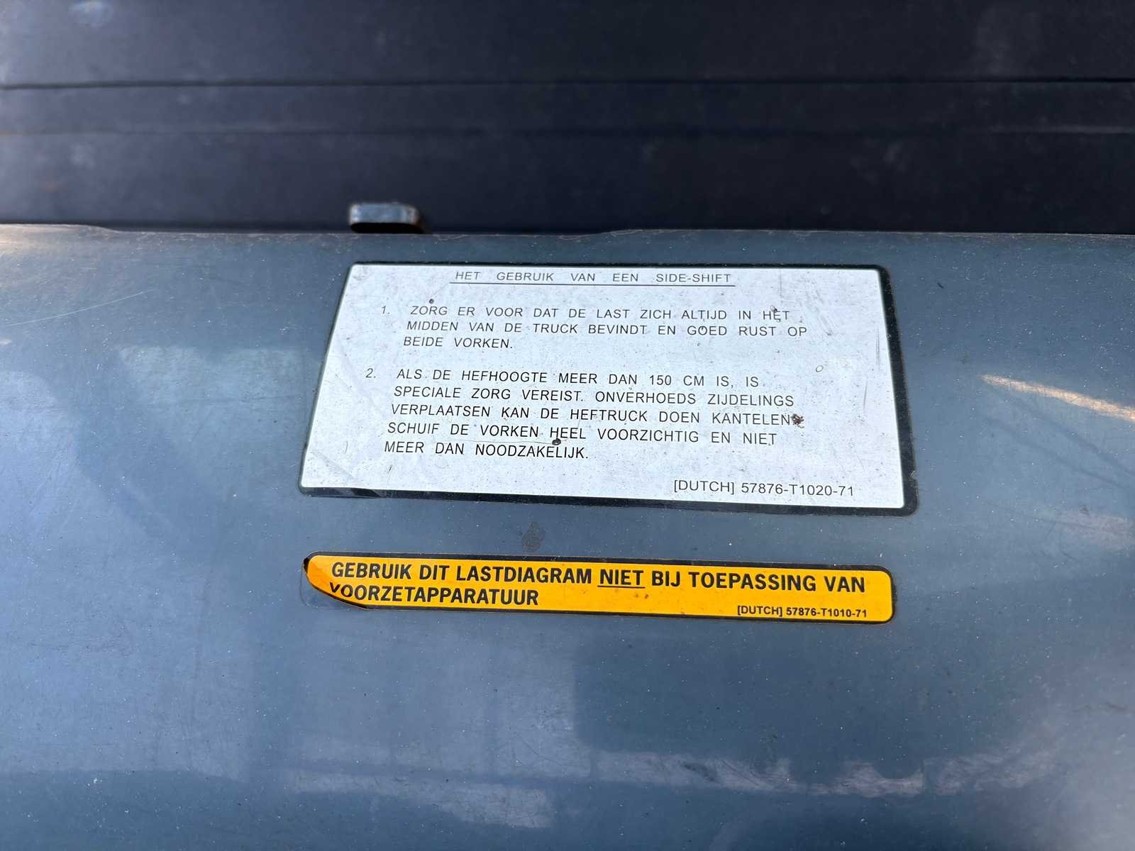 Accu is leeg/mogelijk defect; werking onbekend; beschadigingen in dak; zonder oplader; Merk: Toyota Type: 8FBMT35 Bouwjaar: 2015 Serienummer: 8FBMT35-10809 Brandstof: Elektrisch Duplex mast: true Hefvermogen: 3500kg Hefhoogte: 4960mm Minimale doorrijhoogte: 3300mm Totale afmeting L: 3700mm Totale afmeting Breedte: 1170mm Totale afmeting Hoogte: 3300mm