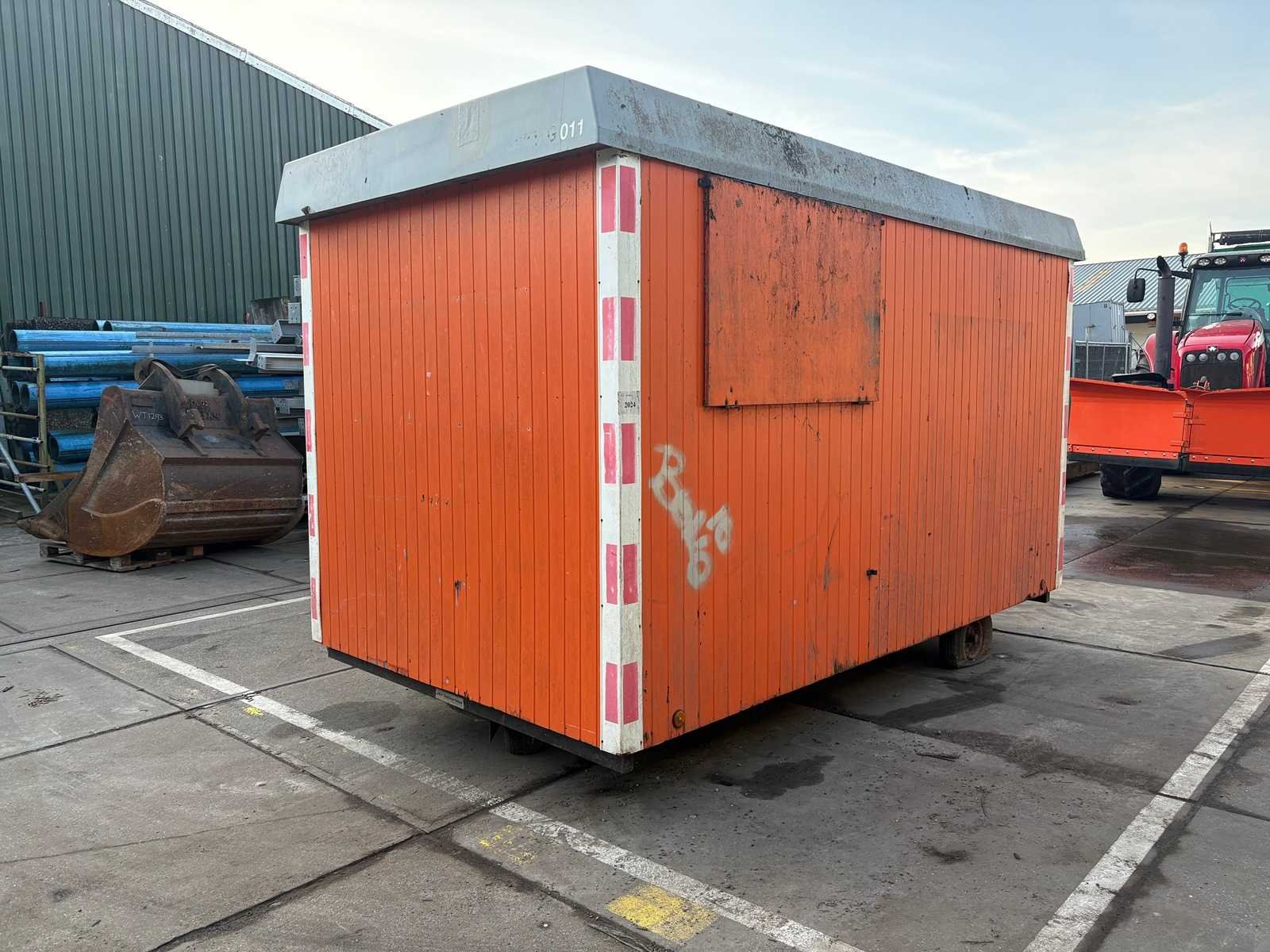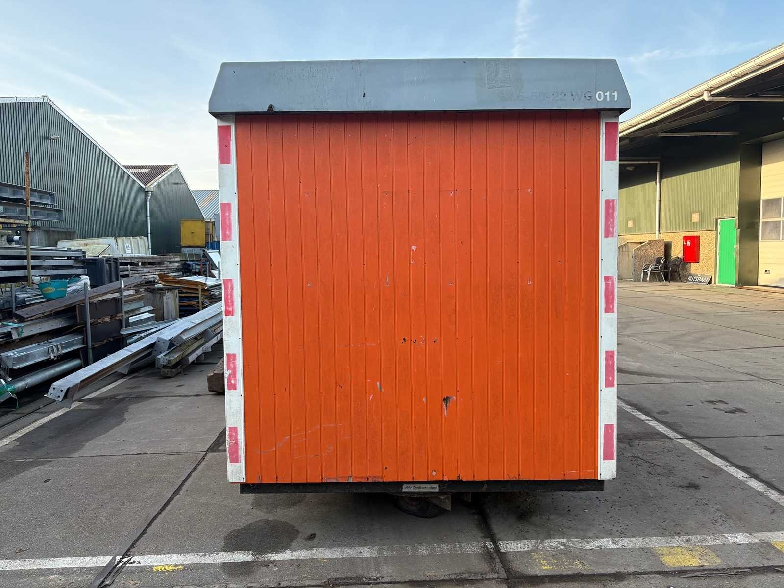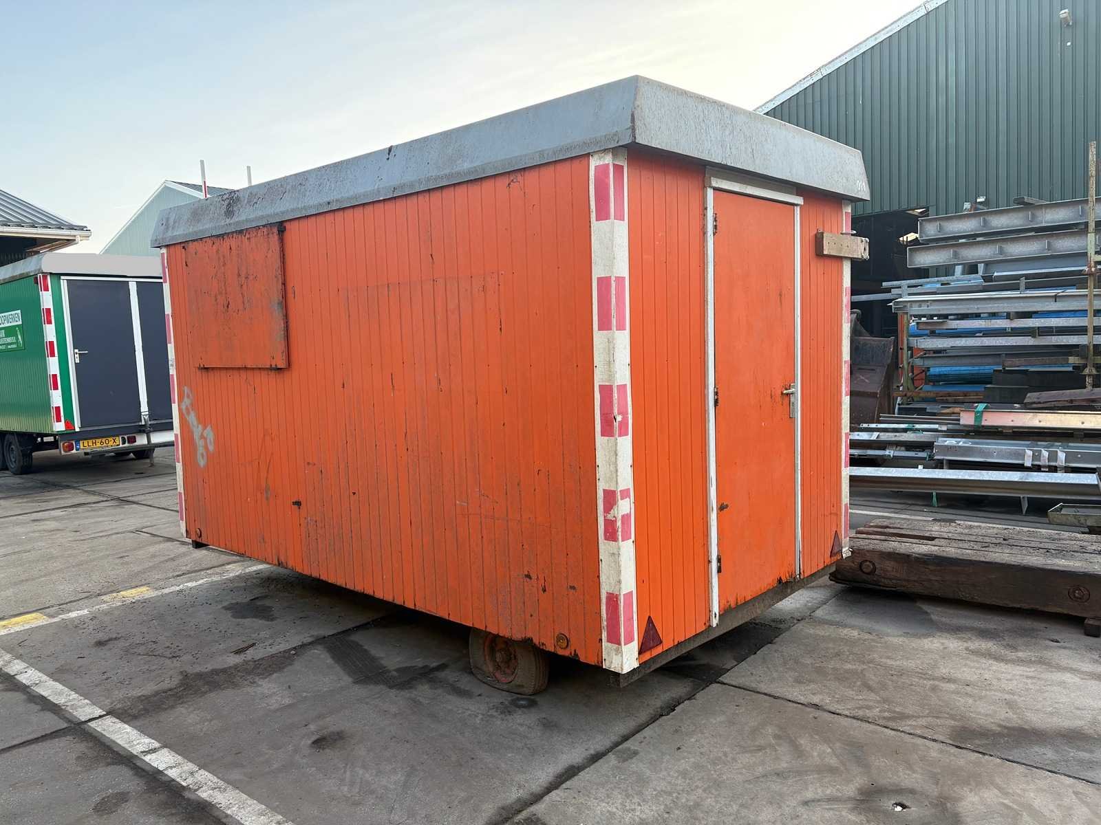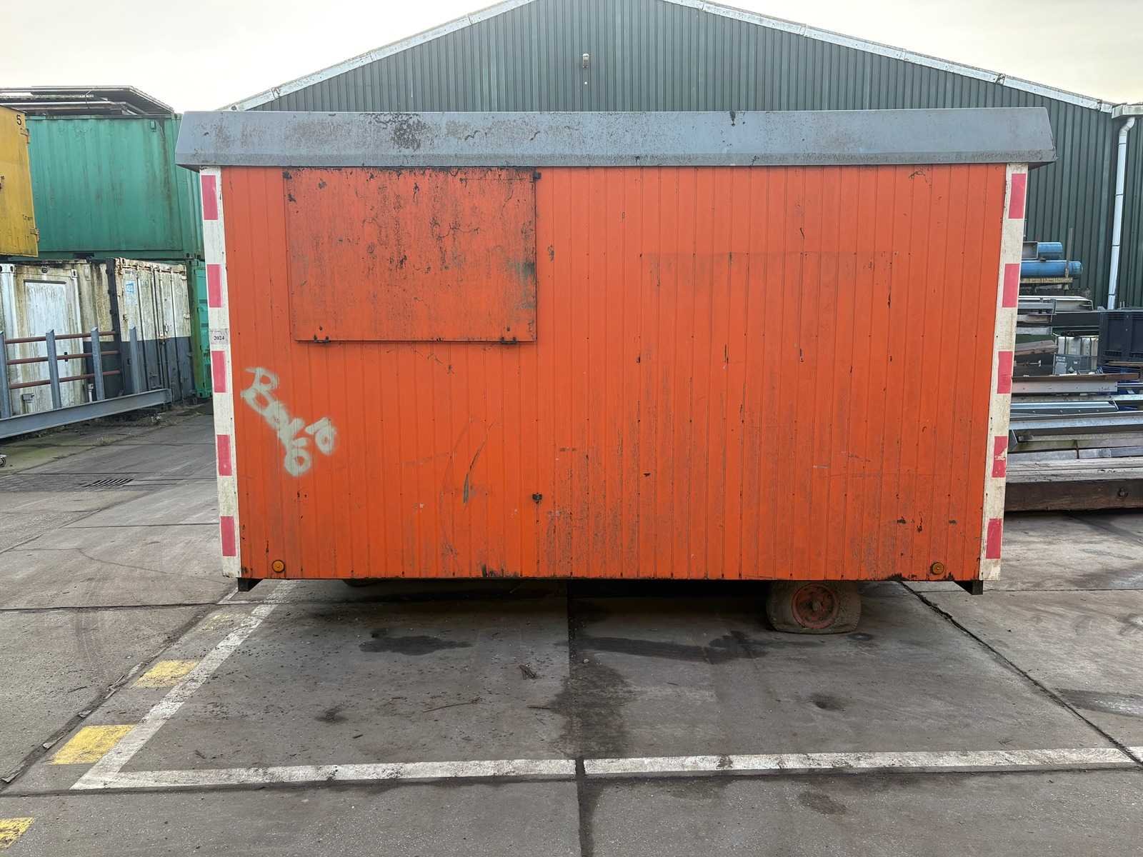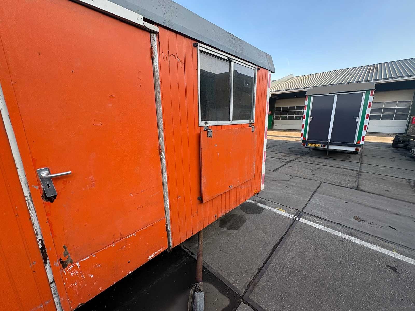 Zitgedeelte met tafel en vaste banken; voorzien van keuken met spoelbak; kastjes en boiler; aparte opslagruimte met werkblad en legplanken; voorzien van elektra en groepenkast; unit heeft duidelijke gebruikerssporen en slijtage; zonder kenteken; verrijdbaar op onderstel met dissel; banden zijn lek; Schaftunit: true Totale afmeting L: 3800mm Totale afmeting Breedte: 2110mm Totale afmeting Hoogte: 2600mm