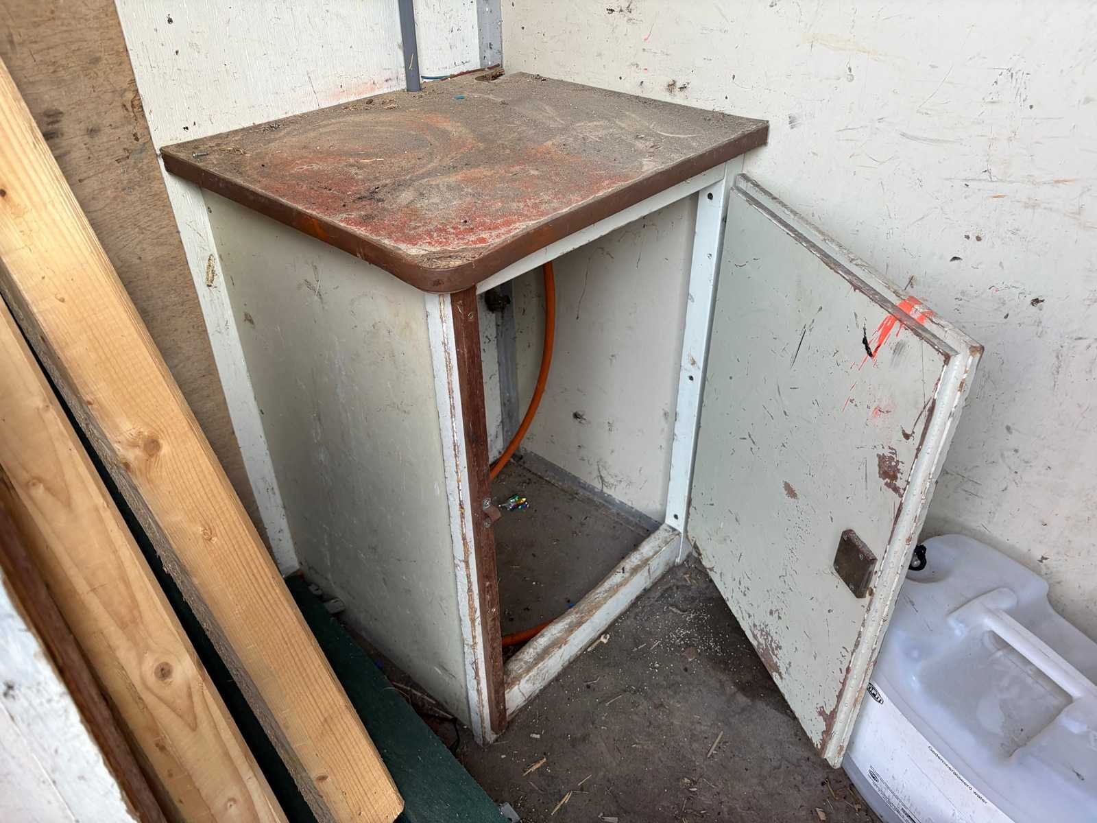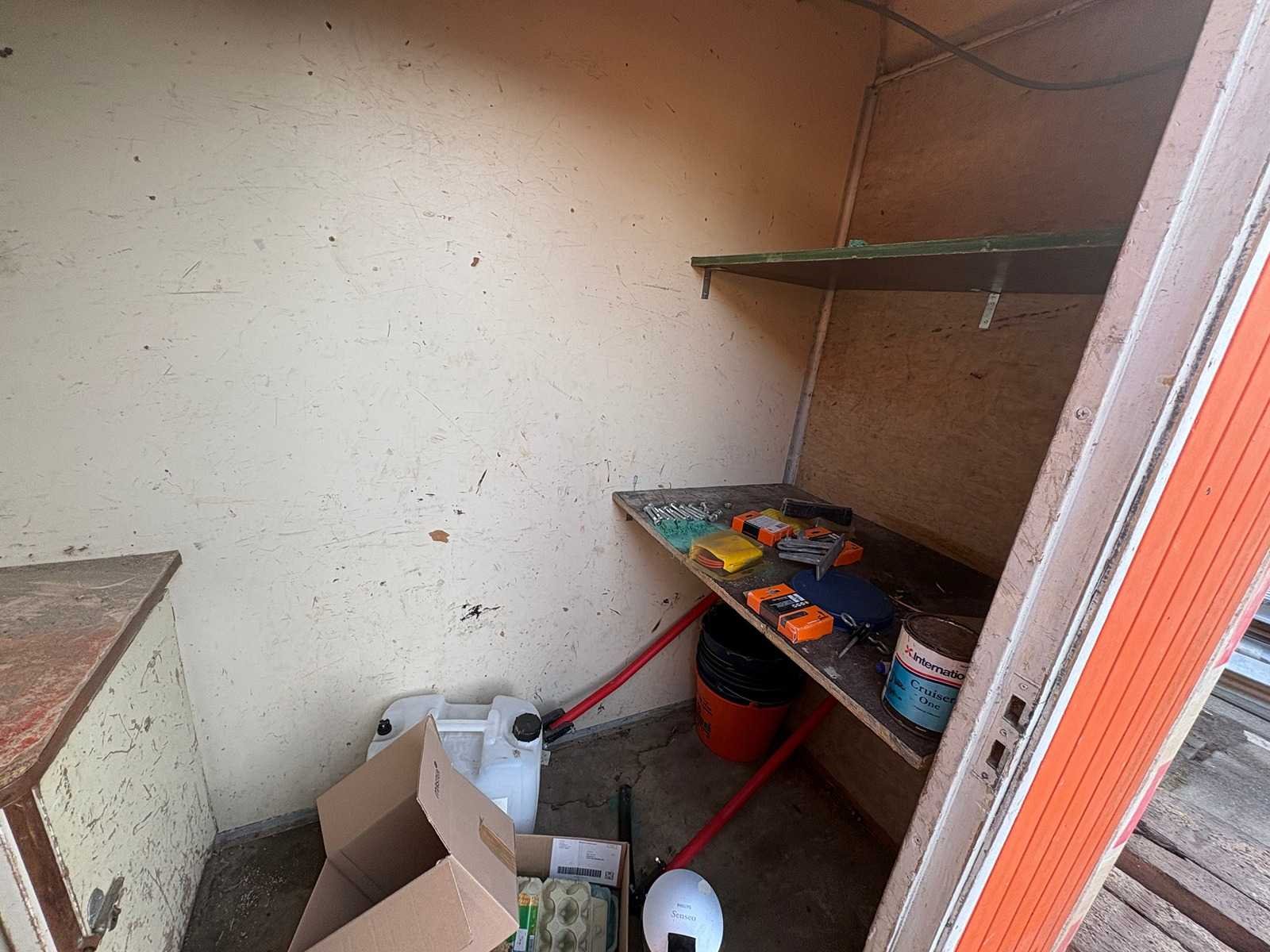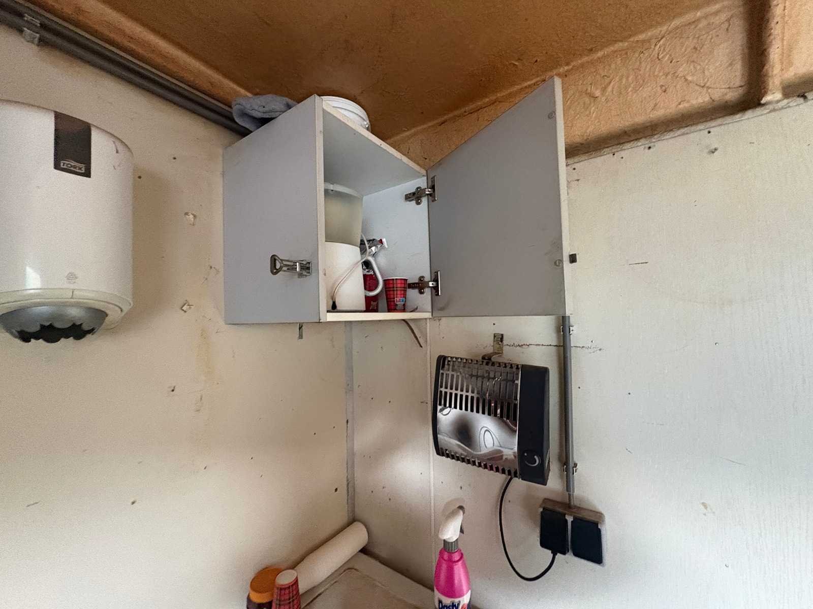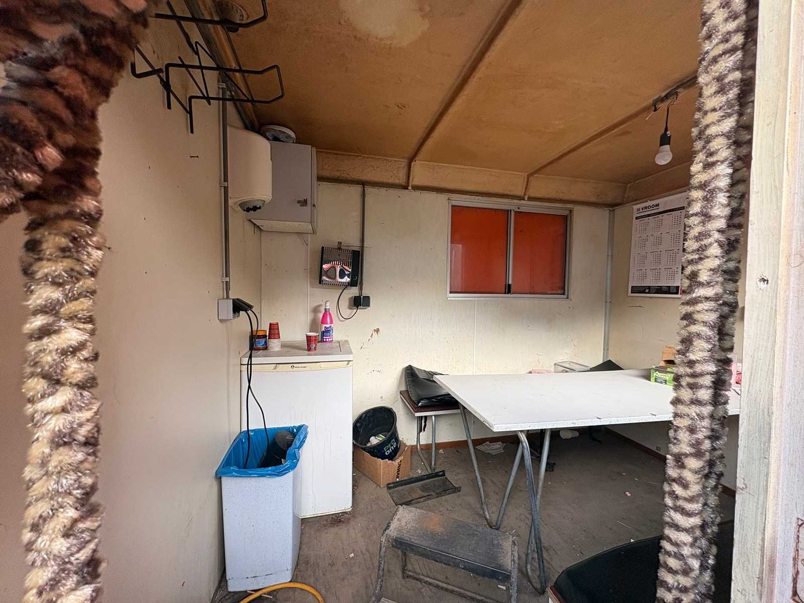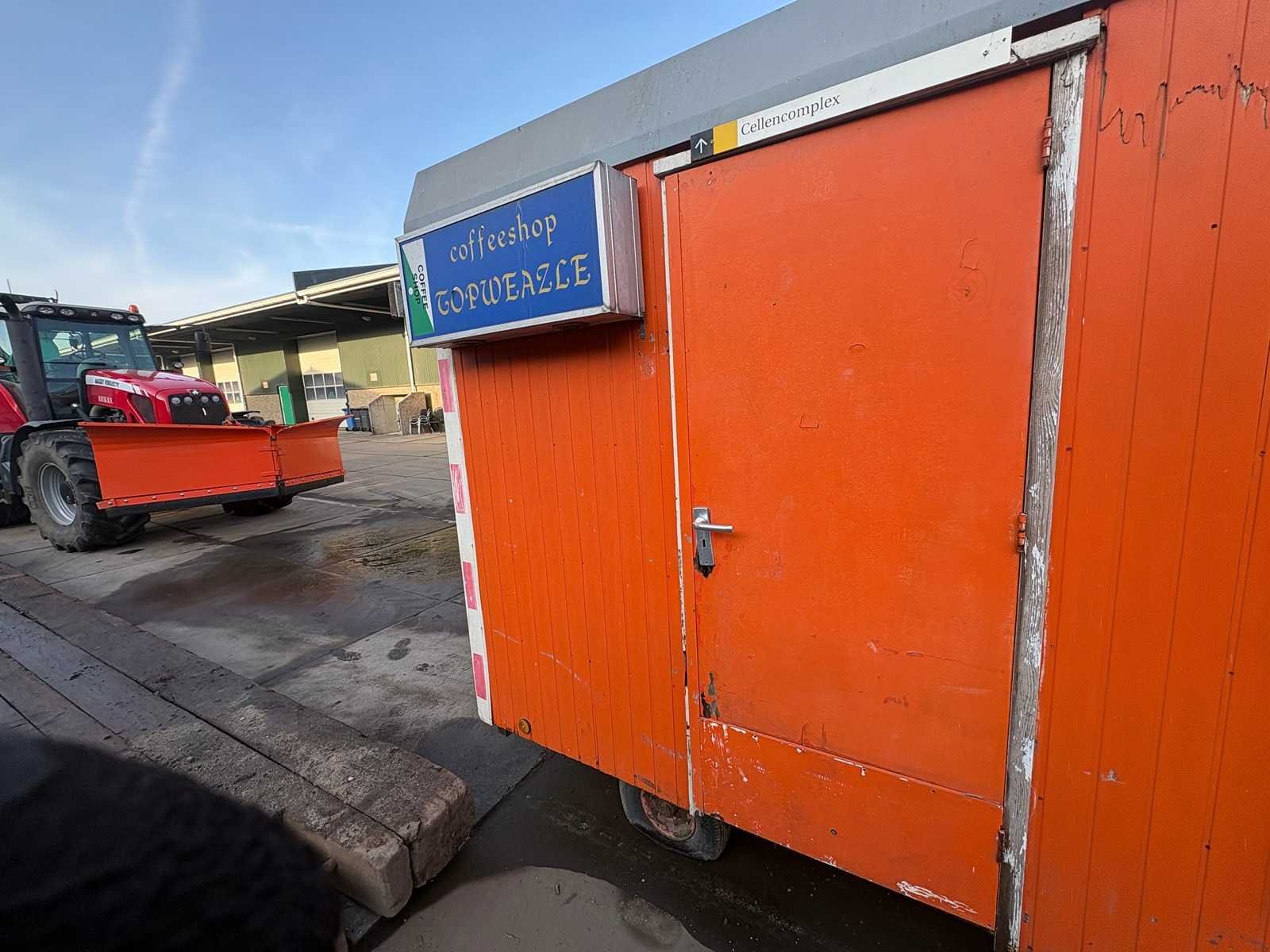 Zitgedeelte met tafel en vaste banken; voorzien van keuken met spoelbak; kastjes en boiler; aparte opslagruimte met werkblad en legplanken; voorzien van elektra en groepenkast; unit heeft duidelijke gebruikerssporen en slijtage; zonder kenteken; verrijdbaar op onderstel met dissel; banden zijn lek; Schaftunit: true Totale afmeting L: 3800mm Totale afmeting Breedte: 2110mm Totale afmeting Hoogte: 2600mm