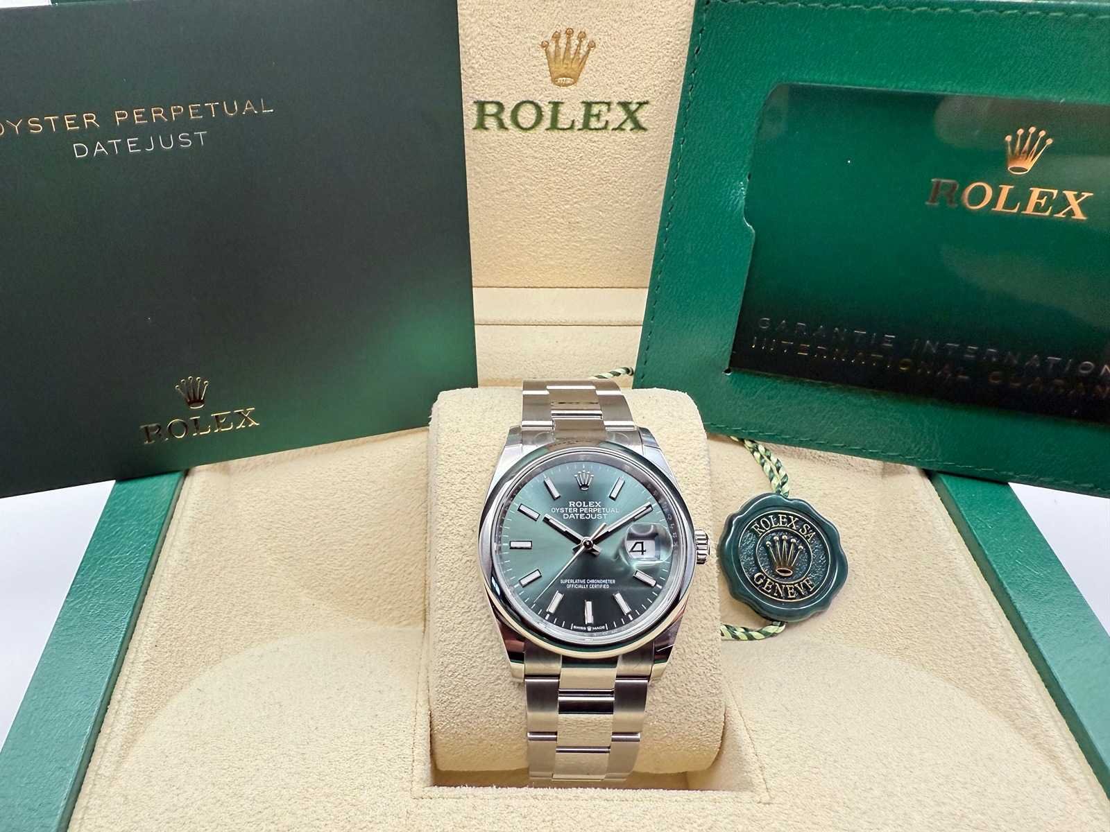 Model: Rolex Datejust 36 Reference: 126200 Condition: Brand new, unworn Material: Stainless steel Dial: Mint green Bracelet: Jubilee Bezel: Smooth Warranty: 5-year international Rolex warranty Full set: Includes box, booklets, warranty card, cardholder, and Rolex tag Merk: Rolex Model: Datejust 36 Bouwjaar: 2026 Referentienummer: 126200 Materiaal kast: Steel Materiaal horlogeband: Steel Oyster Materiaal sluiting: Steel Wijzerplaat: Mint Green Kastmaat: 36 mm