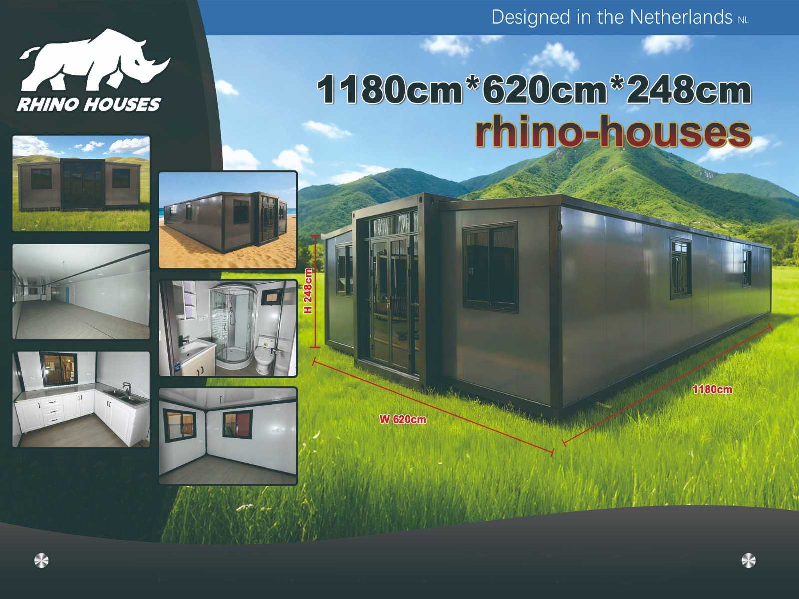Voorzien van geïsoleerde wanden en dak; 2 slaapkamers; leefruimte met hoekkeuken; badkamer met douche, wc en wastafel; elke ruimte voorzien van verlichting en stopcontacten 230V; meterkast; PVC vloer; aluminium ramen en deuren; afsluitbaar; water, stroom en afvoer kan makkelijk aangesloten worden is voorbereid; ongebruikt en staat transport klaar (transport afmetingen 9000x220x248 cm, gewicht 3500 kg) Merk: Rhino Houses Model: 72 m2 Product type: 2 slaapkamers, badkamer en keuken Gewicht: 5500 Lengte: 9000 Breedte: 6200 Hoogte: 2480