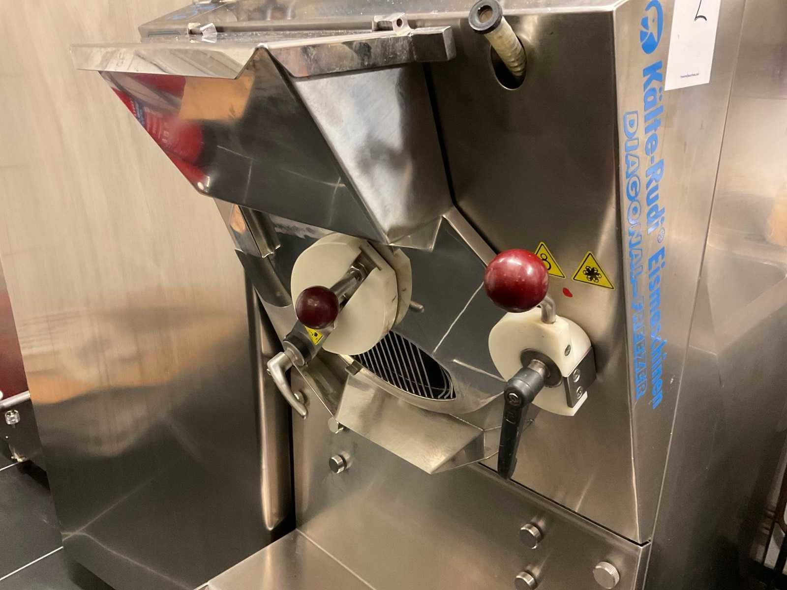 Nog aangesloten op elektriciteit, water en afvoer, capaciteit 3-9 liter per cyclus. Merk: Kälte Rudi Type: G9 Rvs: true Aansluiting: 400V Totale afmeting L: 100cm Totale afmeting Breedte: 55cm Totale afmeting Hoogte: 150cm