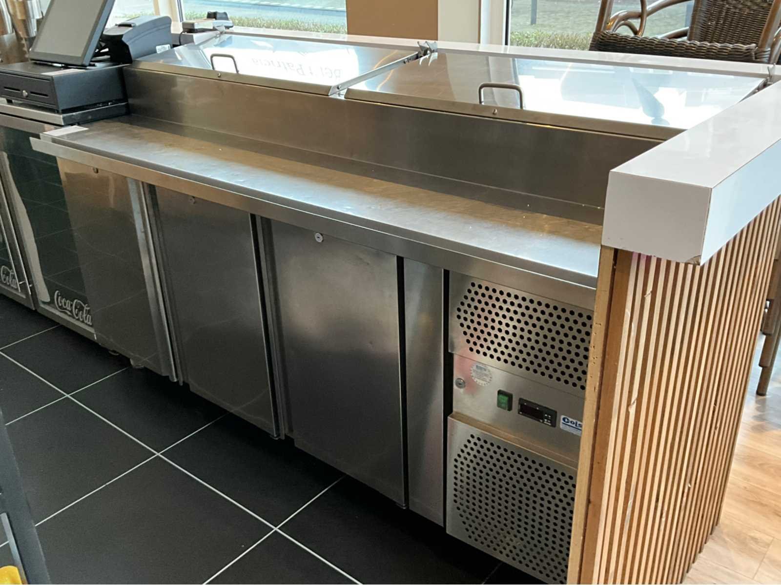 Voorzien van drie deuren, verstelbare poten en een extra koelruimte aan de bovenzijde Merk: Colson Totale afmeting L: 75cm Totale afmeting Breedte: 180cm Totale afmeting Hoogte: 100cm Rvs: true Aansluiting: 230V