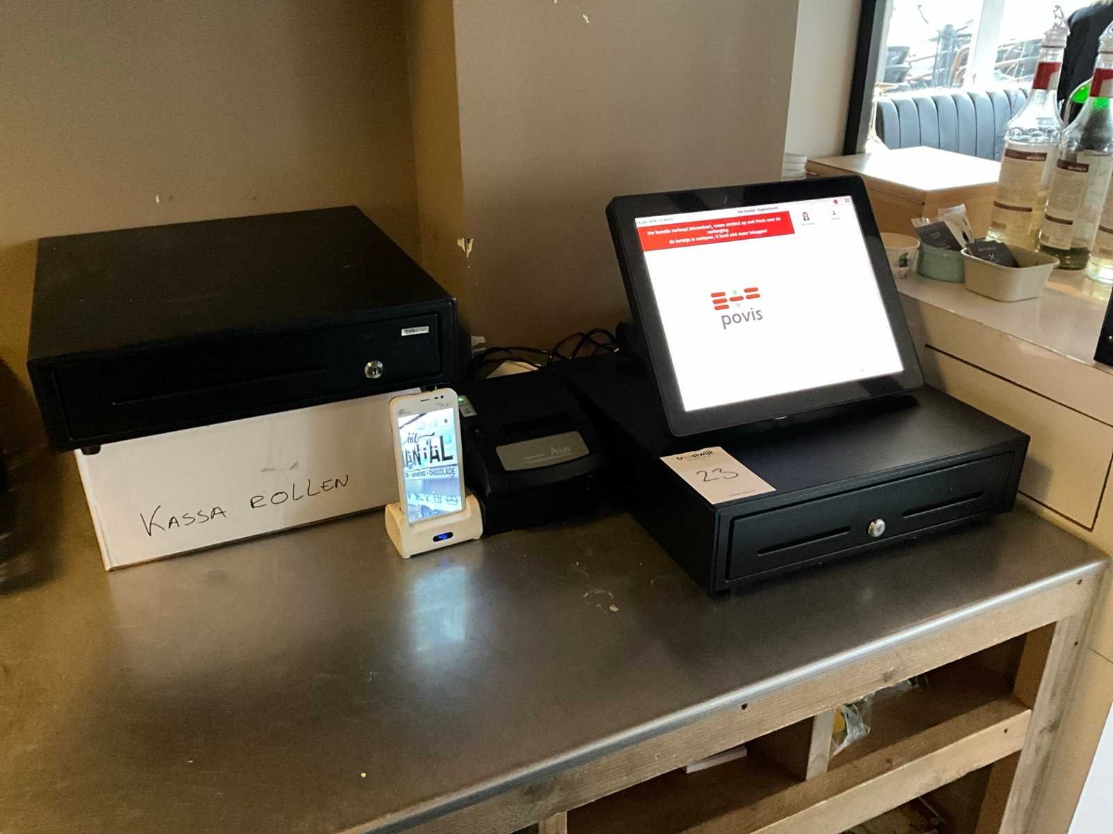 Met 2x kassalade, bonnenprinter en mobiele pinautomaat Pax A77 Merk: Povis Touchscreen: true Kassa lade: true