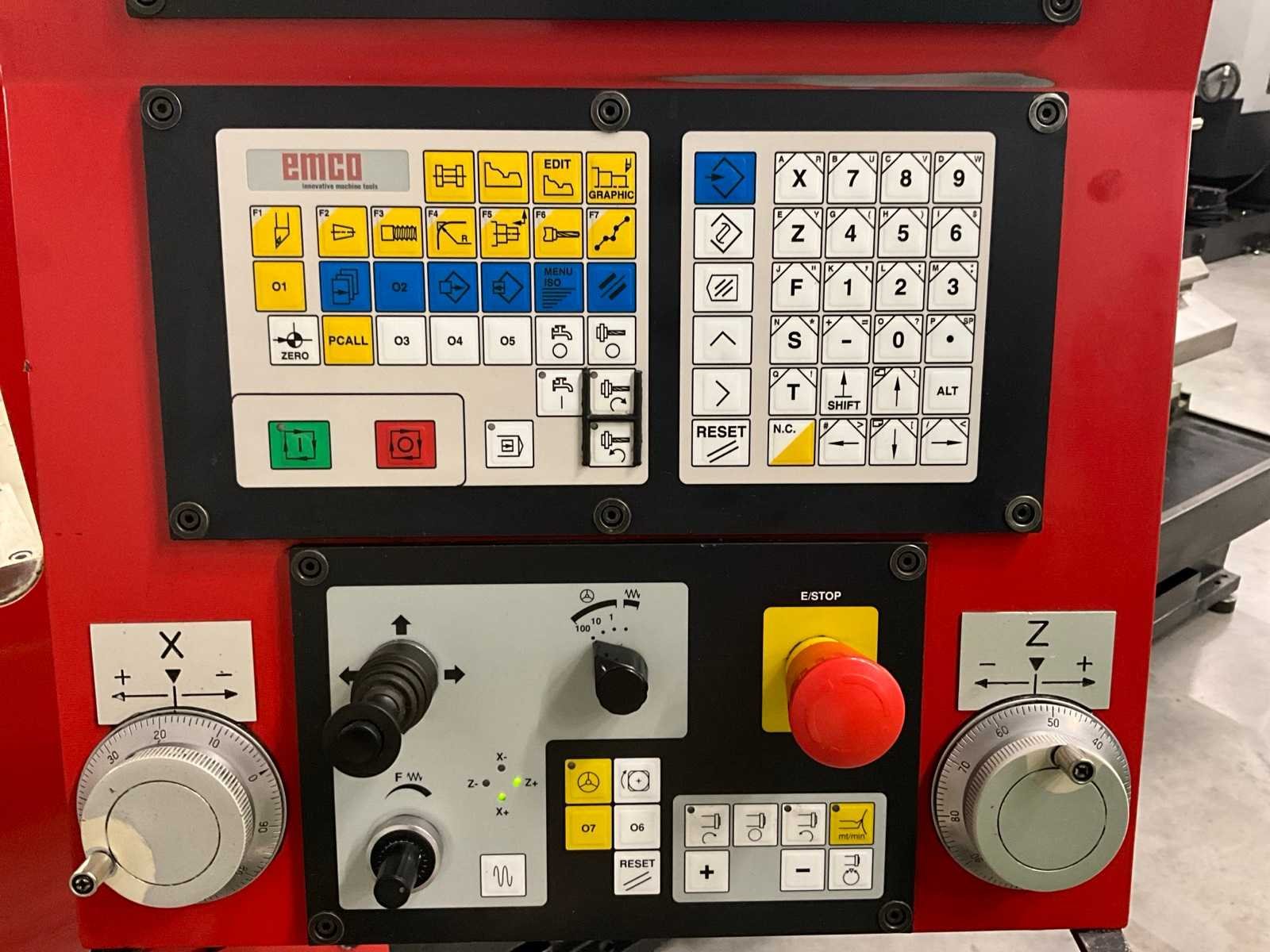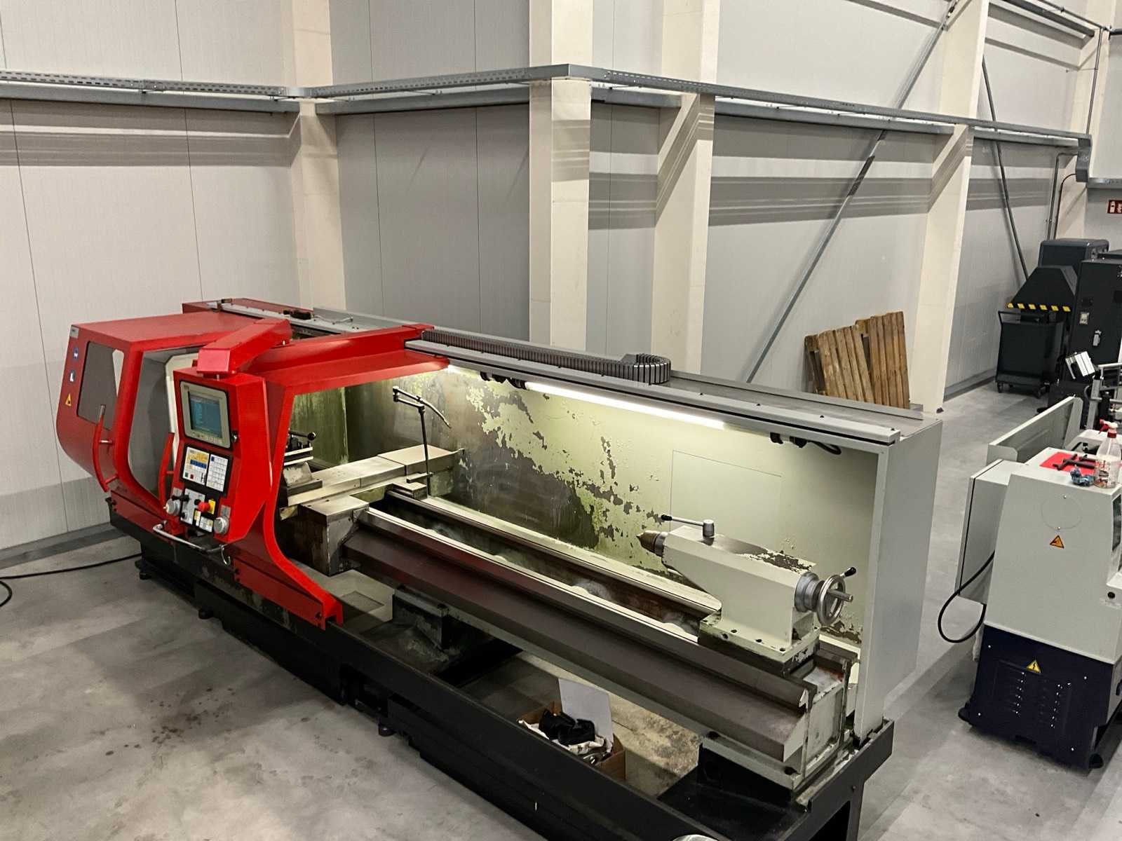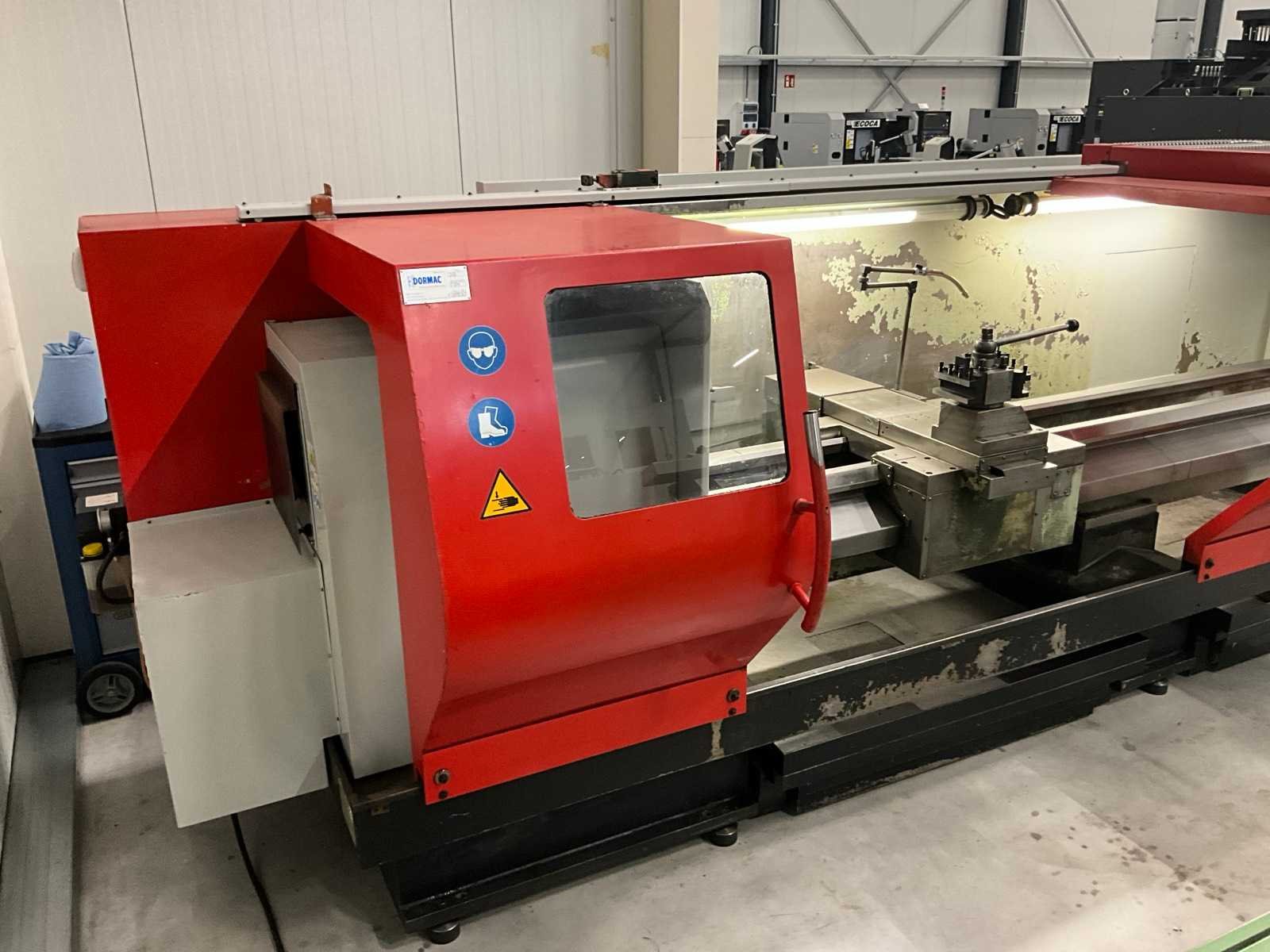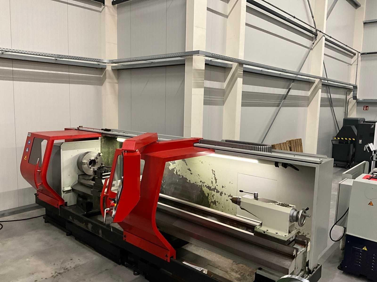 Emco E 300 / 3000 teach-in draaibank; Fagor 8055T besturing; draaidiameter boven bed Ø 550 mm; draaidiameter boven dwarsslede Ø 340 mm; afstand tussen centers 3000 mm; spildoorlaat Ø 108 mm; spilopname Camlock 8; maximaal toerental 2.500 RPM; gereedschaphouder 4-slag Parat Gr. 3; tegencenter MK5 met 220 mm slag; hoofdvermogen 25/17 kW; elektrische installatie 24 kVA / 3 x 400V / 50 Hz; machineafmetingen ca. L 5,2 m x B 2,1 m x H 1,9 m; machinegewicht ca. 4.000 kg; dubbele deur; spanenopvangbak; automatisch smeersysteem; koelmiddelinrichting; machineverlichting; machine voldoet aan CE-richtlijn; met harde omkeerklauwen, boeken/papieren en 4x Parat beitelhouders. Merk: EMCO Type: E 300 / 3000 Bouwjaar: 2006 Serienummer: 300120367 Draailengte: 3000mm Draai: 550mm Holle spil Ø: 108mm Snelheid tot n =: 2500rpm Aantal gereedschapwisselstations: 4 Koelmiddelpomp: true Besturing, merk, type: Fagor 8055T Motorvermogen (kW): 25/17kW Machinegewicht: 4000kg Afmeting l: 5200mm Afmeting b: 2100mm Afmeting h: 1900mm