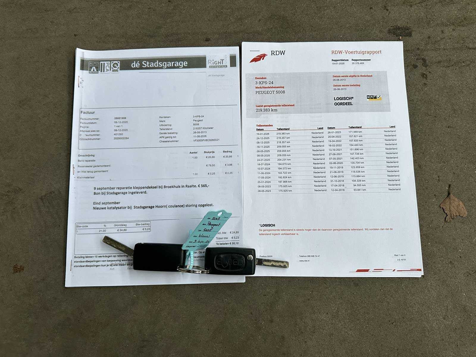 LET OP! Voor Nederlandse kopers en kopers van buiten de EU komt de Rest-BPM er nog bij, deze verschijnt later op de factuur en bedraagt €1.100,-. Dus, totale biedprijs + €1.100,-. De totaalprijs bij het bieden is dus excl. BPM! (This is only relevant for Dutch buyers and buyers from outside the EU). Important: international buyers (within the EU) can purchase this lot without the remaining amount Dutch BPM tax ('rest-BPM'). For this lot, buyer pays the BPM tax as a deposit and after infinite registration of this lot in your EU-country within an agreed time frame, the deposit will be refunded. Dutch and non-EU buyers will pay the BPM via the invoice of this lot. Kenteken: 3-KPS-24 Merk: Peugeot Model: 5008 Type: 1.6 THP Style 7p. Afgelezen kilometerstand: 219383km Cilinderinhoud: 1598cc Vermogen (kW): 115kW Brandstof: Benzine Chassisnummer: VF30E5FV8CS283021 NAP status: Logisch Datum eerste toelating: 2013-06-26 Datum eerste toelating (NL): 2013-06-26 APK vervaldatum: 2026-06-11 Vermogen (pk): 154hp Aandrijving: Voorwielaandrijving Aantal zitplaatsen: 7 Maximaal trekgewicht ongeremd: 1500kg Maximaal trekgewicht geremd: 750kg Kleur: blauw Transmissie: Handgeschakeld Stuurwiel: Links Emissieklasse: 5 Aantal deuren: 4 Ledig gewicht: 1465kg Bruto BPM (NL): 9621€ Aantal cilinders: 4 Carrosserie: MPV Nationaliteit documenten: Nederlandse kentekendocumenten Onderhoudshistorie: Ja, gedeeltelijk Carfax Link: https://was.carfax.eu/v0/api/ccdid/5100016408/svc/201/vinreg/3KPS24/checksum/eyJhbGciOiJIUzI1NiIsInR5cCI6IkpXVCJ9.eyJleHAiOjE3NzQ3ODUyNDV9.Q5hD_gTu0dZw0iwhg6YqH-K9F1RO_UV5UFNPlvVeqmY