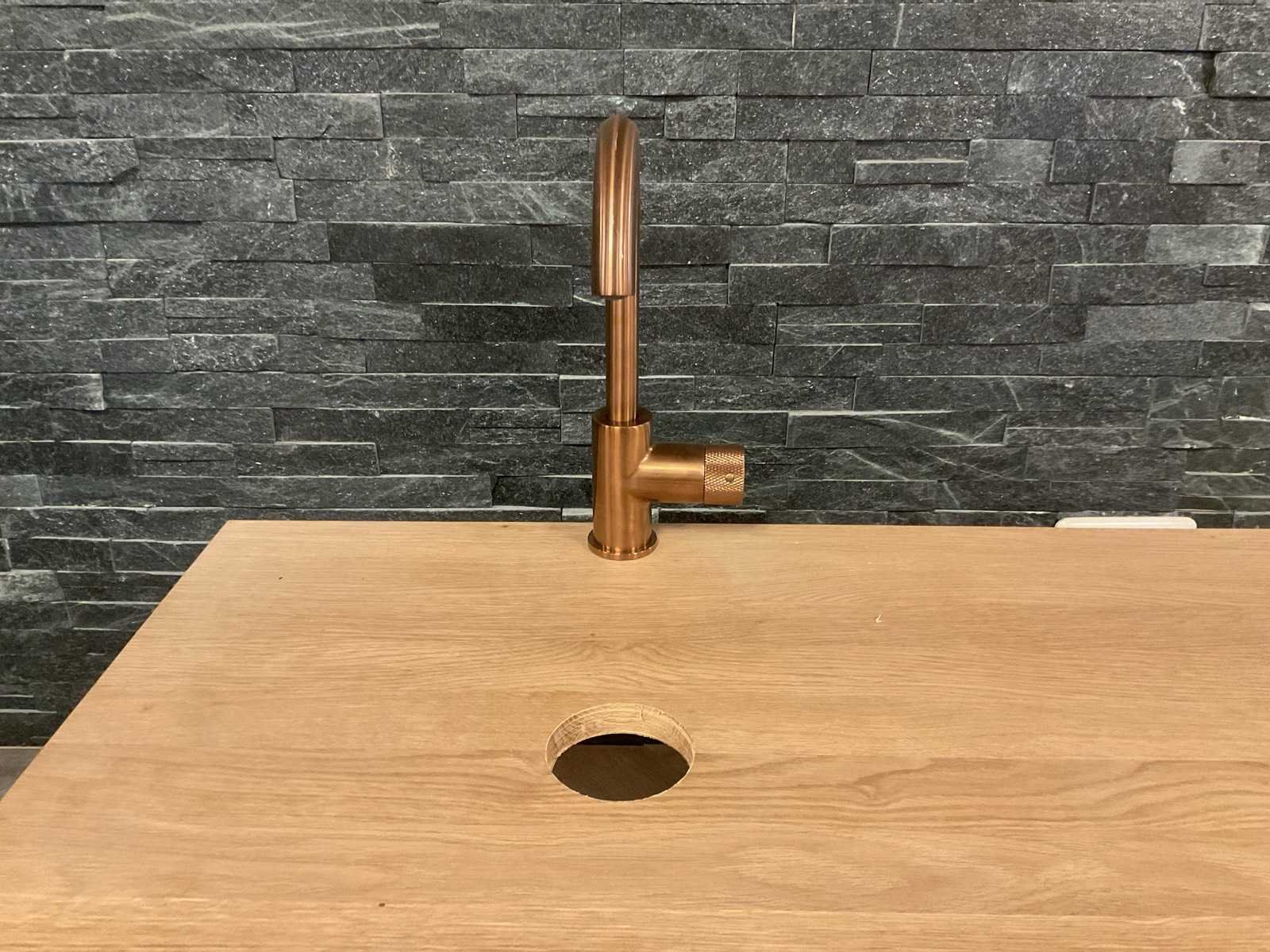 Merk: Looox Hoogte: 45cm Lengte: 120cm Breedte: 47cm Materiaal: Hout,keramiek,koper Kleur: Bruin,zwart,grijs,brons