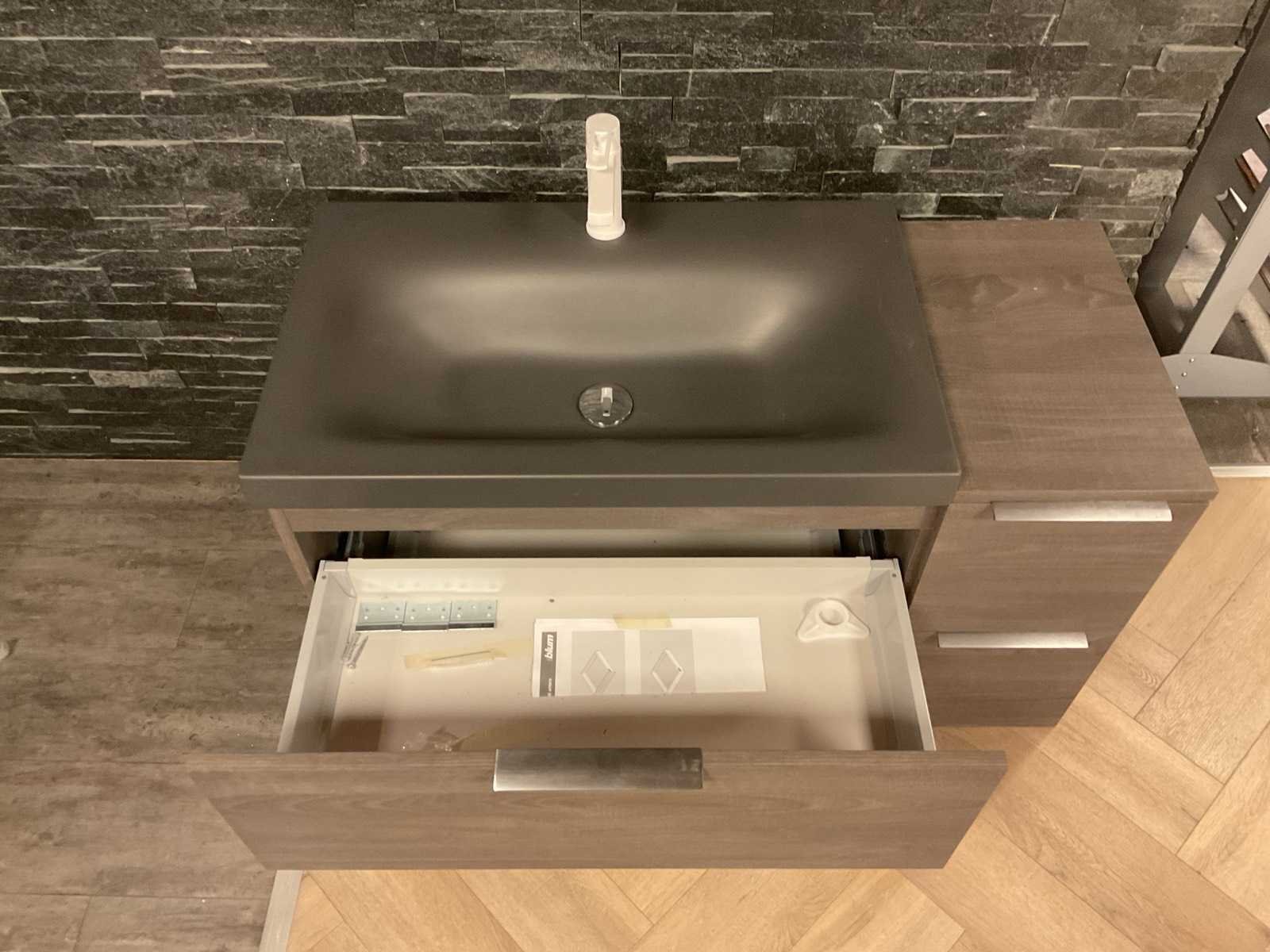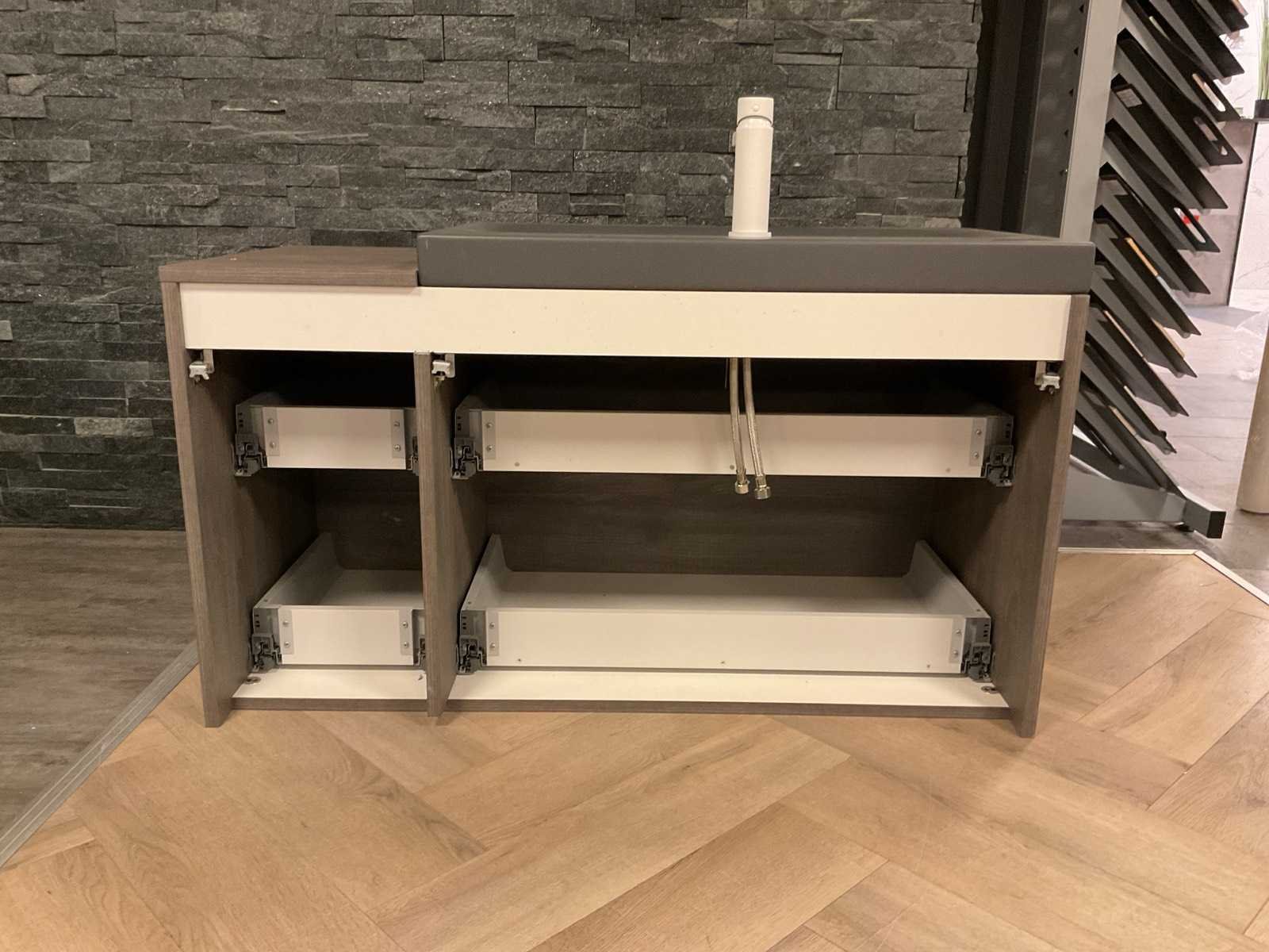 Merk: Bette Hoogte: 70cm Lengte: 110cm Breedte: 50cm Materiaal: Hout,keramiek Kleur: Grijs