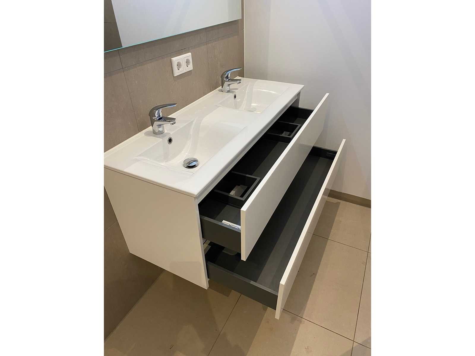 Conditie; gebruikt; Bestaande uit; Onderkast, wastafel, kranen en spiegel Breedte: 121cm Kraan: Ja Wastafel: Ja Spiegel: Ja Onderkast: Ja Lades: 2