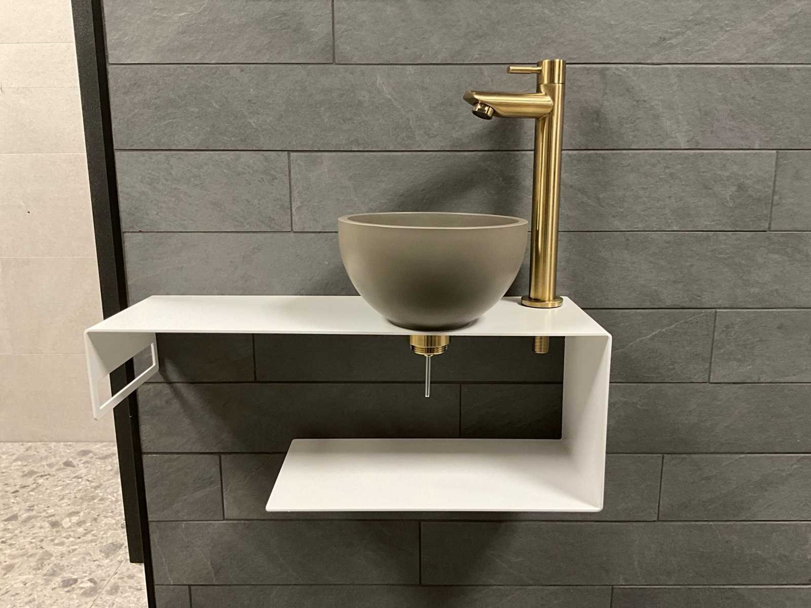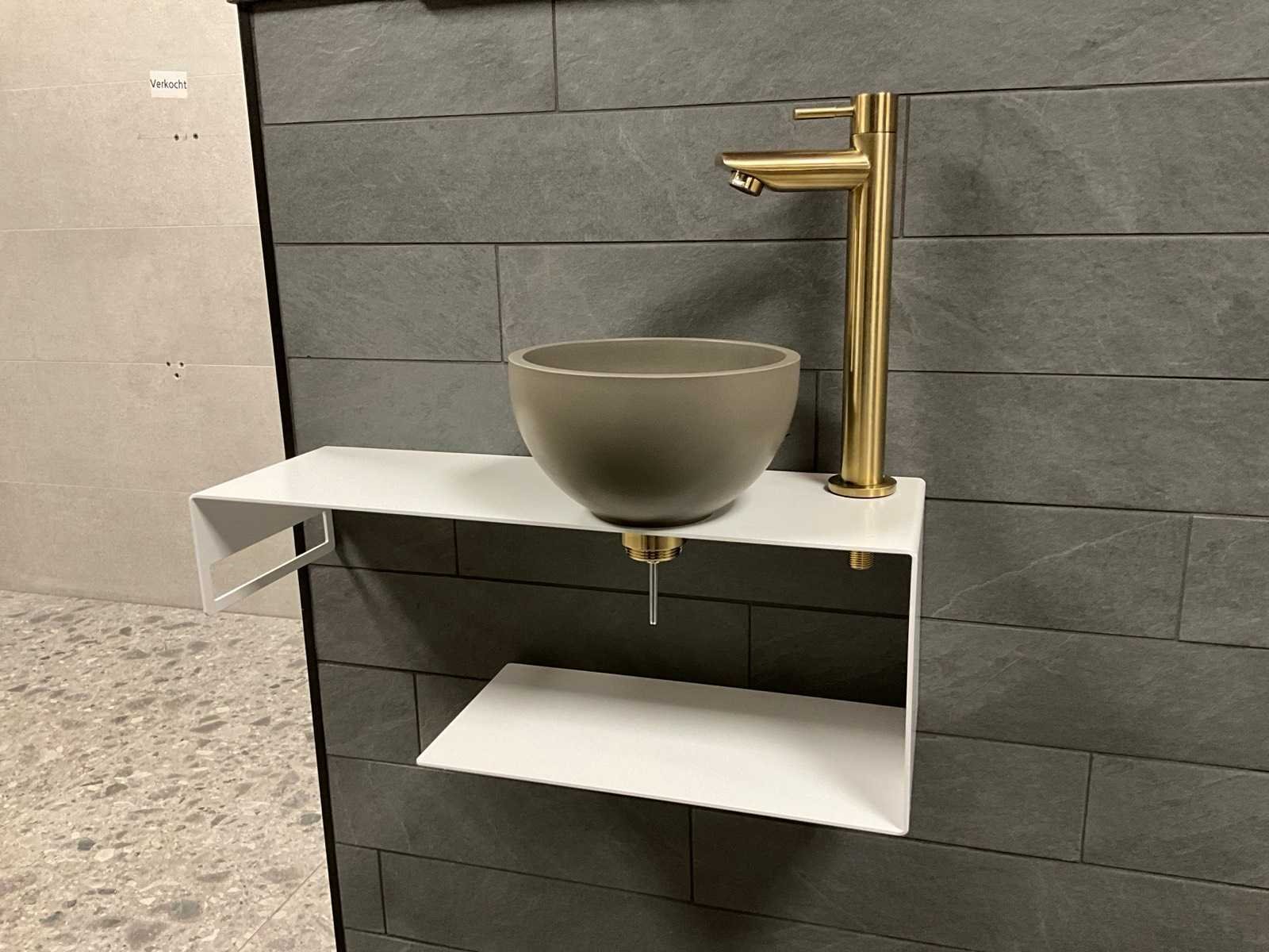 Bestaande uit; kast, waskom, kraan en afvoer set Merk: Sanibelle Model: INK Smart Lengte: 18cm Breedte: 54cm Hoogte: 20cm