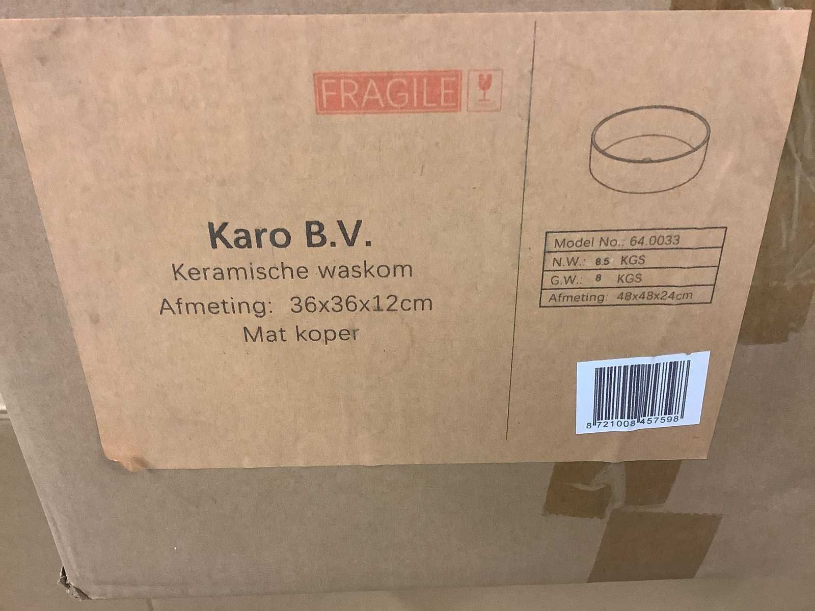 Merk: Karo Model: 64.0033 Kleur: Mat koper Lengte: 36cm Breedte: 36cm Hoogte: 12cm Materiaal: Keramisch
