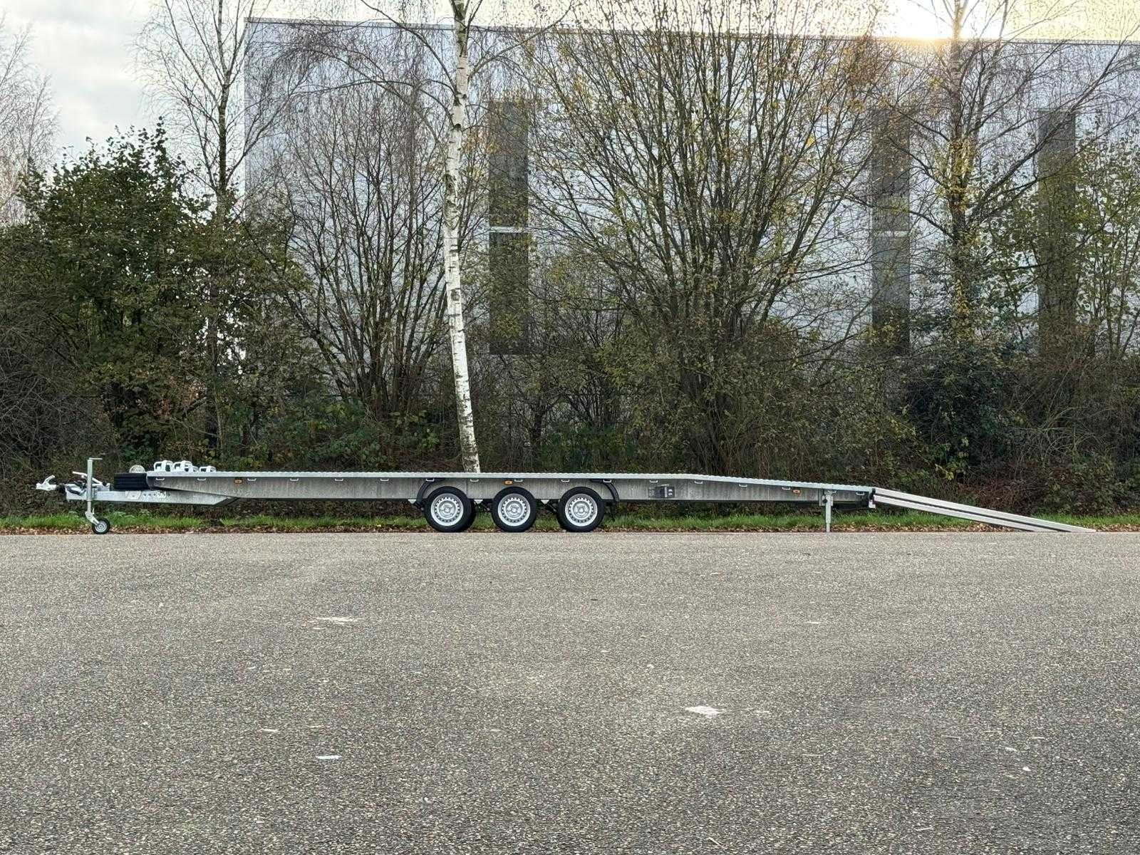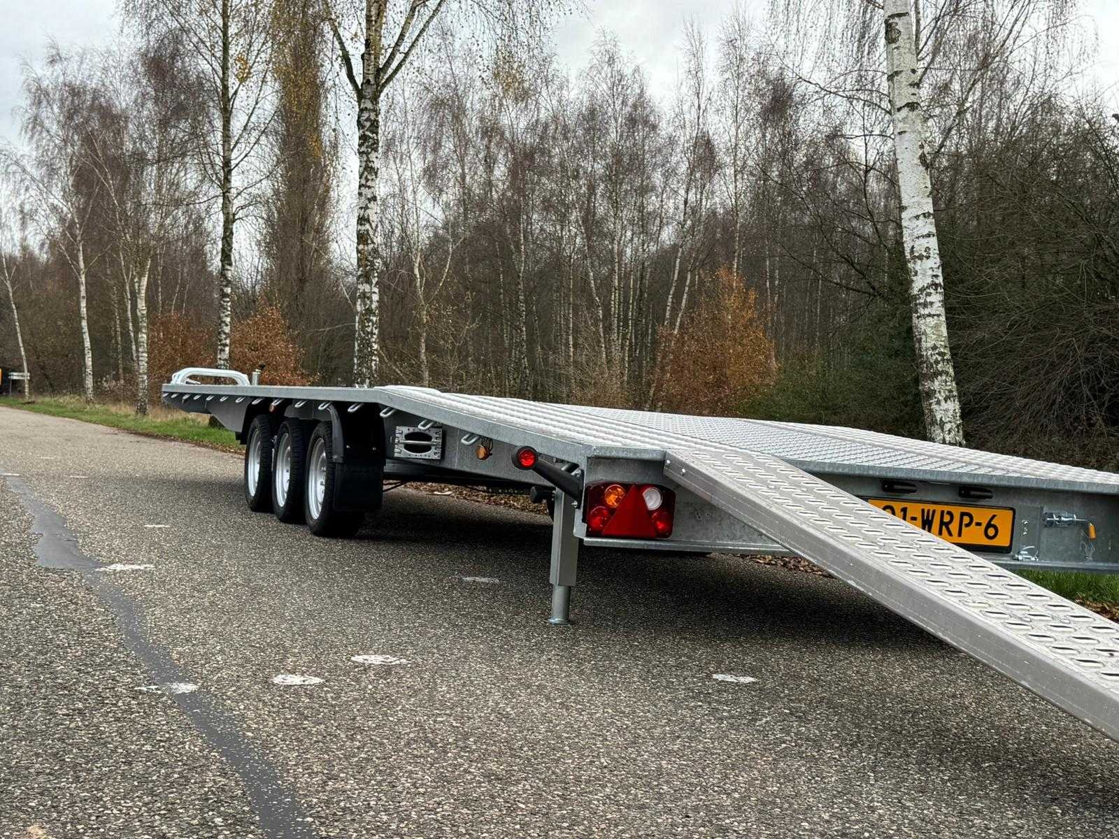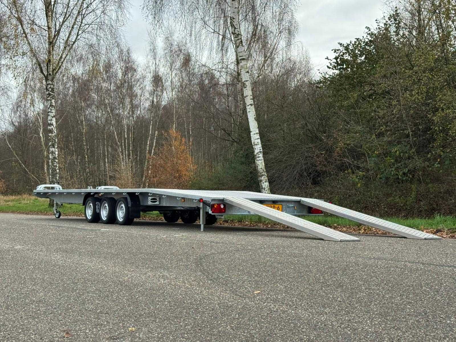 Laadvloer lengte 808 cm Laadvloer breedte 210 cm Laadvloer hoogte 64 cm Oprijdhoogte 50 cm Totale lengte 955 cm Bruto gewicht 3500 kg Kogeldruk 150 kg Leeg gewicht 990 kg Netto laadvermogen 2660 kg Bandenmaat 195/50/13 inch Standaard uitgevoerd met AL-KO assen, 3 x 1350 kg AL-KO wielkeggen AL-KO schokbrekers AL-KO V-dissel AL-KO koppeling Achteruitrijautomaat Veiligheidsindicator op koppeling Winterhoff neuswiel Reservewiel + montagebeugel op dissel Lier op liersteun Oprijplaten 2 meter in slede Volbad gegalvaniseerd chassis Aluminium Lohr gaten vloer Aluminium traanplaat in het midden Sjorogen aan zijkant van de laadvloer 13-polige stekker LED contourverlichting Heldere achterlichtunits Mistlampen Achteruitrijverlichting Merk: niewiadow Bouwjaar: 2025 Laadbak afmeting l: 808cm Laadbak afmeting b: 210cm Ledig gewicht: 990kg Laadvermogen: 2510kg Datum eerste toelating: 2025-12-02 Datum eerste toelating (NL): 2025-12-02 Kenteken: 01-WRP-6 Nationaliteit documenten: NL