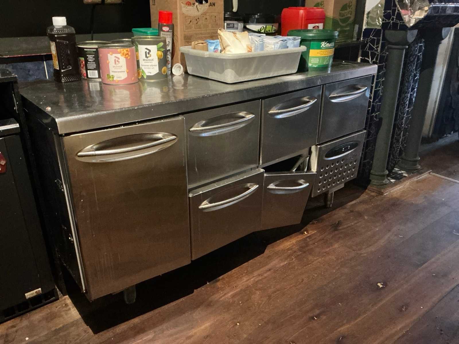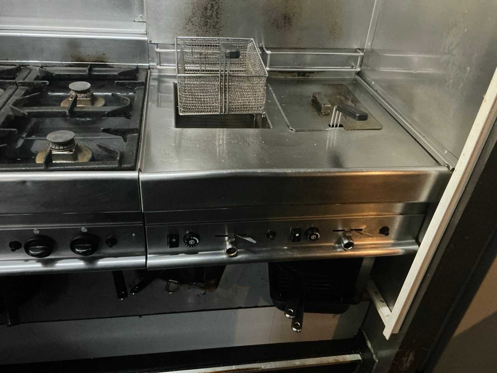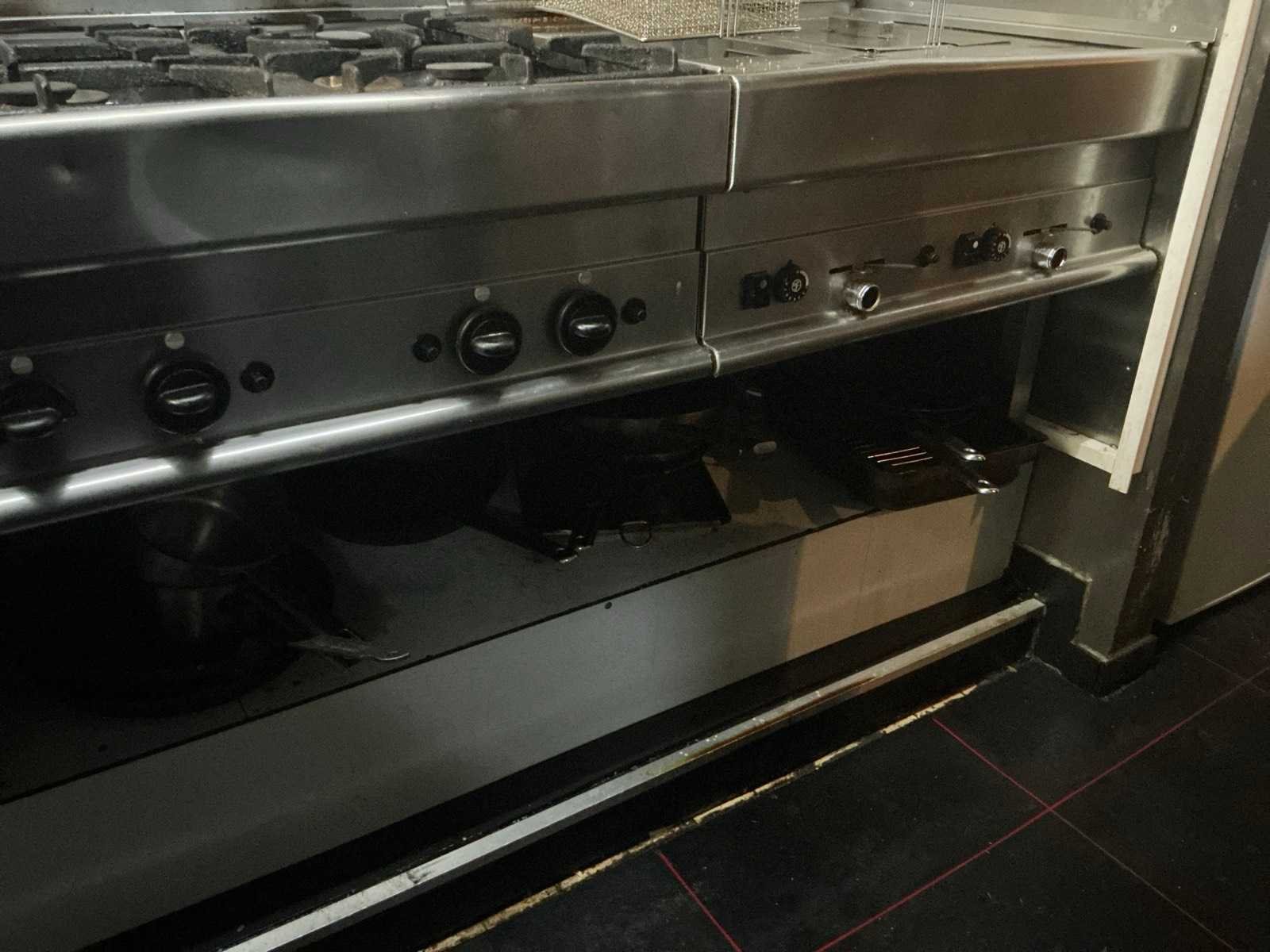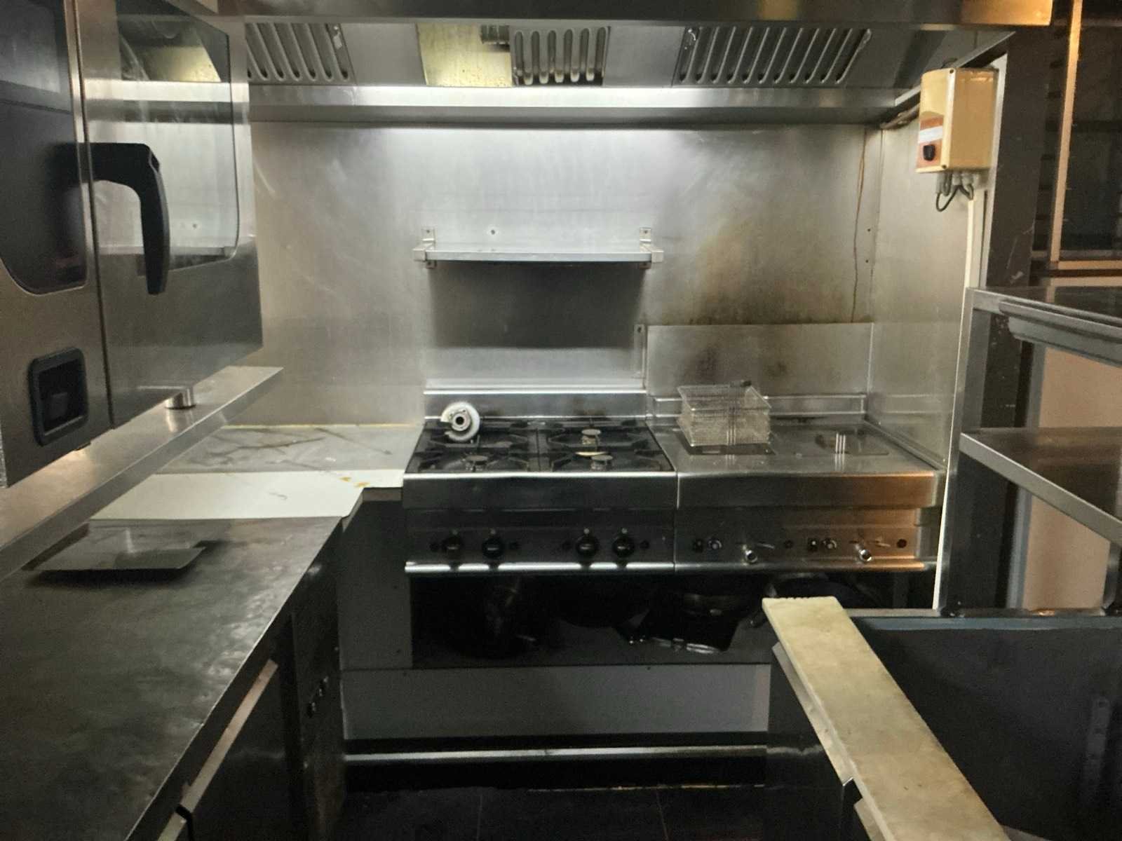 Water en elektra dienen professioneel afgedopt te worden. Bestaande uit: Divers keuken benodigdheden 1e: MKN MagicPilot Combisteamer 2e: Modulair vaatwasser met 100cm aanvoertafel en 60cm afvoertafrl 3e: Spoeltafel 120cm 4e: 4- deurs en 3- deurs koelwerkbank 5e: Saladiere meubel (incompleet) 6e: 4-pits gasfornuis en dubbele friteuse 7e: 2x hoge vriezer;2 x tafelkoelkast en glasdeurkoelkast 8e: Gamko koeling 9e: Snijmachine, vacumeermachine, magnetron en diverse losse items