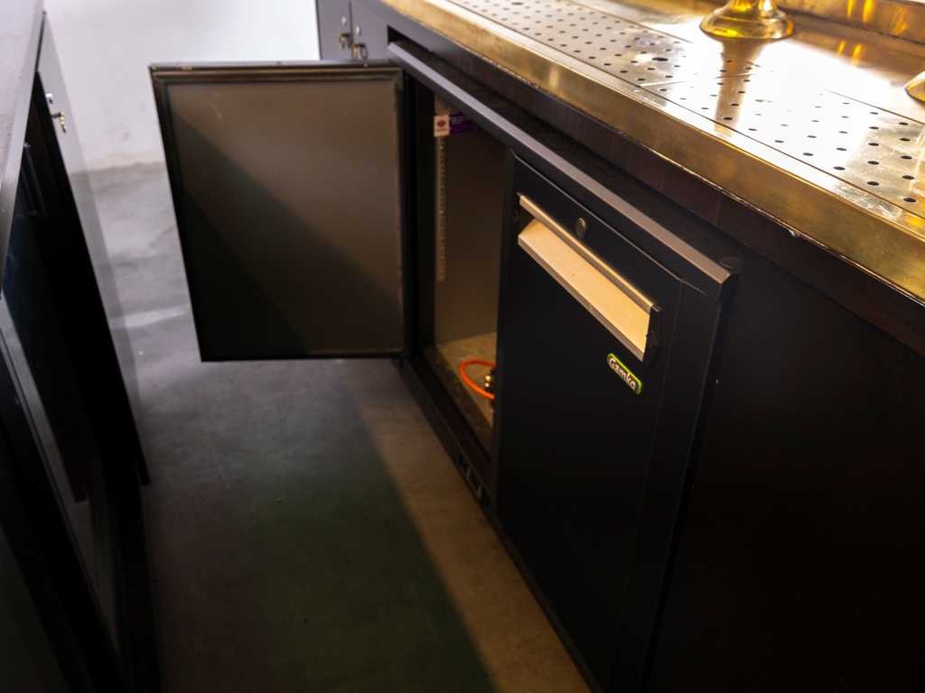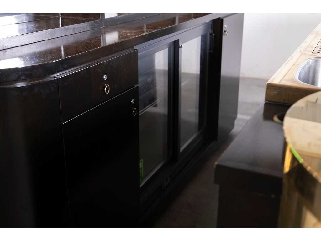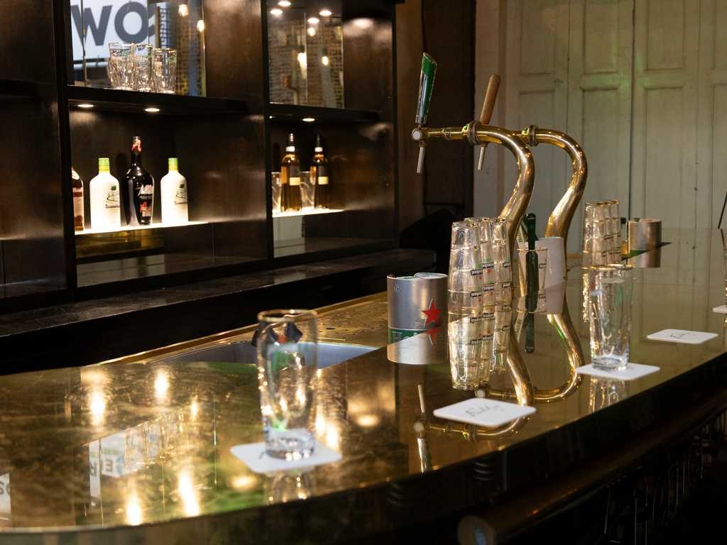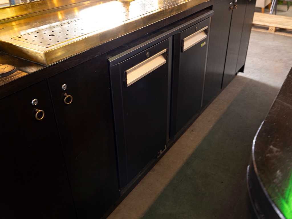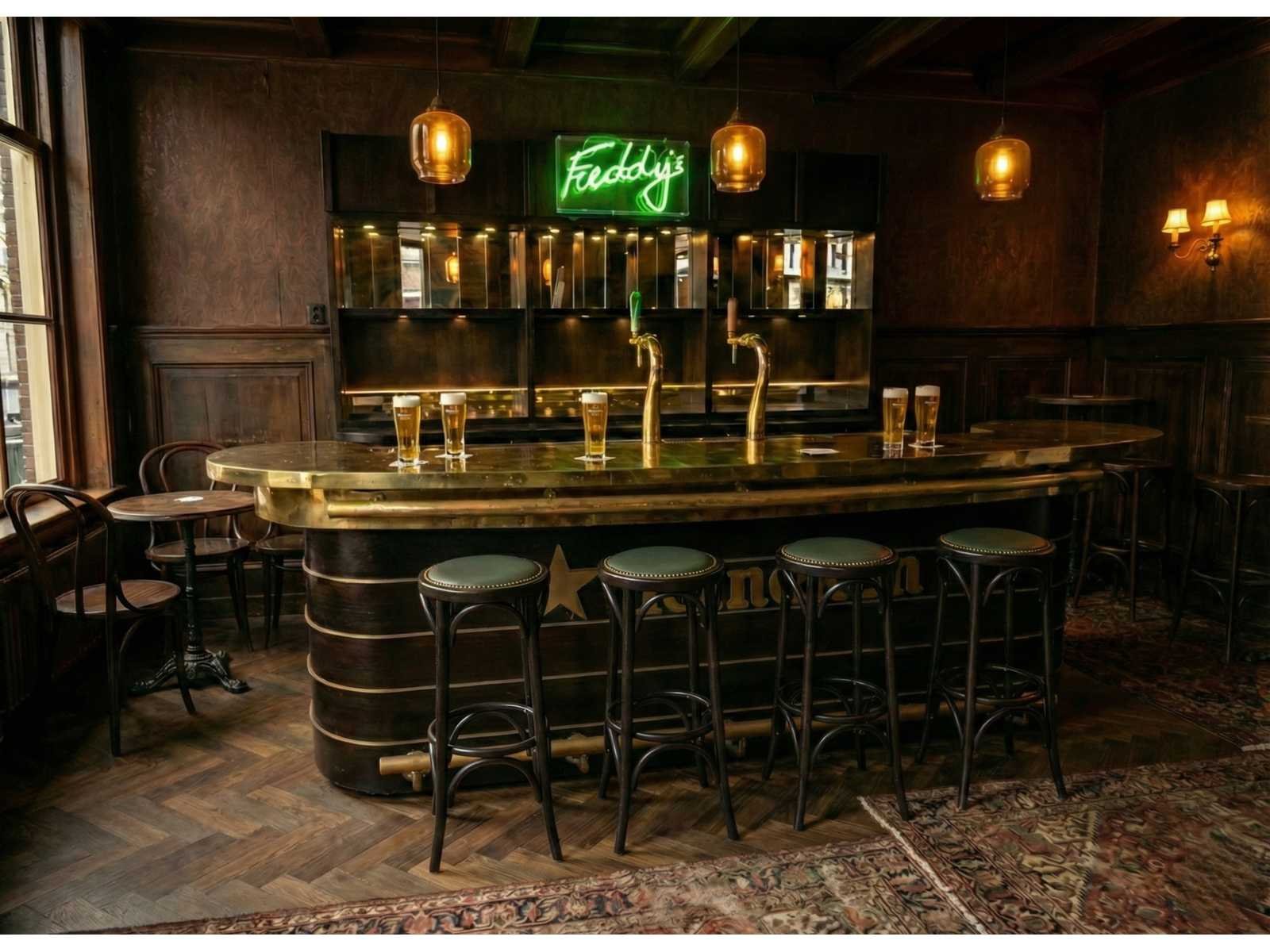 Deze kavel betreft de officiële event bar van de bekende Freddy's Bar uit het Hotel De L'Europe. De bar is van hoogwaardige kwaliteit en oorspronkelijk ontworpen voor professioneel gebruik op beurzen. Hierdoor beschikt de constructie over praktische eigenschappen: het geheel is volledig verrijdbaar en eenvoudig demontabel gemaakt. Om de bar tijdens transport of opslag netjes te houden, zijn de bijbehorende beschermhoezen inbegrepen. De bar is inclusief vier Thonet krukken met groene lederen zitting die voorzien zijn van bronzen nagels. De bar is technisch professioneel uitgevoerd met koeltechniek van Gamko en wordt compleet met inventaris geleverd. De levering omvat de volgende onderdelen: - Complete barombouw inclusief achterwand en verlichting - Gamko fustenkoeling GM2/22 - Gamko frisdrankkoeling MG2/275SD - Volledige set beschermhoezen voor alle onderdelen - Diverse baraccessoires, waaronder viltjes met naam Freddy’s - voorraad glaswerk (fluitjes en vaasjes inclusief bedrukking van Freddy’s Heineken) - Exclusief wijn en alchol flessen. Ook alle bouwtekeningen zijn aanwezig en ziet u hier ook als extra informatie toegevoegd. Dit unieke exemplaar komt tijdens de kijkdag optimaal tot zijn recht. Wij nodigen u van harte uit om deze gelegenheid te benutten en de werkelijke schoonheid van dit kavel zelf te bewonderen.