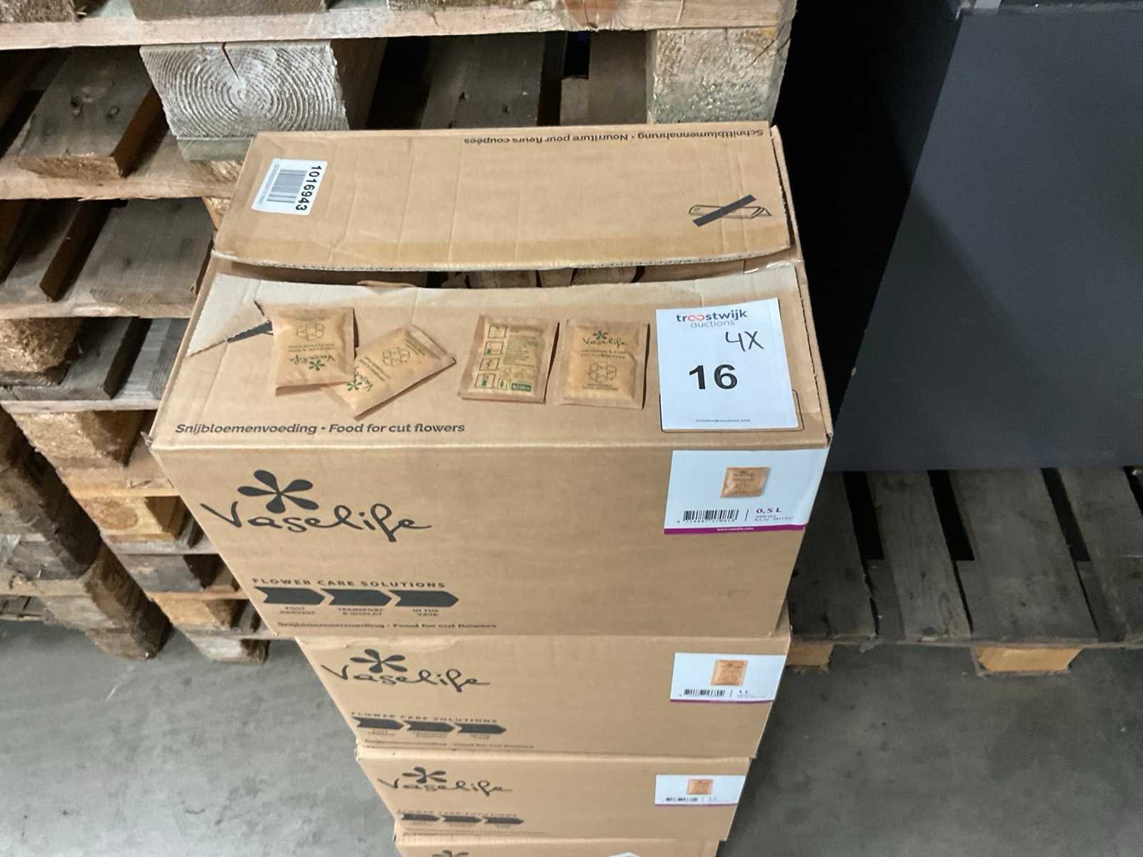4 dozen met zakjes waarvan 1 doos geopend en deel van inhoud niet meer aanwezig. Merk: Vaseline Model: Universal cut flower food