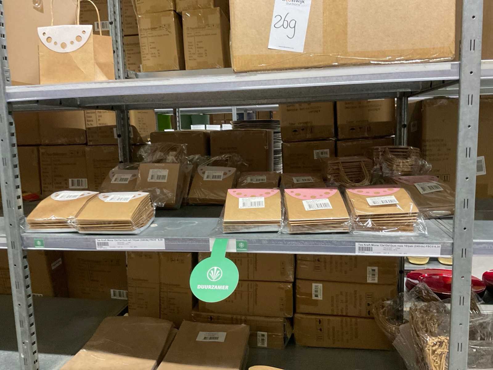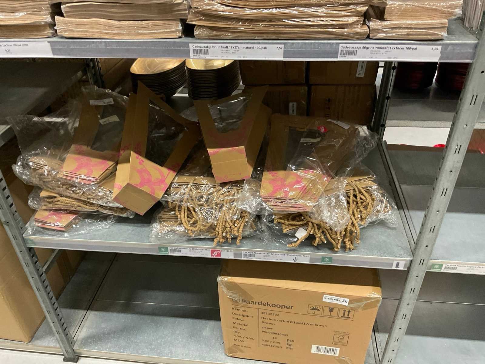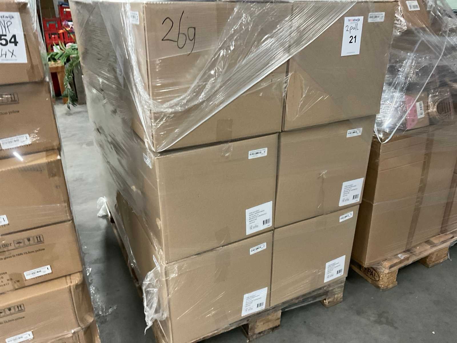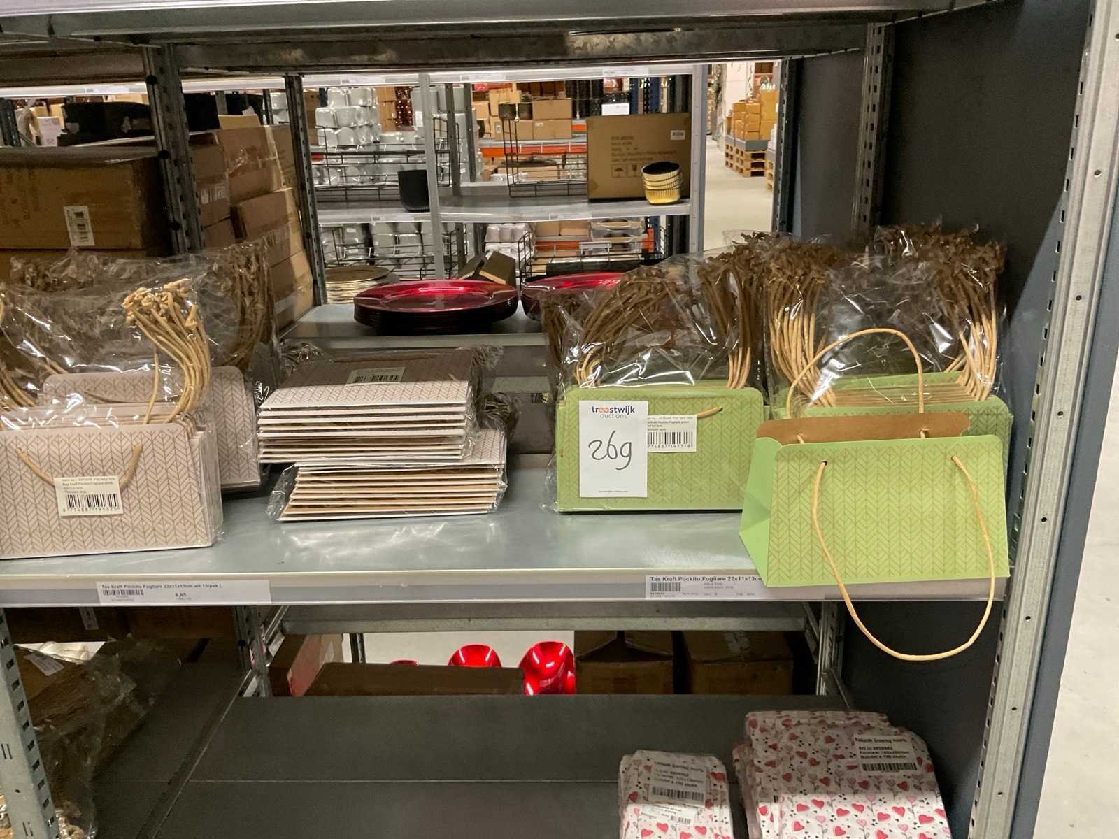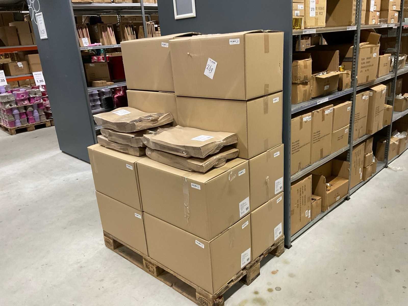 2 Pallets bestaande uit verschillende formaten en kleuren papieren tassen.
