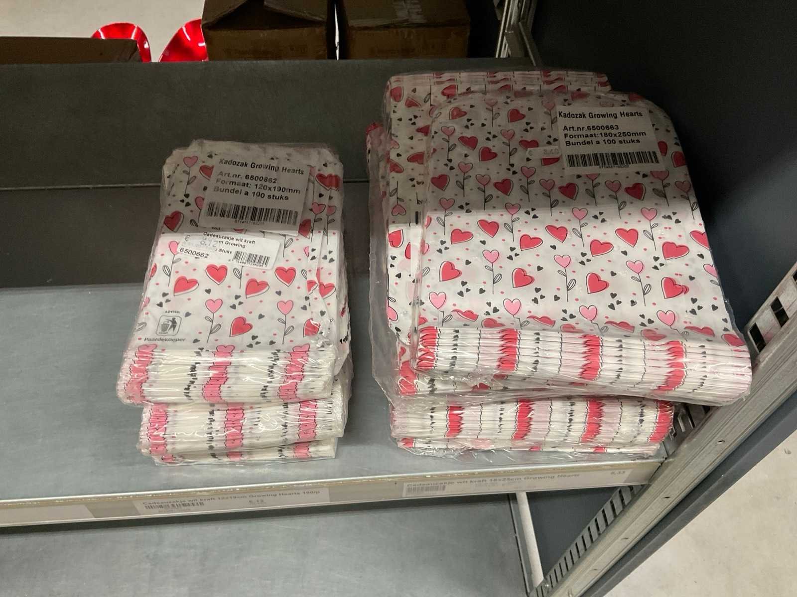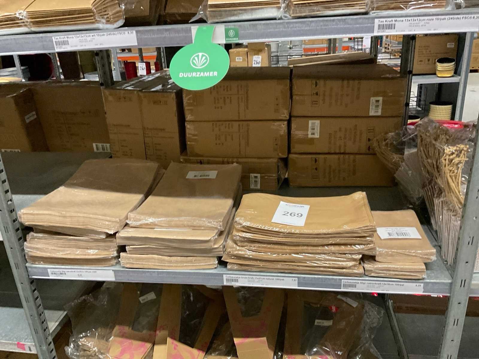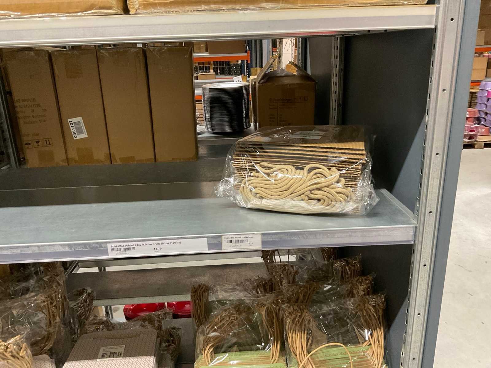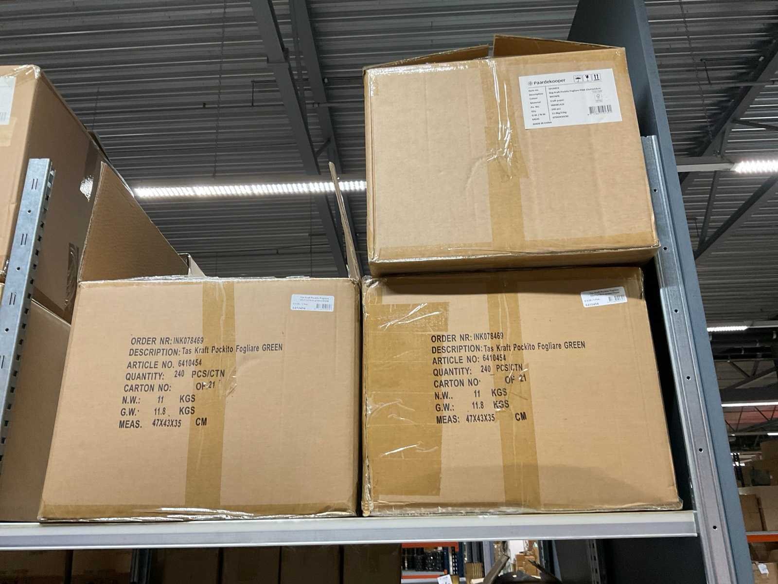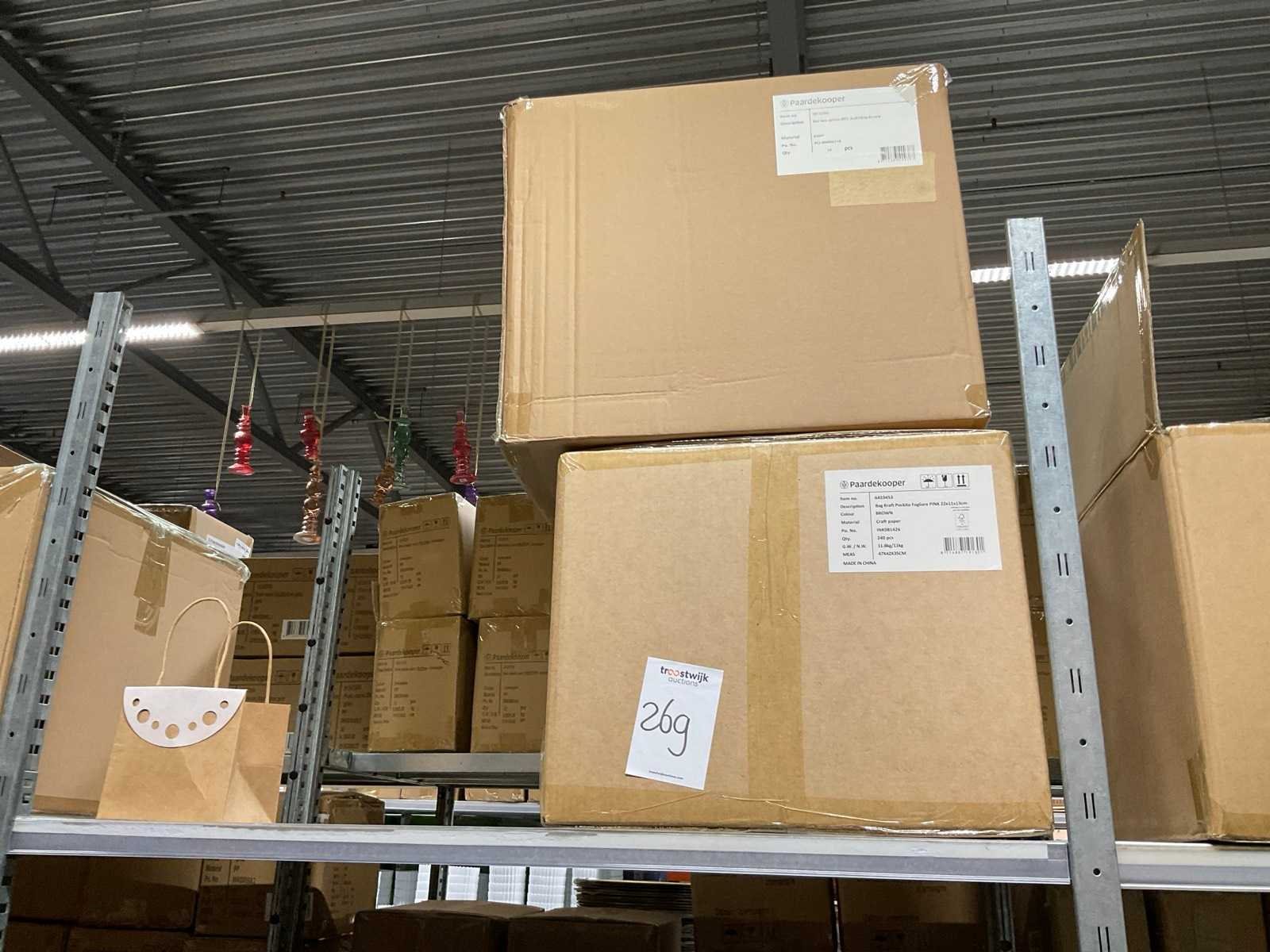 2 Pallets bestaande uit verschillende formaten en kleuren papieren tassen.