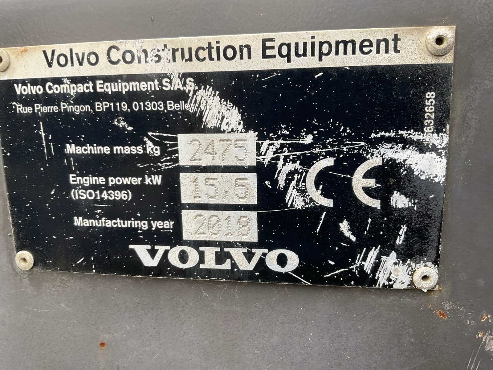 Dozerblad 150 cm, extra hydraulische aansluiting, werklampen. Merk: Volvo Type: ECR250D Bouwjaar: 2018 Serienummer: VCECR250K00025489 Merk motor: Volvo Motorvermogen (kW): 15.5kW Aantal cilinders: 3 Brandstof: Diesel Gieklengte: 3600mm Graafbak afm. l: 350mm Graafbak afm. b: 1150mm Graafbak afm. h: 300mm Rups breedte: 300mm Cabine: true Afgelezen urenstand: 2570 Eigen gewicht: 2475kg