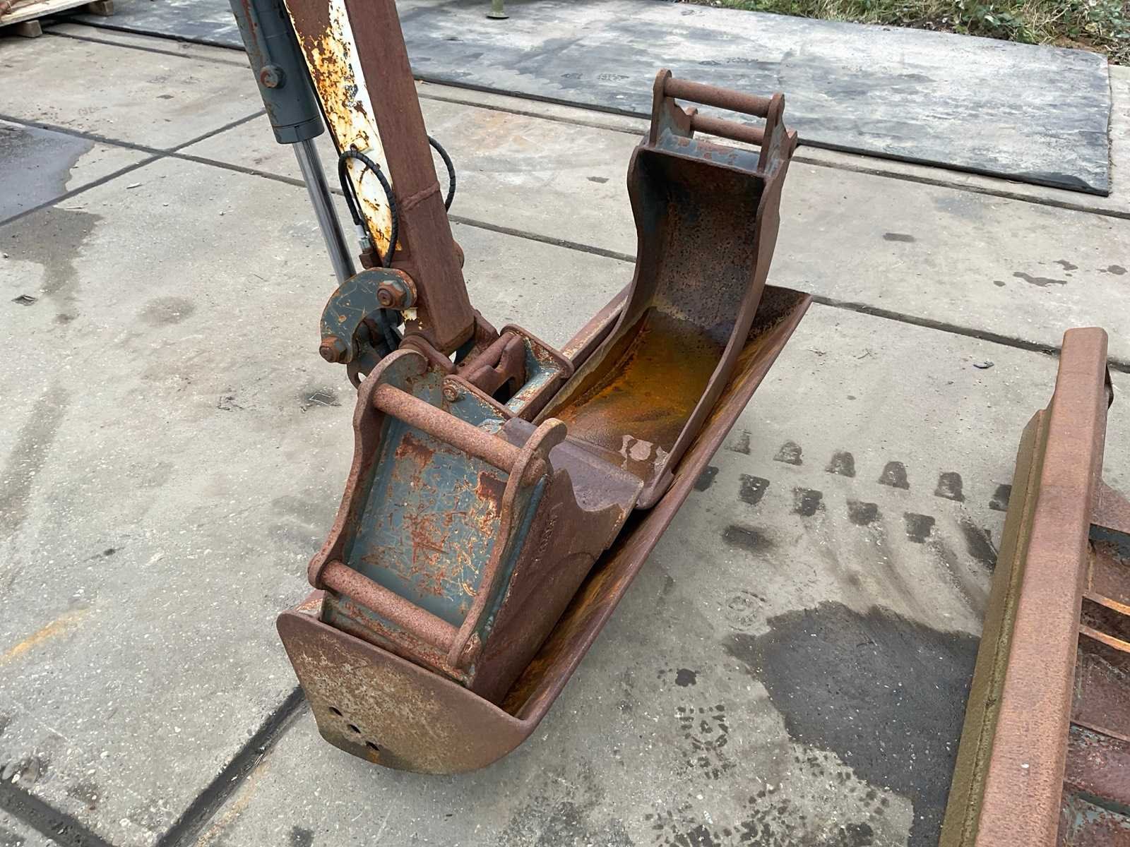 Tweede graafbak 450x200x350 mm, derde graafbak 600x200x450 mm, dozerblad 140 cm, extra hydraulische aansluiting, werklampen, zwaailicht. Merk: Wacker Neuson Type: 2404 RD Bouwjaar: 2011 Serienummer: AF05712 Merk motor: Yanmar Motorvermogen (kW): 13.2kW Aantal cilinders: 3 Brandstof: Diesel Gieklengte: 3300mm Graafbak afm. l: 350mm Graafbak afm. b: 1150mm Graafbak afm. h: 250mm Rups breedte: 300mm Cabine: true Eigen gewicht: 2550kg Totale afmeting L: 3600mm Totale afmeting Breedte: 1400mm Totale afmeting Hoogte: 2600mm