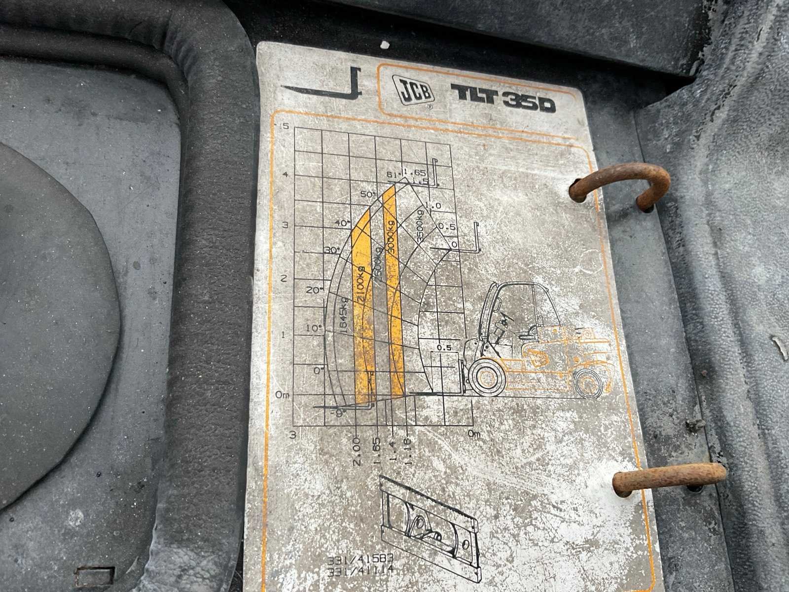 Inclusief vorkversteller. Merk: JCB Type: TLT35D Teletruk Bouwjaar: 2007 Serienummer: 977621N Motorvermogen (kW): 41.7kW Hefvermogen: 3500kg Hefhoogte: 4000mm Cabine: true Lepellengte: 950mm Hydraulisch verstelbare lepels: true Vol rubber banden: true Afgelezen urenstand: 11440 Eigen gewicht: 5200kg Totale afmeting L: 4200mm Totale afmeting Breedte: 1300mm Totale afmeting Hoogte: 2200mm
