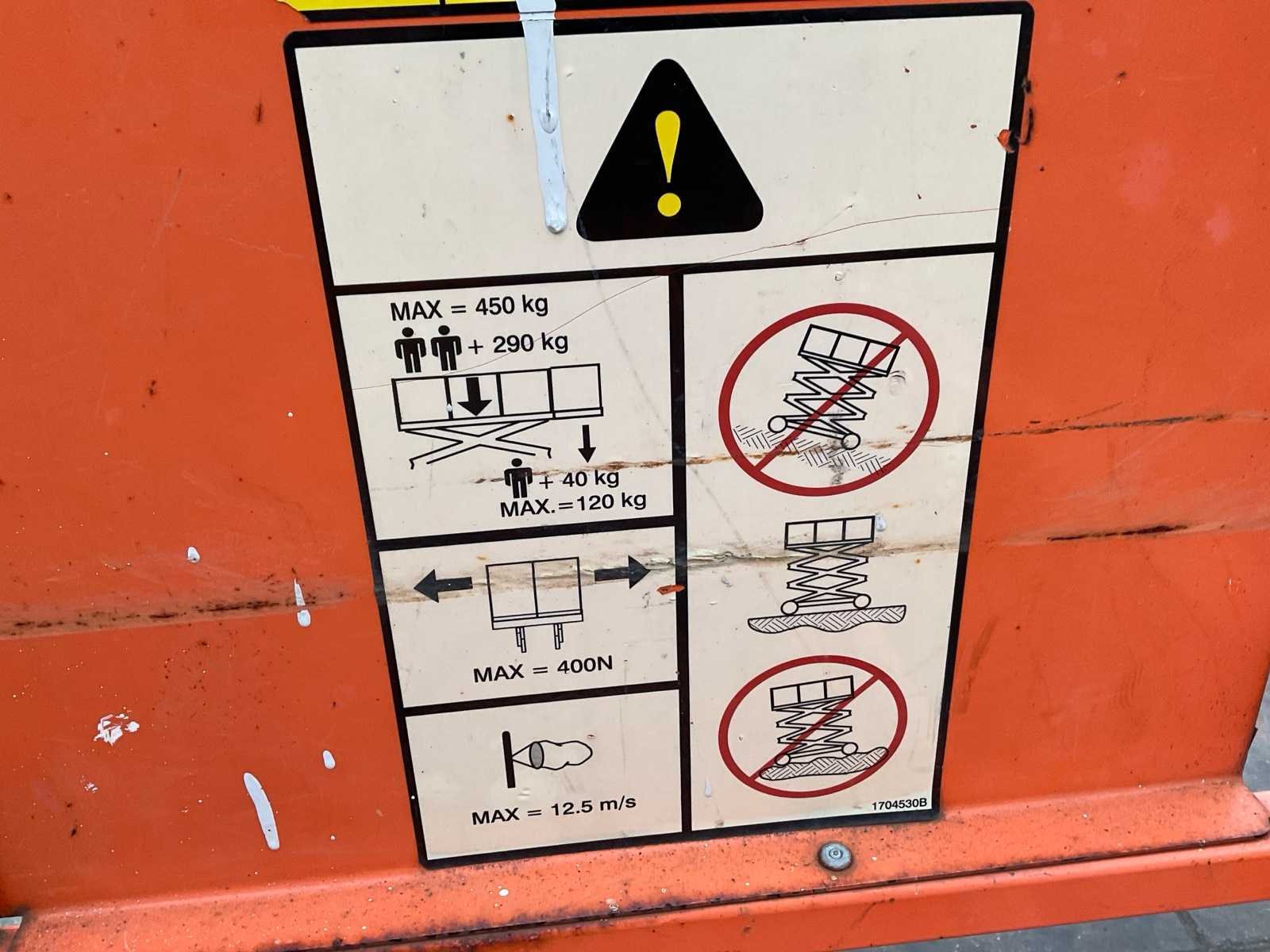 Rijsnelheid: 3 km per uur, Maximaal: 2- personen. Voorzien van: Ingebouwde acculader 230V, kooibediening, 230V stroomaansluiting platform, en non-marking banden. Merk: JLG Type: 3369LE Bouwjaar: 2015 Serienummer: 0200241828 Elektrisch: true Motorvermogen (kW): 8kW Schaarhoogwerker: true Werkhoogte: 12500mm Horizontale rijkwijdte: 3800mm Plateau afm. l: 2900mm Plateau afm. b: 1650mm Platform capaciteit: 450kg Accu lader: true Afgelezen urenstand: 245 Eigen gewicht: 4576kg Totale afmeting L: 3250mm Totale afmeting Breedte: 1750mm Totale afmeting Hoogte: 2780mm