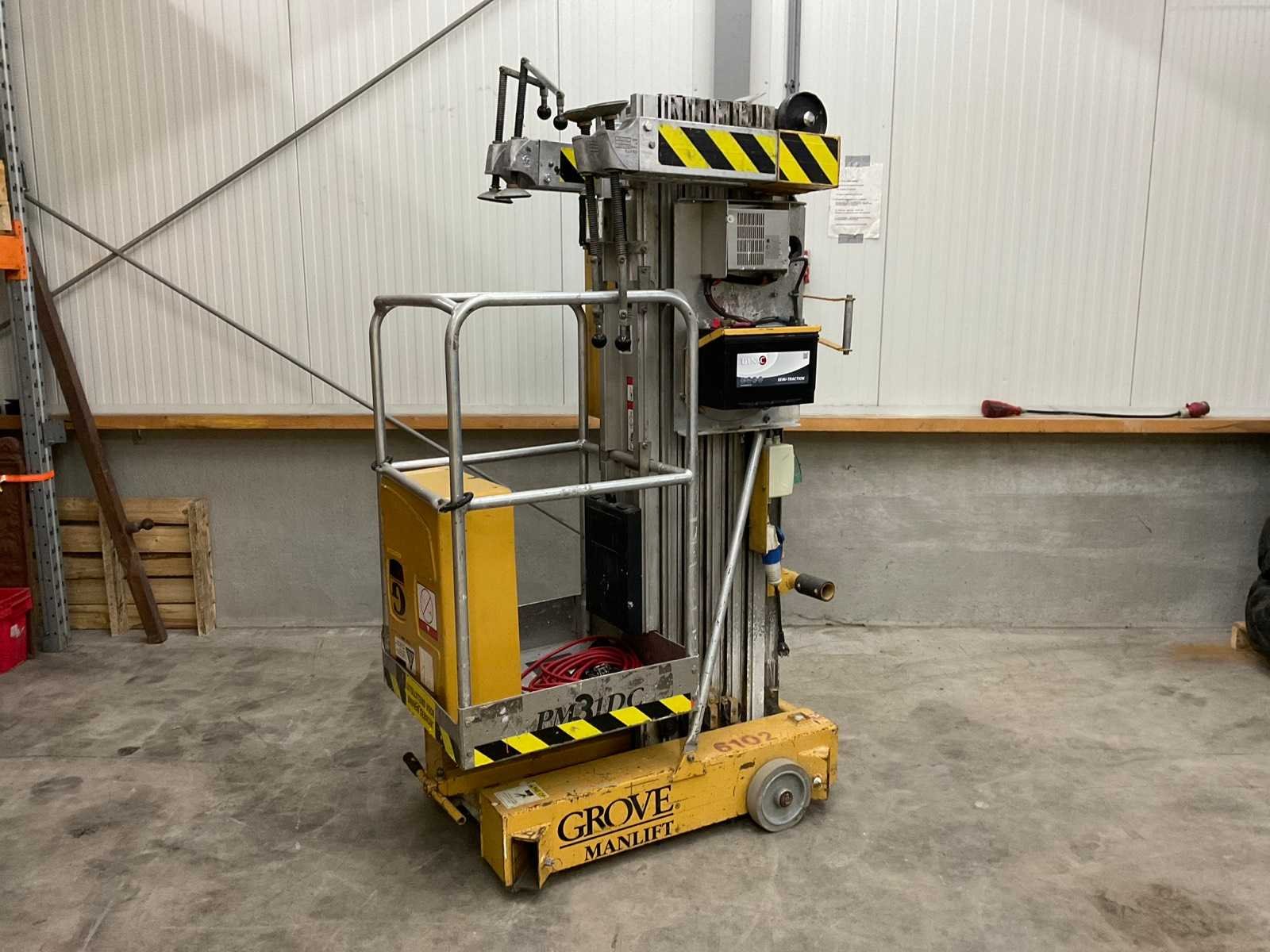 Aantal personen: 1, Voorzien van: ingebouwde acculader. Merk: Grove Manlift Type: PM31DC Bouwjaar: 1998 Serienummer: 31154 Elektrisch: true Motorvermogen (kW): 3kW Masthoogwerker: true Werkhoogte: 9700mm Plateau afm. l: 650mm Plateau afm. b: 650mm Platform capaciteit: 160kg Eigen gewicht: 980kg Totale afmeting L: 1200mm Totale afmeting Breedte: 650mm Totale afmeting Hoogte: 2040mm