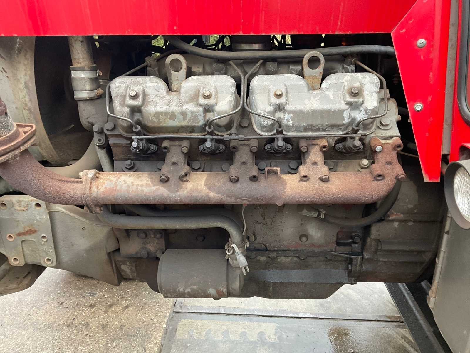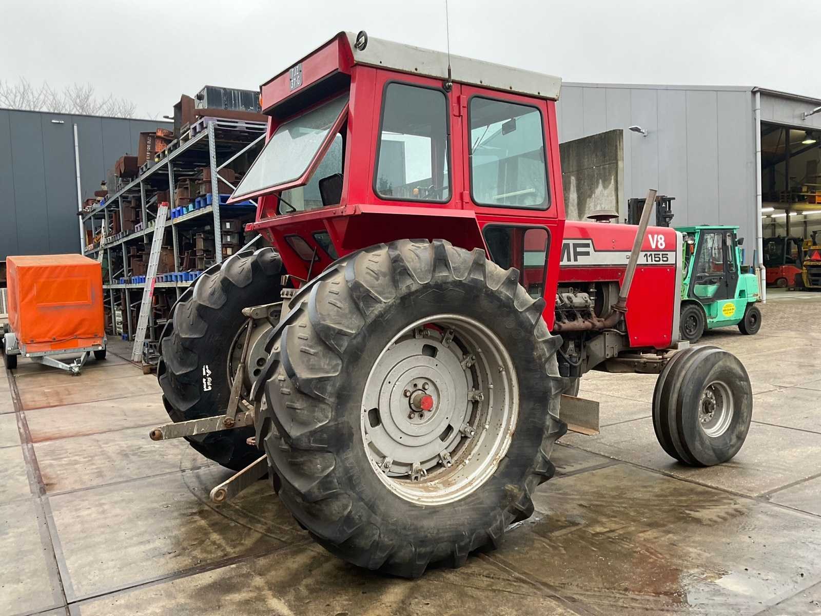 Perkins 8-cilinder diesel motor, Cabine type: 6701, Serienummer: 011943. Voorzien van: 3-punt hefinrichting, Categorie III, stuurbekrachtiging, Let op! Koppeling slipt op hoge versnelling Merk: Massey Ferguson Type: MF 1155 Bouwjaar: 1972 Serienummer: 011943 Kenteken: TJZ-37-G Motorvermogen (kW): 107kW Afgelezen urenstand: 4315 Versnellingsbaktype: Constant-Mesh Aftakastoerental: 540rpm Bandenmaat voor: 11.00-16 Bandenmaat achter: 580/70 R38 Aantal hydraulische ventielen achter: 4 Cabine: true Eigen gewicht: 7500kg Totale afmeting L: 4200mm Totale afmeting Breedte: 2750mm Totale afmeting Hoogte: 2940mm Datum eerste toelating: 1972-06-30 Nationaliteit documenten: Nederlands