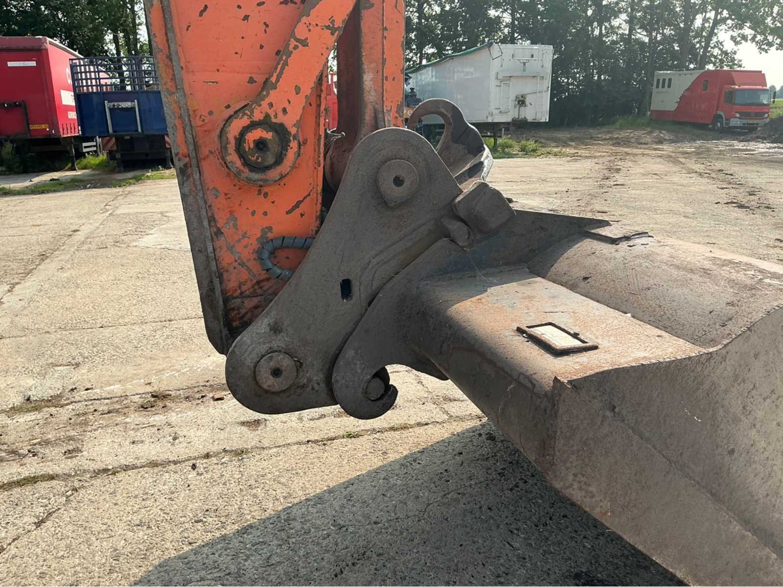 Voorzien van 2 dubbelwerkende functies, hydraulische snelwissel, graafbak en werkverlichting. Merk: Hitachi Type: EX300-3 Bouwjaar: 1995 Serienummer: 151 8139 Merk motor: Isuzu Bedrijfsgewicht: 30200kg Gieklengte: 9200mm Max. werkbereik: 9200mm Met graafbak: true Graafbak afm. l: 1400mm Graafbak afm. b: 2100mm Graafbak afm. h: 700mm Rups breedte: 800mm Cabine: true Eigen gewicht: 30200kg Totale afmeting L: 10500mm Totale afmeting Breedte: 3380mm Totale afmeting Hoogte: 3350mm