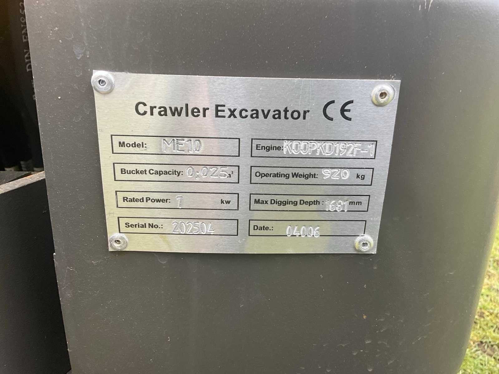 Incl. 3 graafbakken; model ME10 Merk: Brincky Type: ME08 Bouwjaar: 2025 Serienummer: 202504 Brandstof: Diesel Bedrijfsgewicht: 920kg