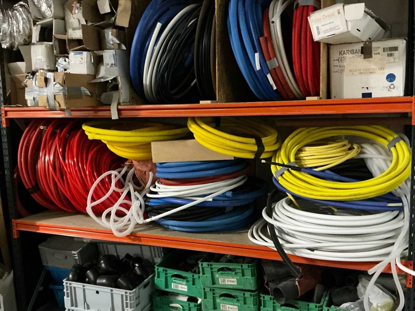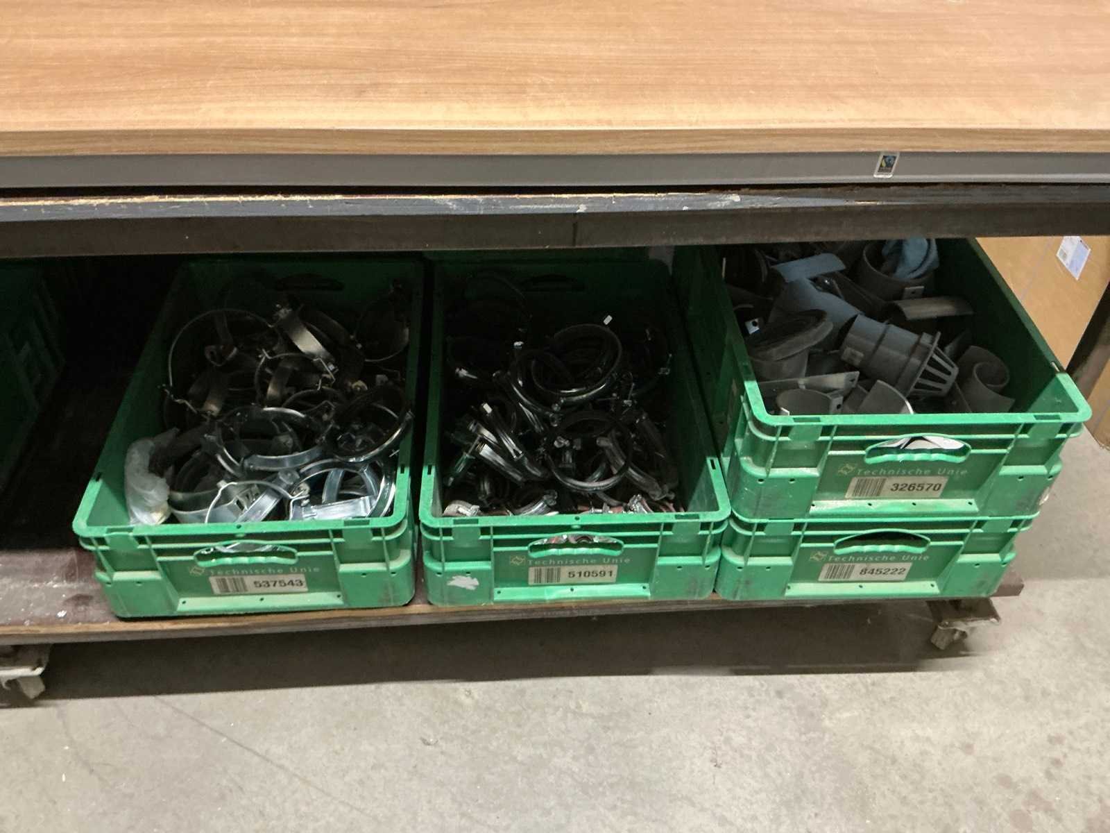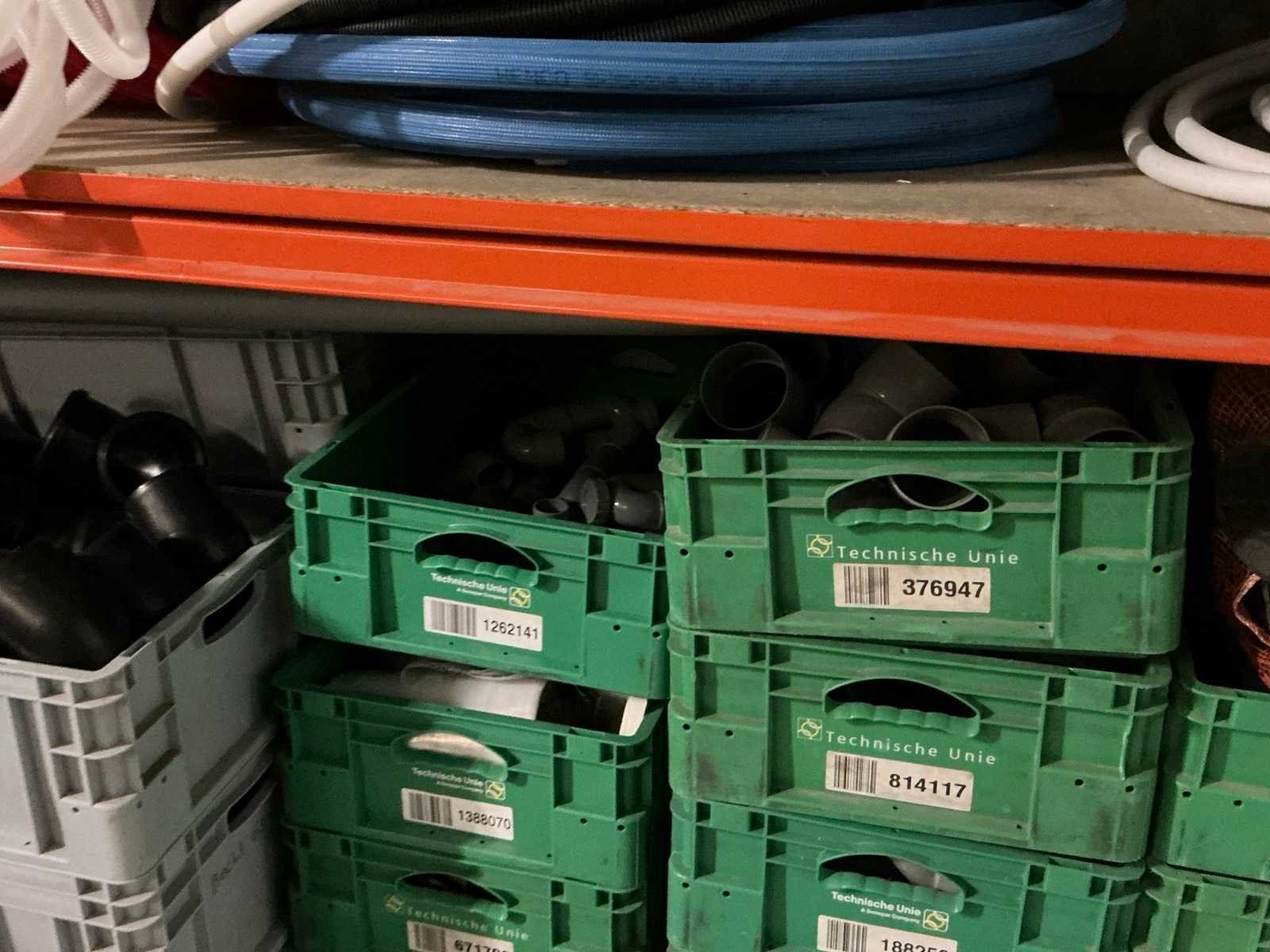 Zonder groene Technische dienst kratten en draadmanden. Bestaande uit: Verschillende buizen, slangen en ander installatiemateriaal.