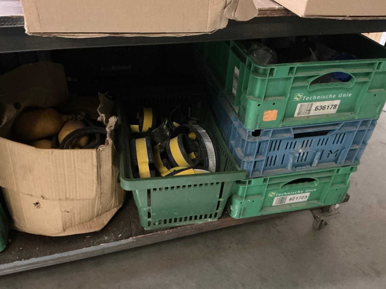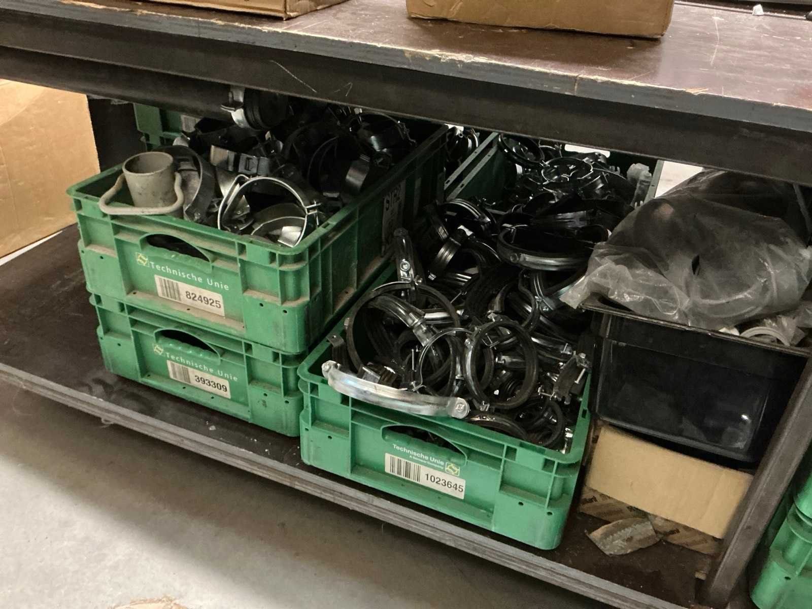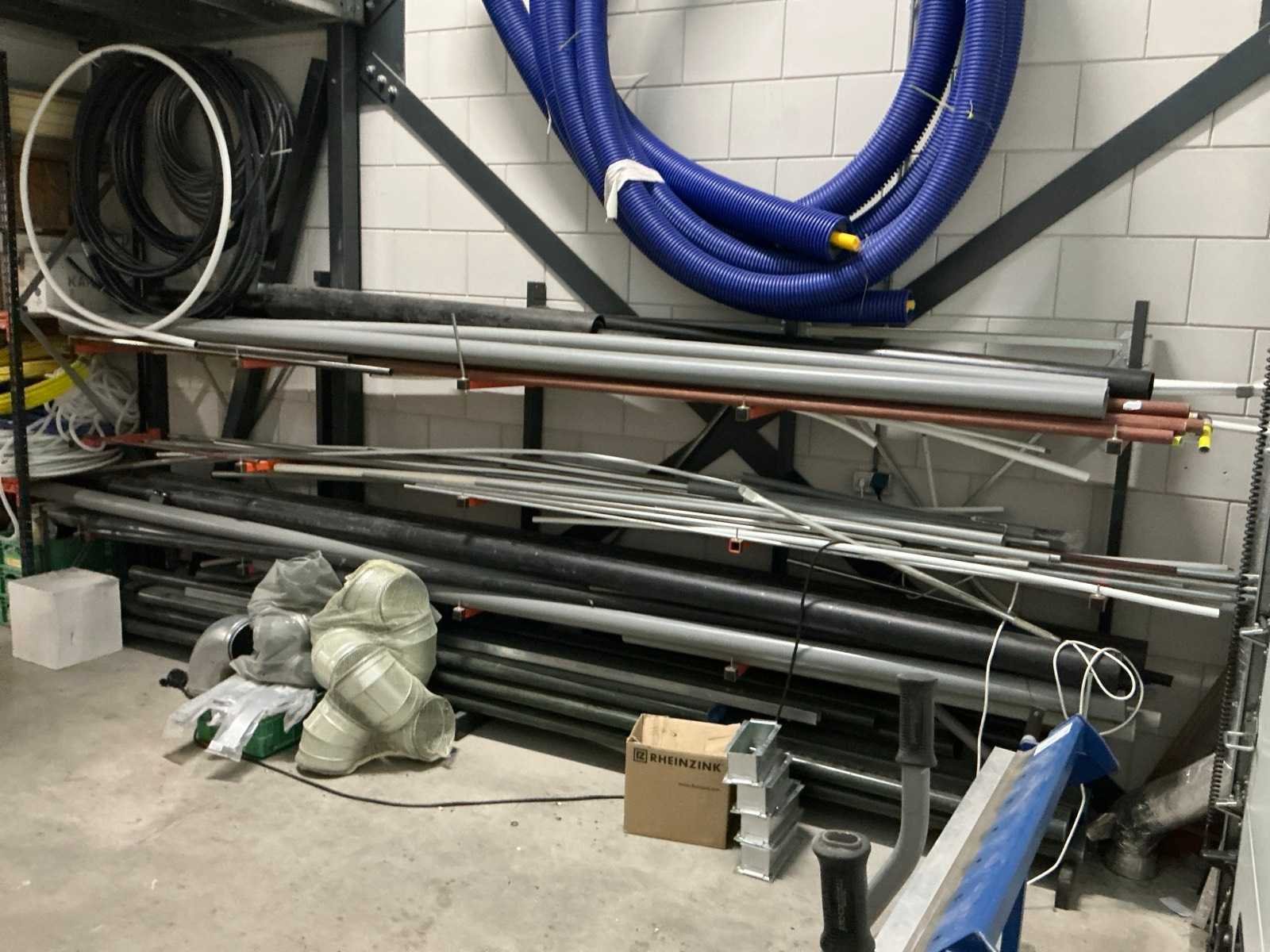 Zonder groene Technische dienst kratten en draadmanden. Bestaande uit: Verschillende buizen, slangen en ander installatiemateriaal.