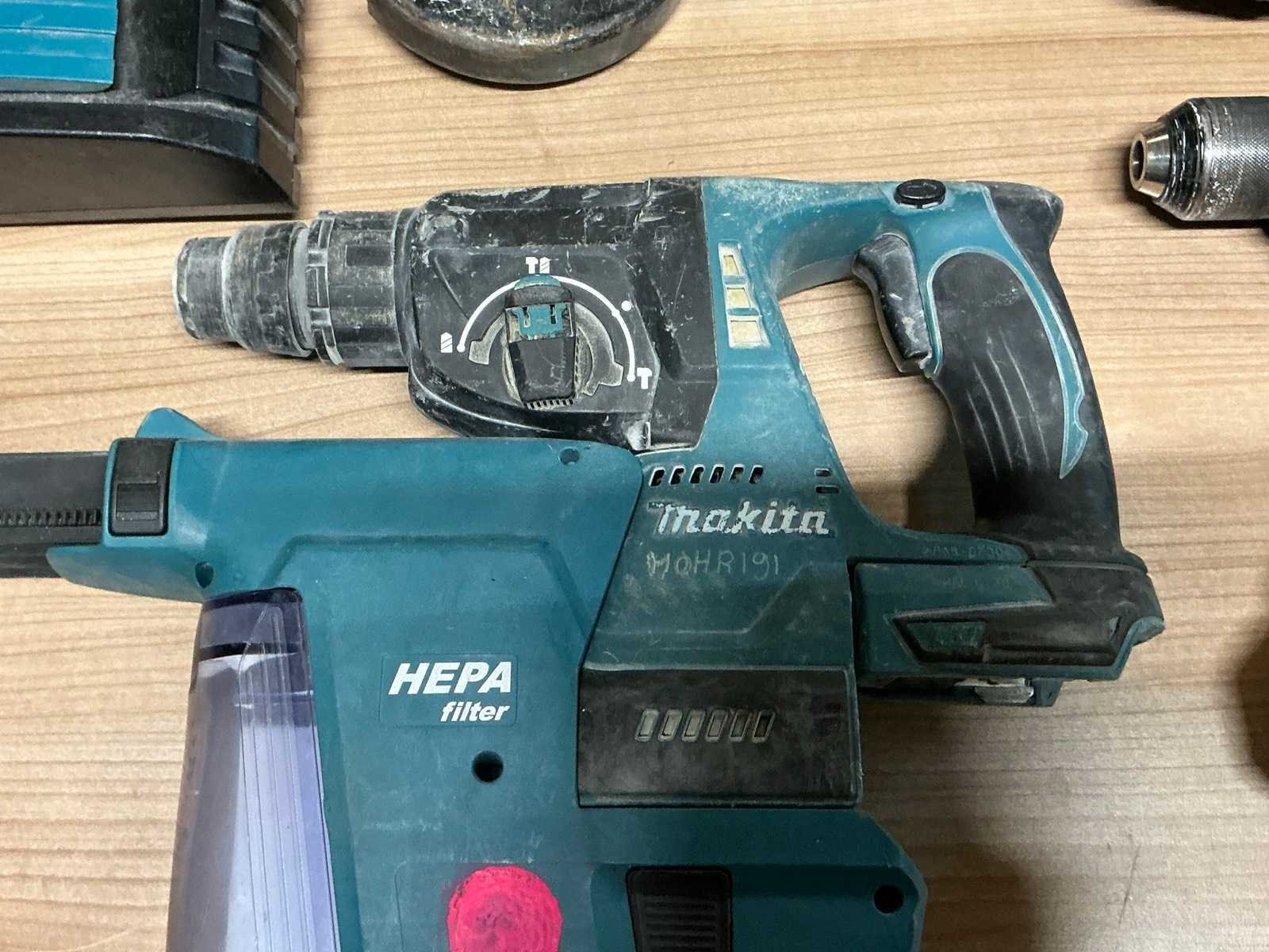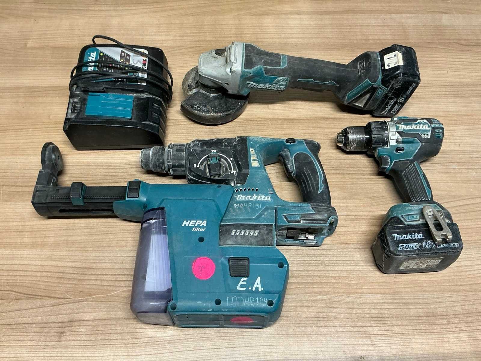 Bestaande uit: een DHR242 boorhamer met HEPA filter, een DGA508 haakse slijper, een boormachine, 2 accu’s en een acculader in een koffer. Merk: Makita Accu lader: true Met koffer: true Accuspanning: 18V Aantal accu's: 2