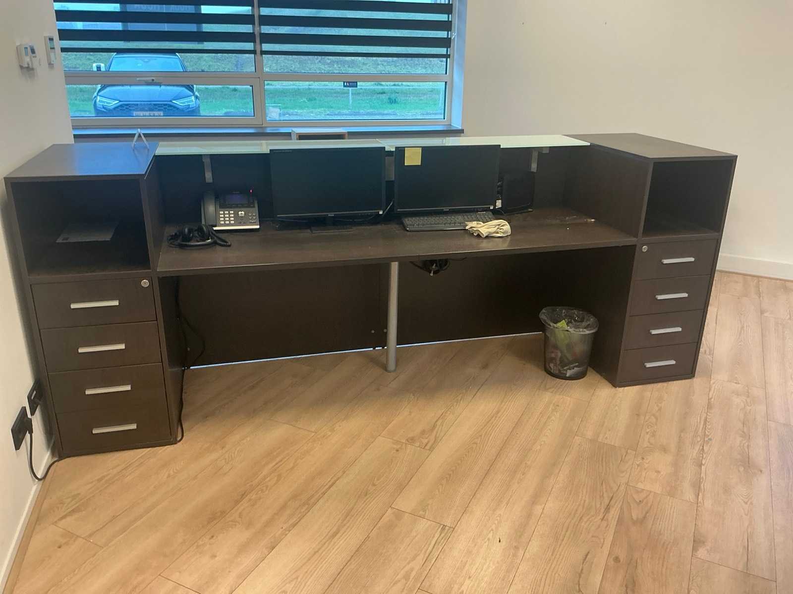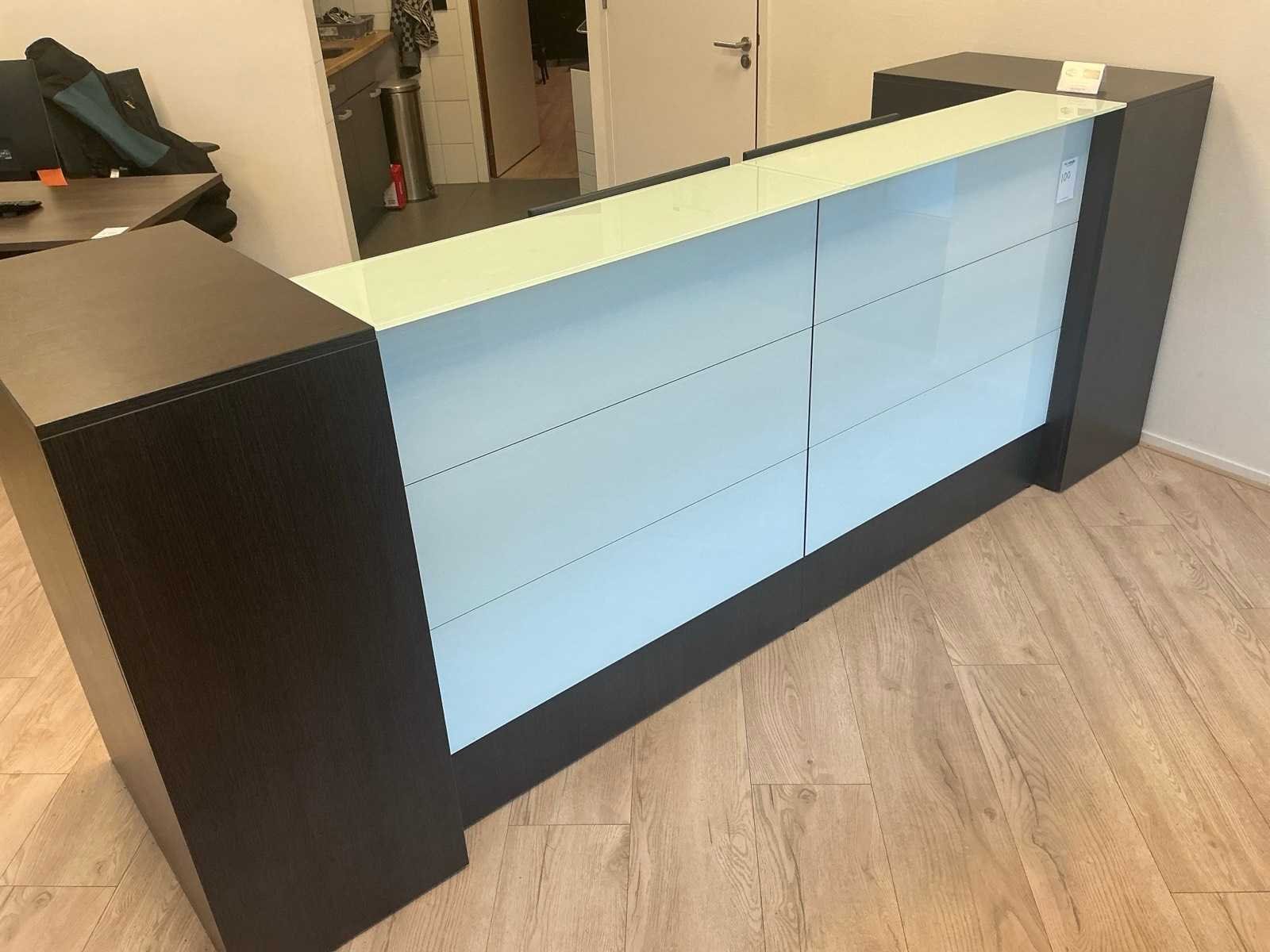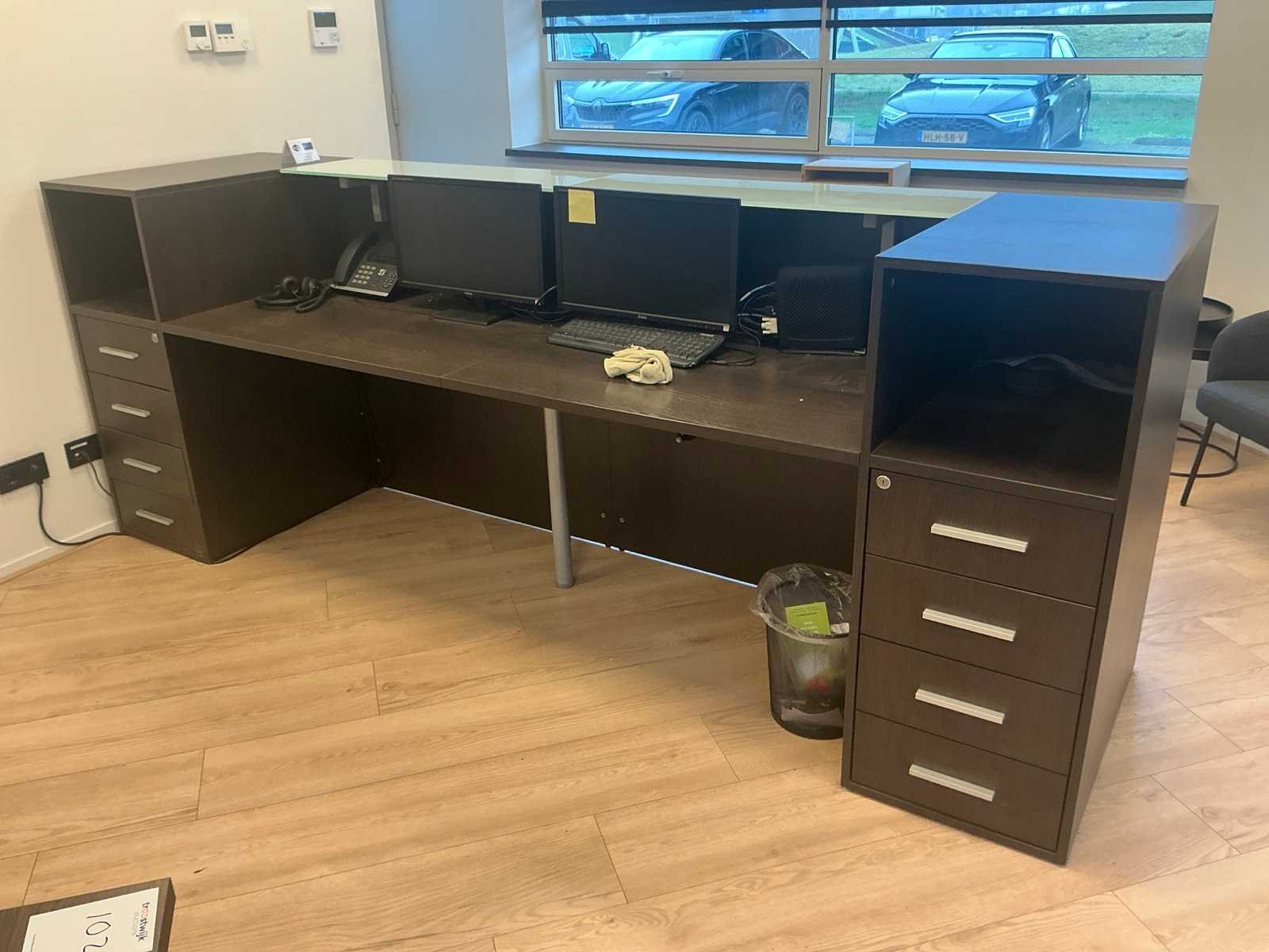 Voorzien van ladekasten; zonder beeldscherm Lengte: 290cm Breedte: 80cm Hoogte: 110cm Materiaal: Hout/ hardglas