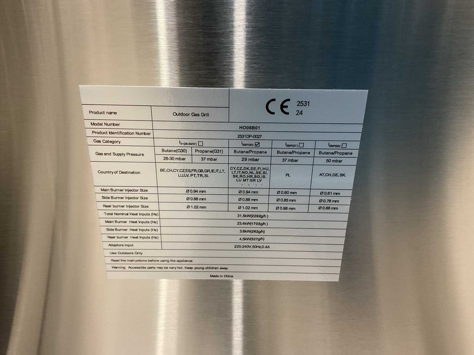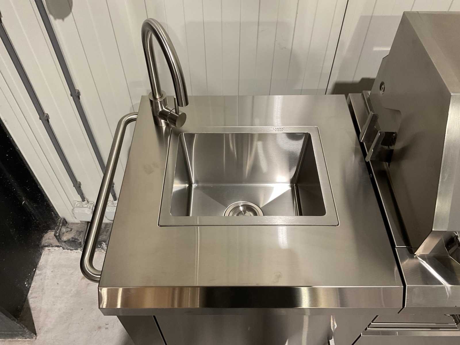 Voorzien van 6 hoofbranders; wasbak; koelkast; extra grillplaat; totale kookoppervlak: 960x455 mm; verpakkingsgewicht: Doos 1/3 140kg 2/3 55kg 3/3 34kg; ongebruikt Merk: Six Burner BBQ Model: HO06B01 Kleur: RVS Lengte: 276cm Breedte: 60cm Hoogte: 120cm Materiaal: RVS